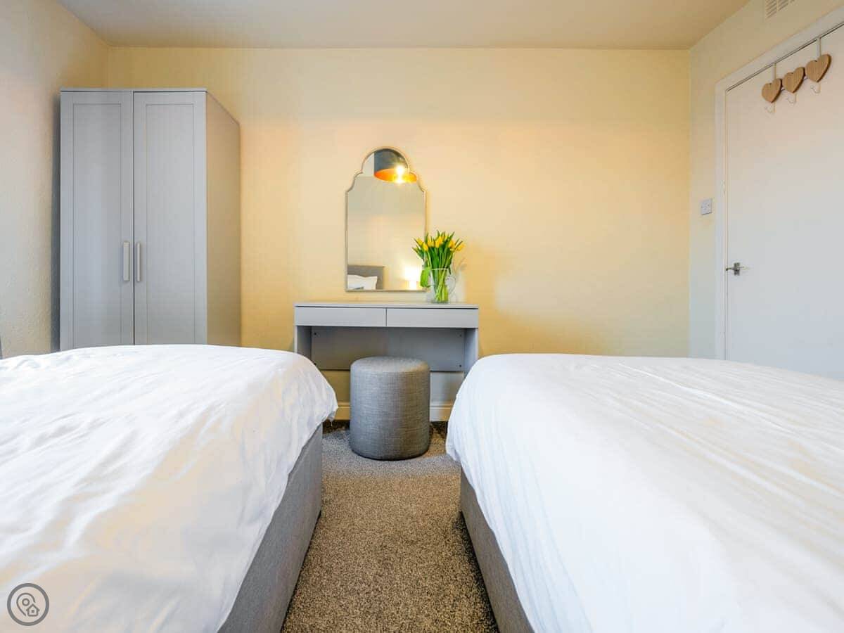 The house sleeps six. Three bedrooms, two bathrooms. One of the bedrooms has its own shower room. It's got a 4 Star rating. It's comfortable. It's clean.