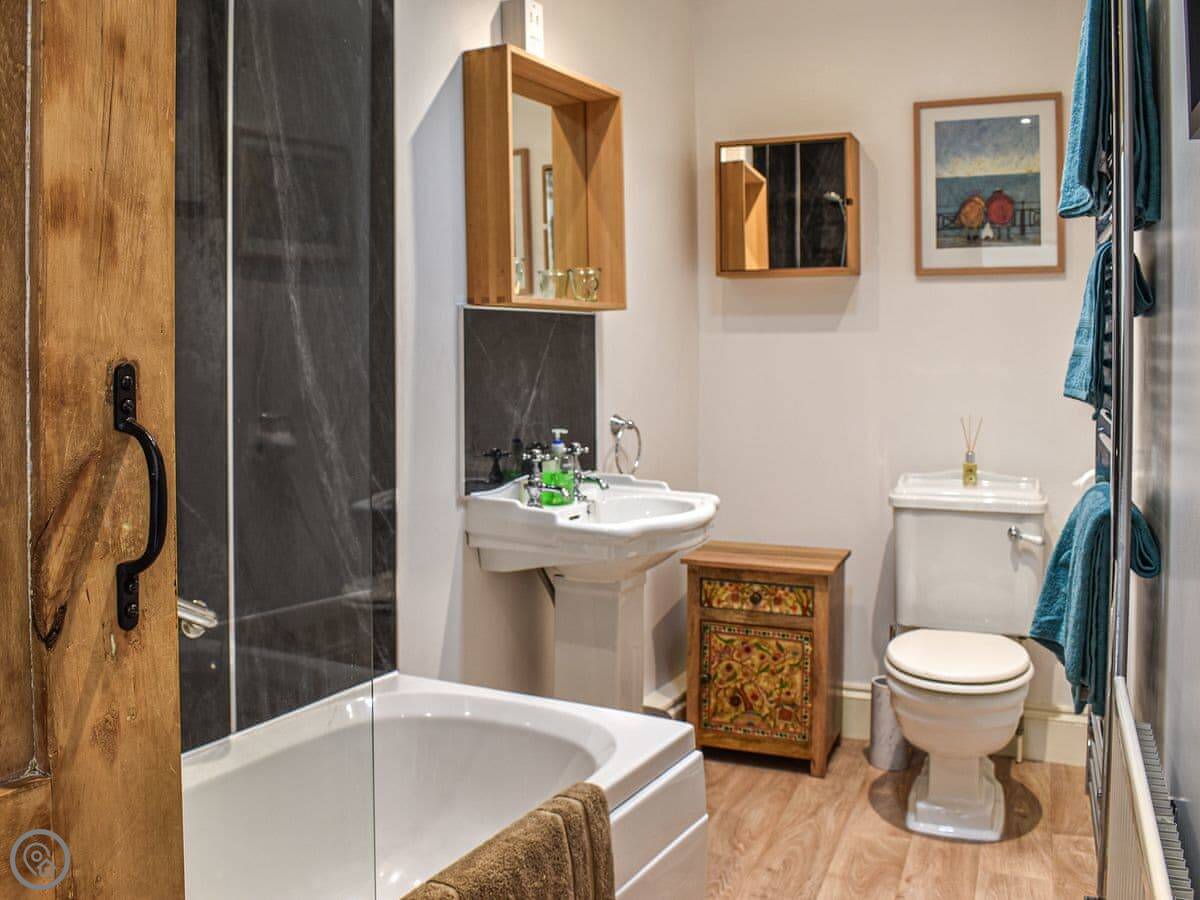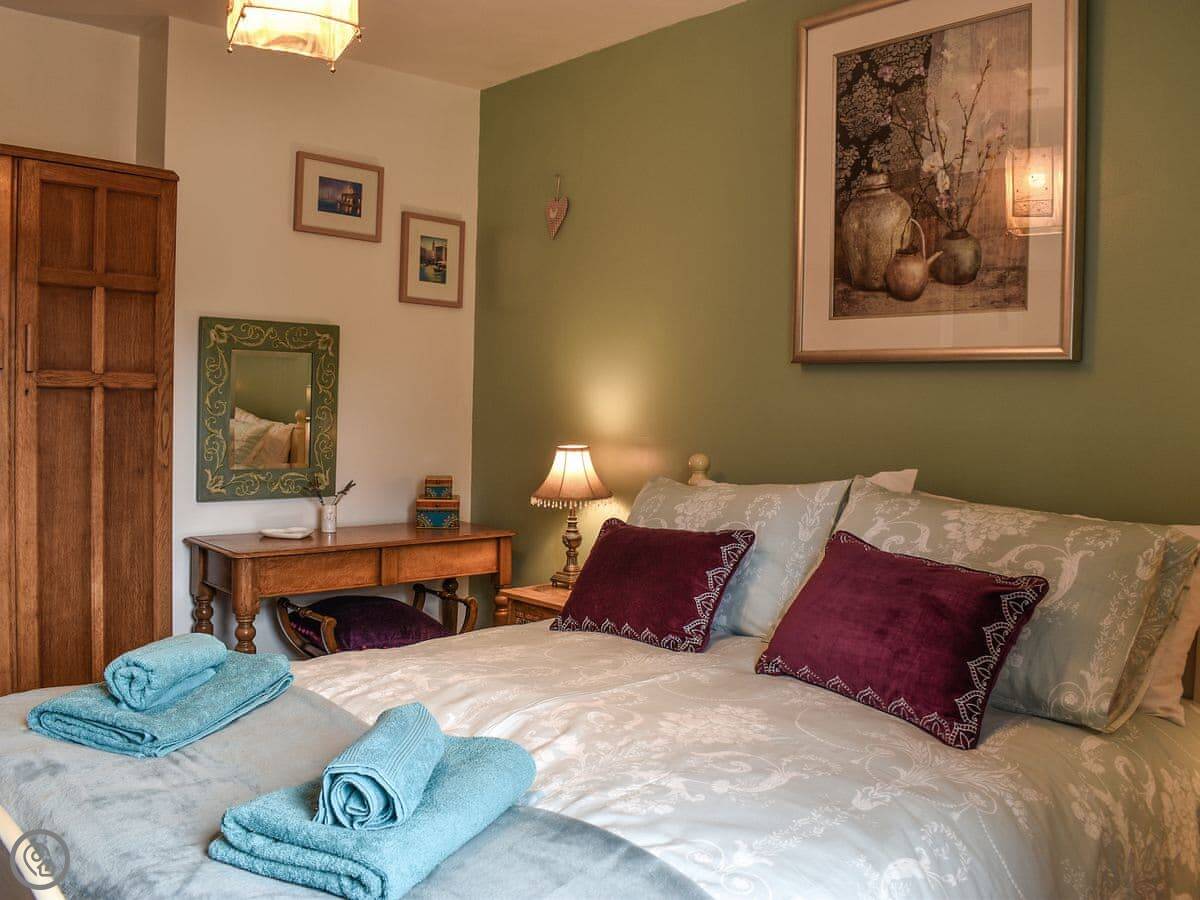 Out the back there's a small yard. The bedroom windows look out over the village toward the church.