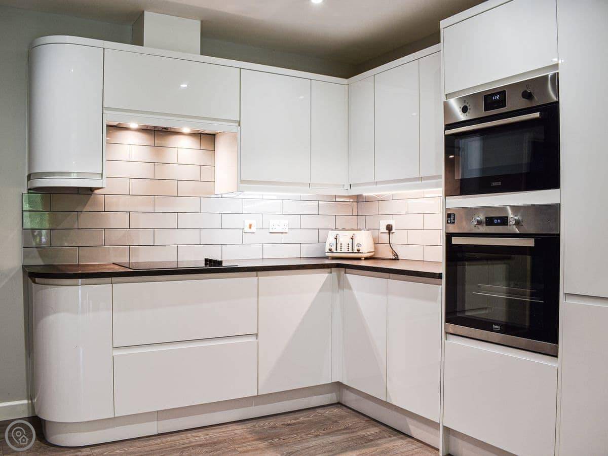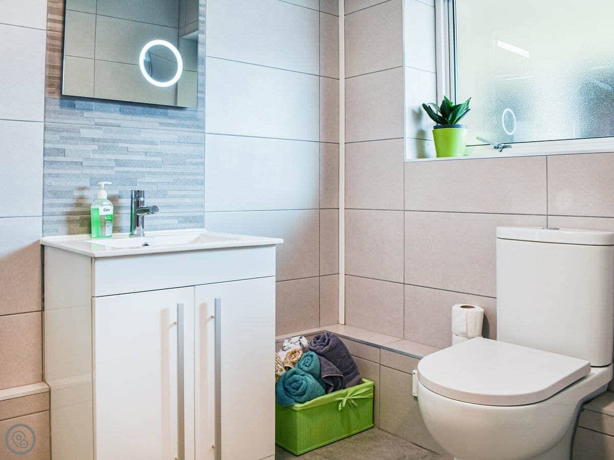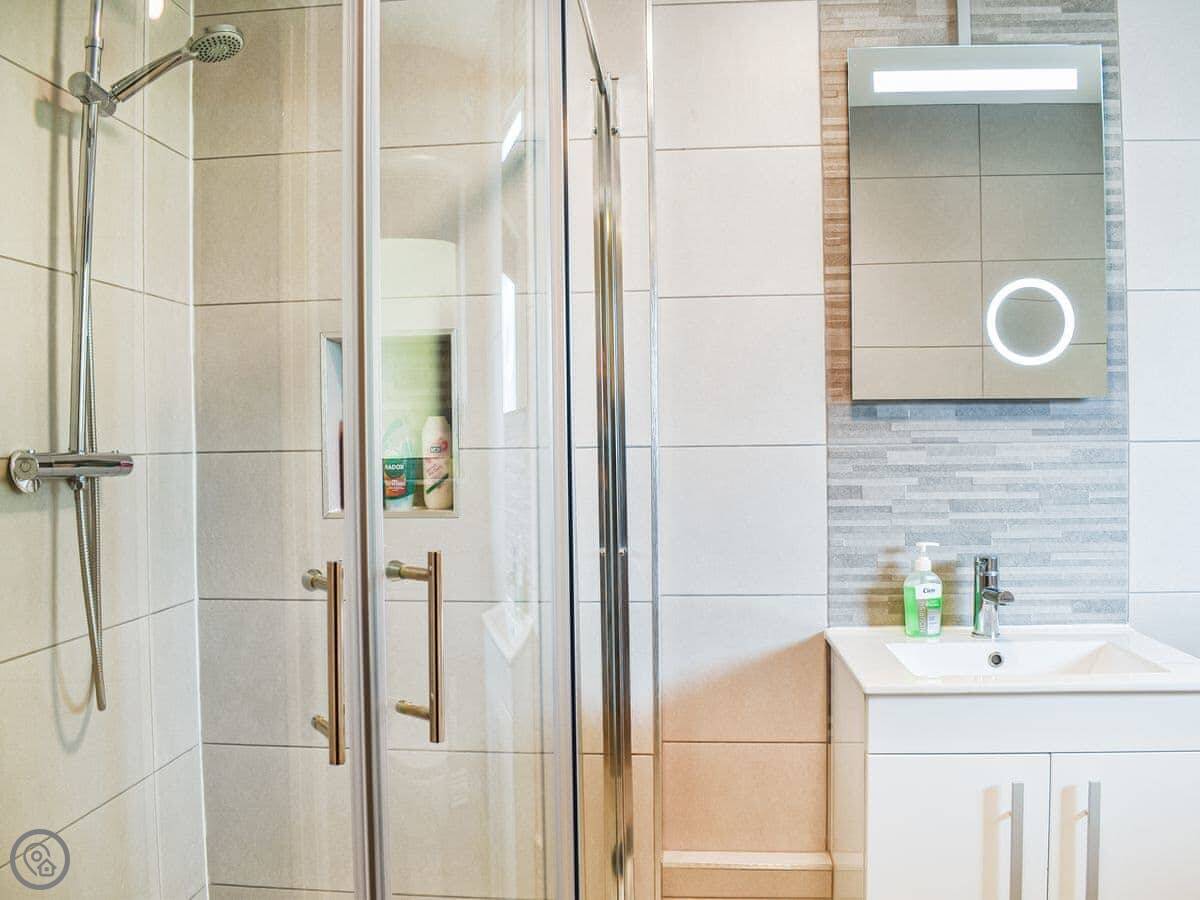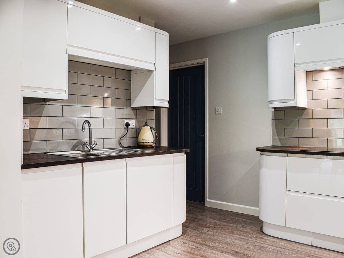 It has a washing machine, WiFi, TV. Bedding and towels are included. There's a cot and highchair if you need them. Parking is on the drive at the front. The entrance is step-free.