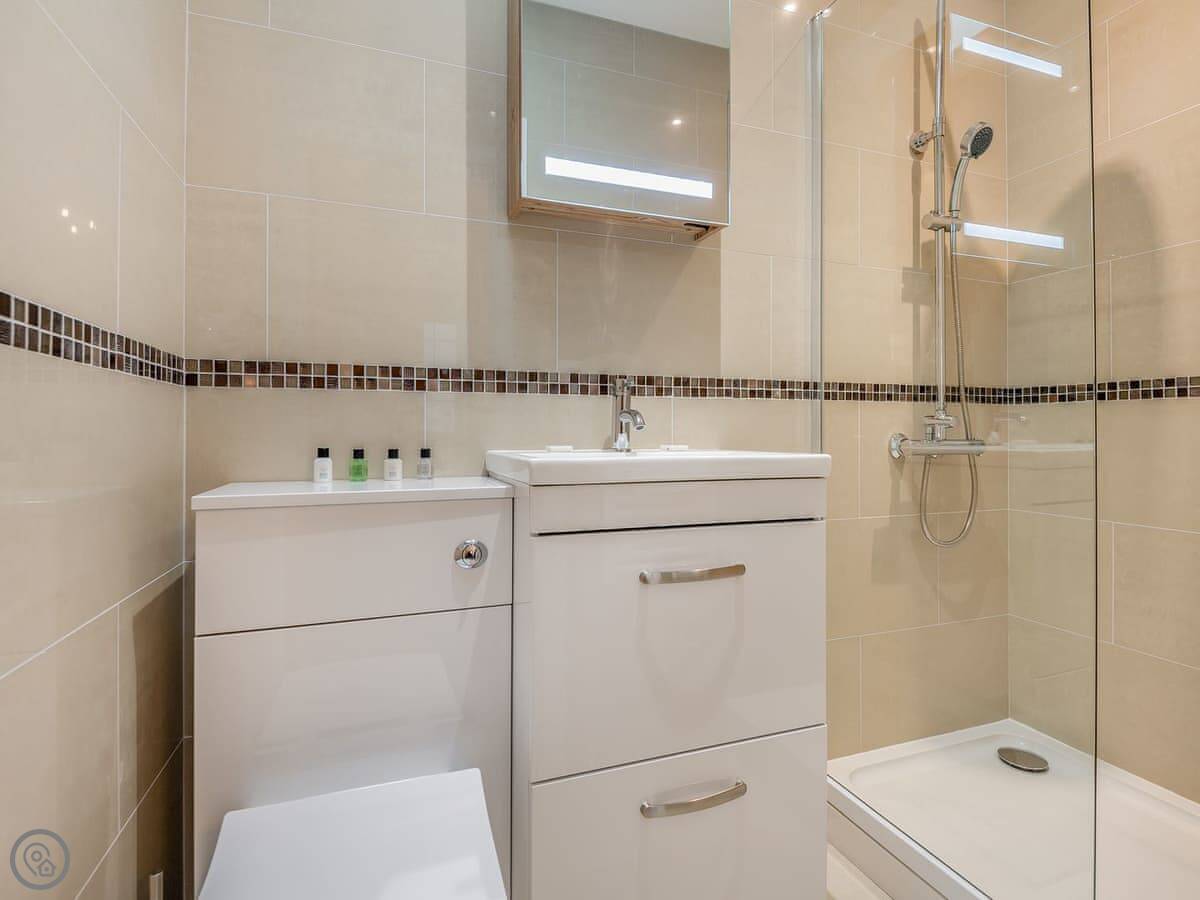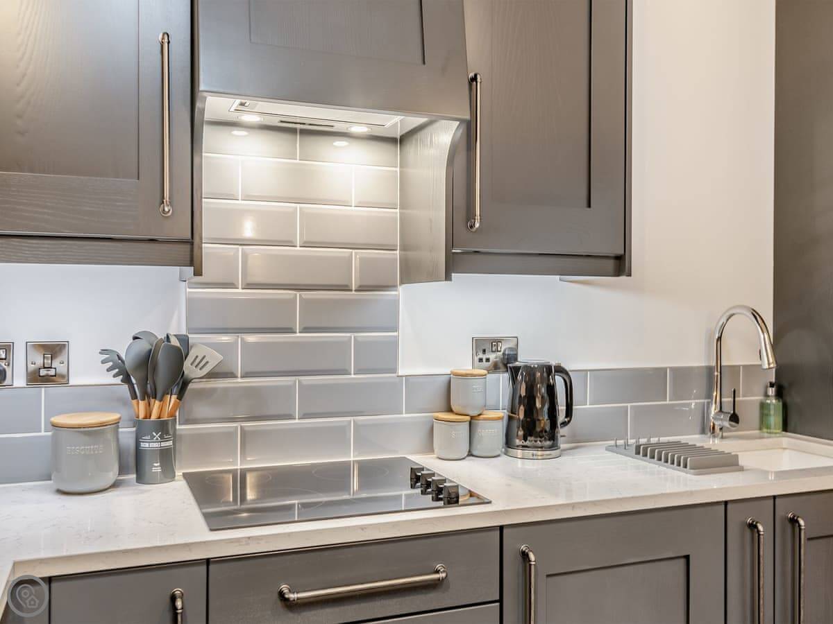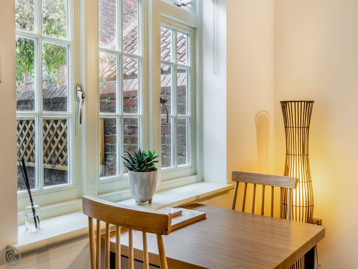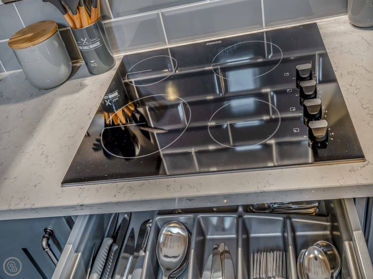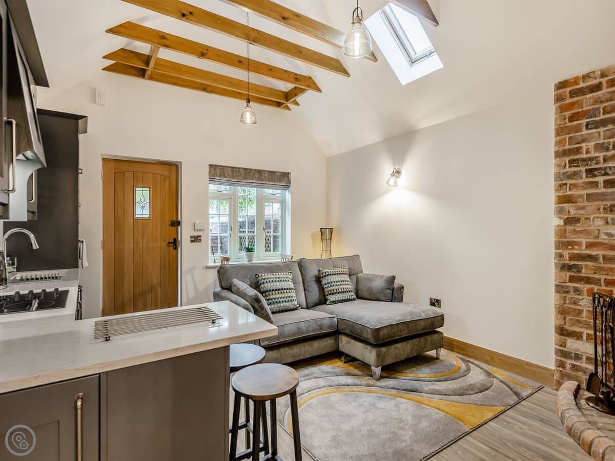 It's a one-bedroom place, just for two. It has a 5 Star rating, which I suppose means it's been done up to a high standard. It feels new and clean. There's underfloor heating on the ground floor and a wood burner. That area is all open plan.
