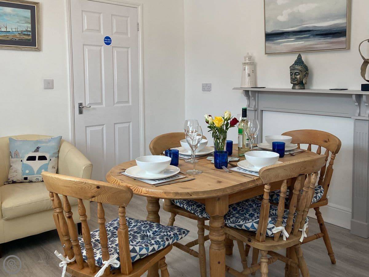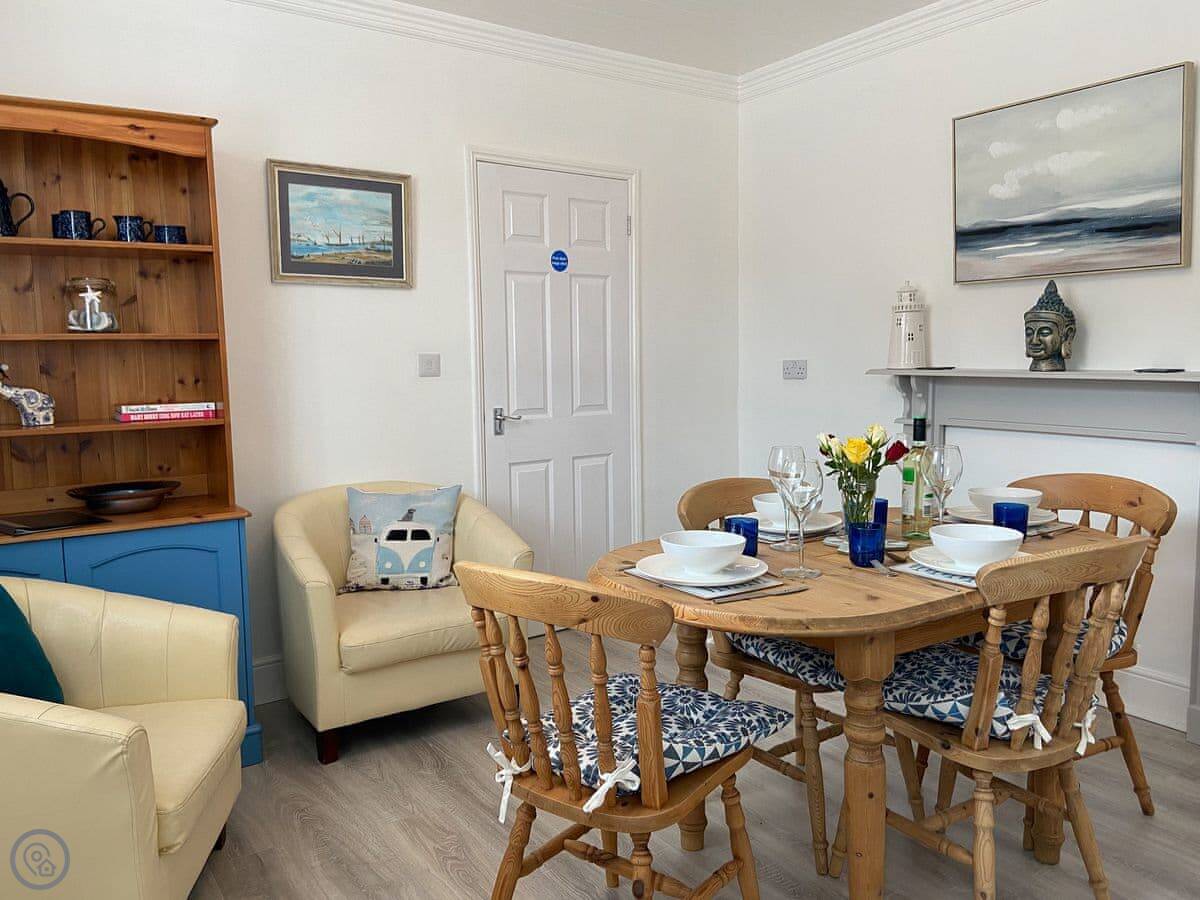 Smile 'N' Wave is on a street a couple of minutes back from the beach in Gorleston. It's an end-of-terrace house. You can see the sea from the front upstairs bedroom. The beach is sandy and they've won awards for it. Dogs are allowed on there all year, which is handy.