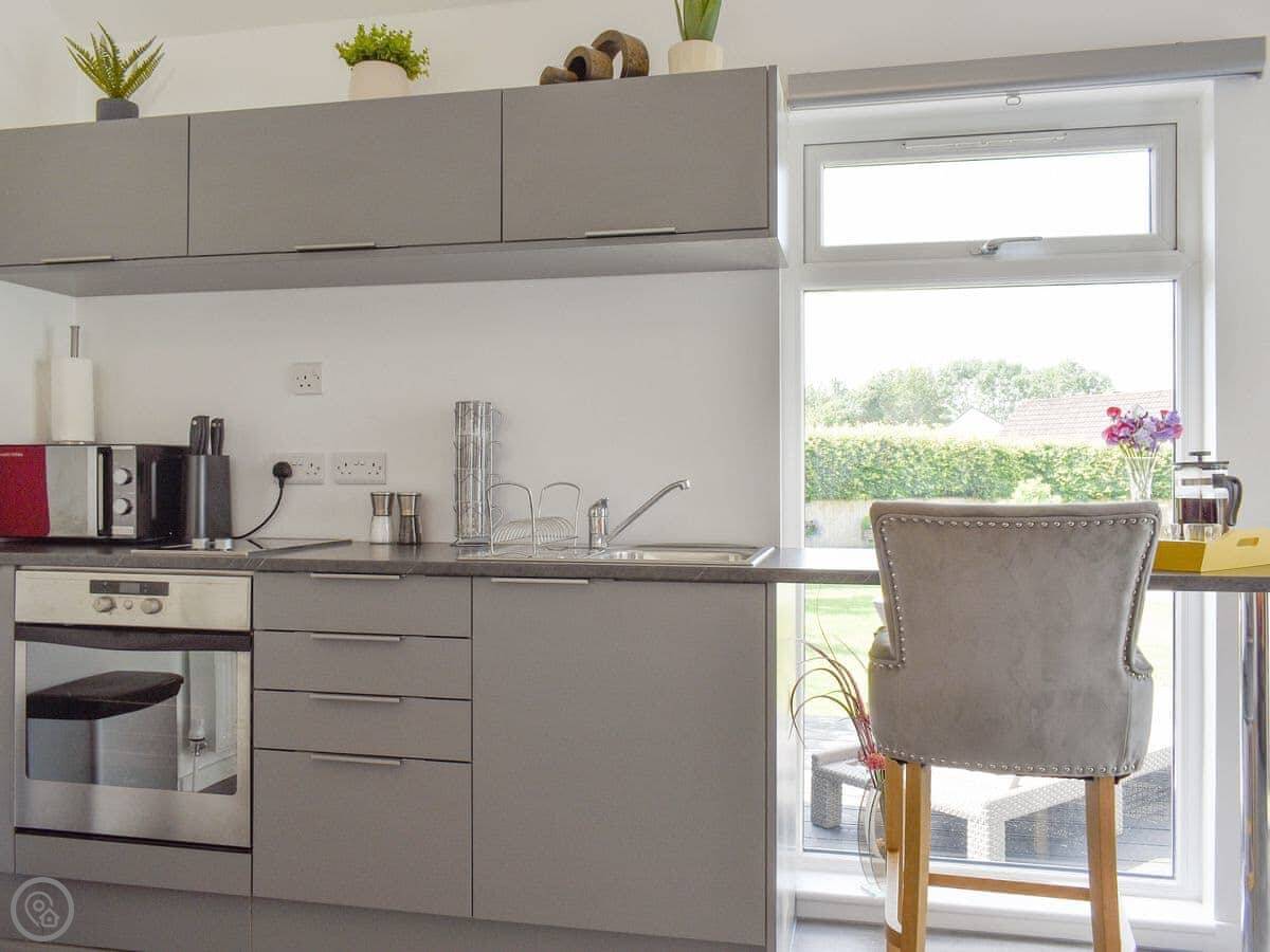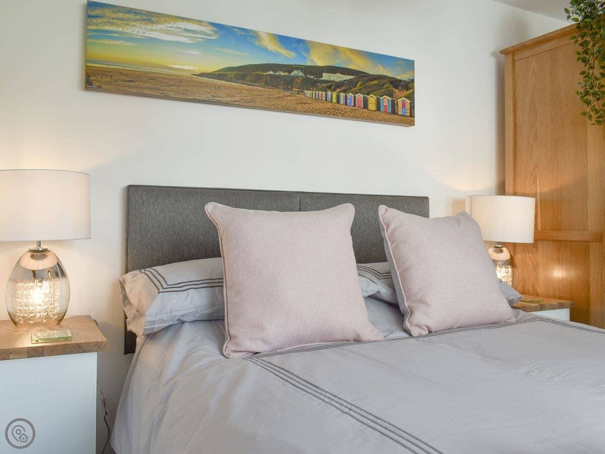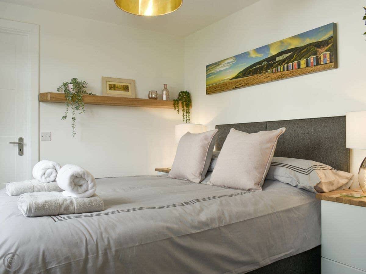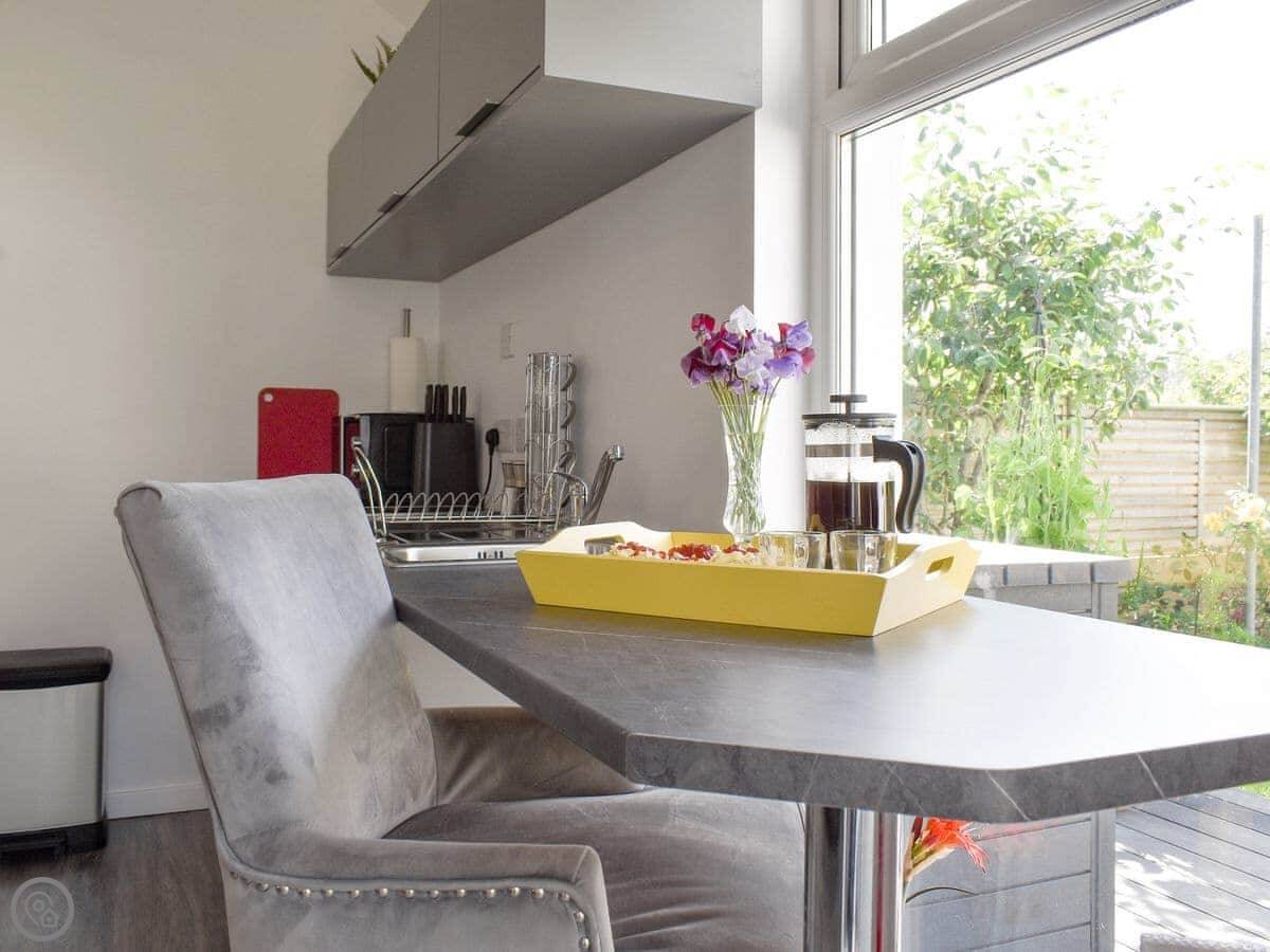 The cabin sleeps two. One bedroom, one shower room. It’s got a 4 Star rating. It’s a simple, open-plan space with a high ceiling. Good for sitting in if the weather turns.
