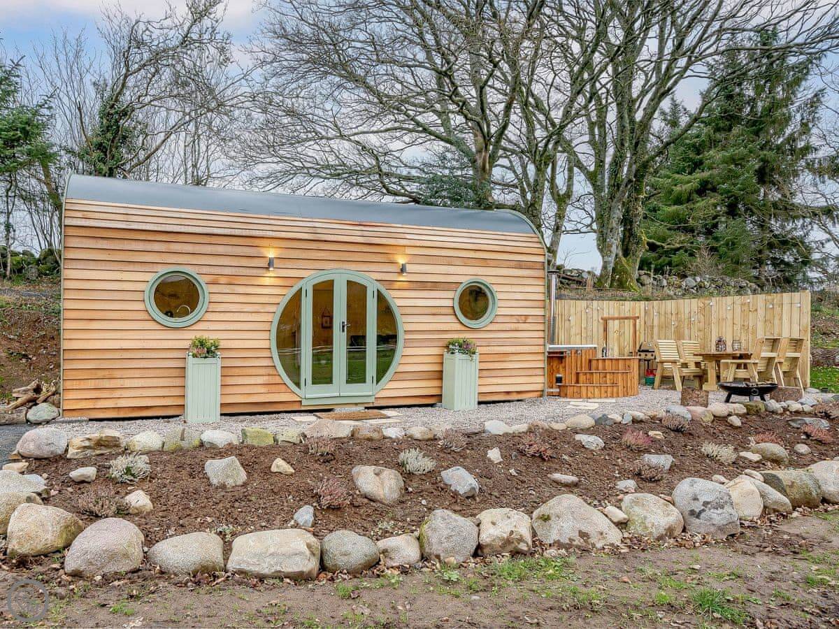 Freedom Fields pods really are delightful and offer guests that little bit of luxury in the stunning Ayrshire countryside. These three pods are set apart from each other to offer guests both privacy and seclusion and are beautifully designed. The pods have large luxurious kingsize beds on the mezzanine level and an open plan living/dining/kitchen space on the ground floor with the added luxury of a wood burner, just perfect for that romantic get away. Outside the pods have their very own wood fired hot tub where you can sit and relax being disturbed by nothing but the gently crackling fire and the wildlife. With a barbecue and firepit you can spend a lazy evening marvelling at the starry dark skies. The views are spectacular at any time of year, the pods are peacefully located with walking distance of the pretty conservation village of Straiton with coffee shop, pub and village store, voted one of the ten ’Best Villages in Scotland’, and featured in the book ’The Most Beautiful Villages of Scotland’.