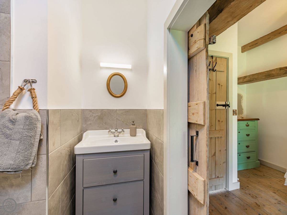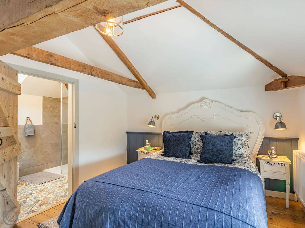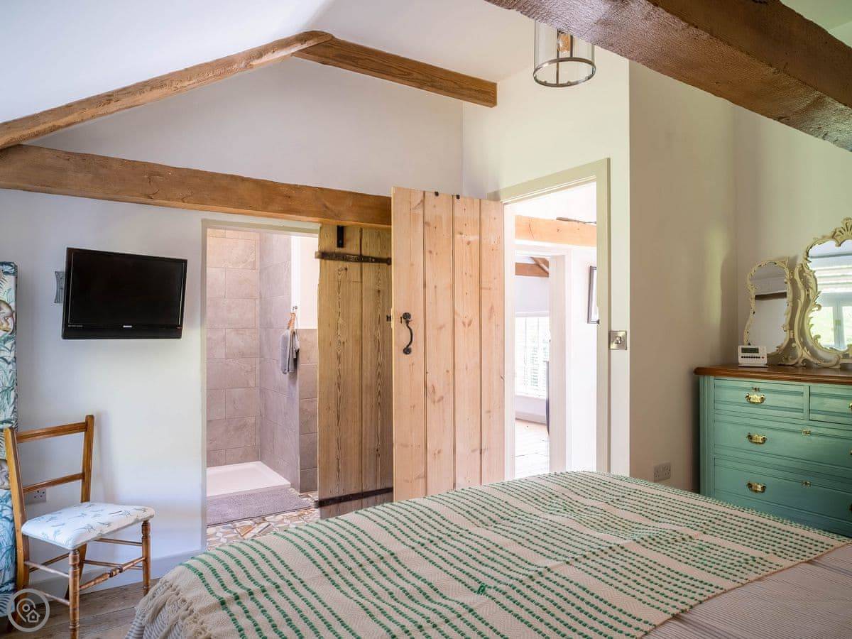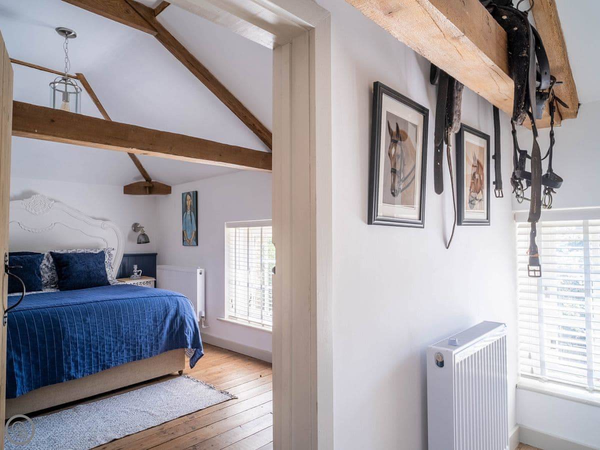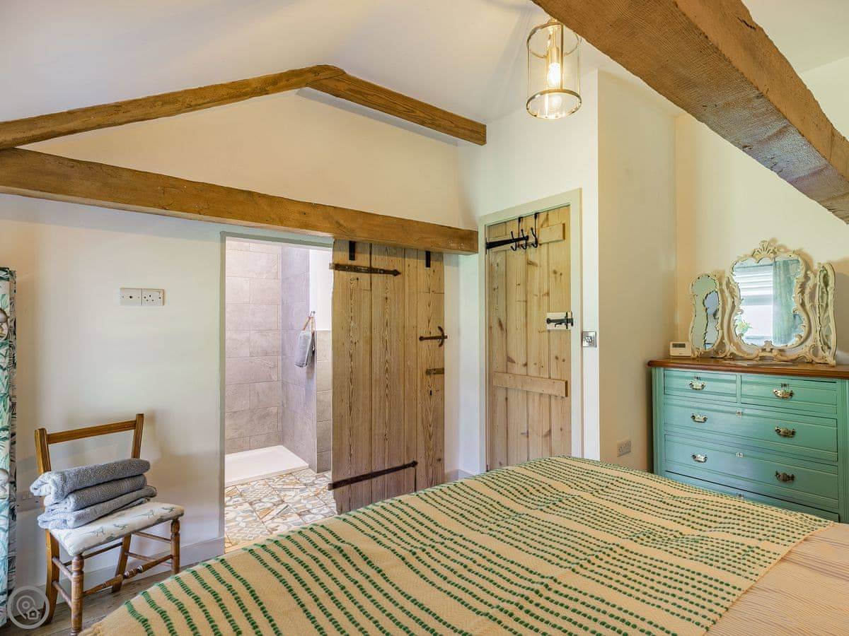 The Tack Room is one of two converted barns on our property. It's semi-detached, so you'll share a wall with the Boot Room next door. Your own bit is totally private though. It's got two bedrooms, both with their own bathroom. Sleeps four. It's a five star place, which means it's done up to a high standard and everything is new.