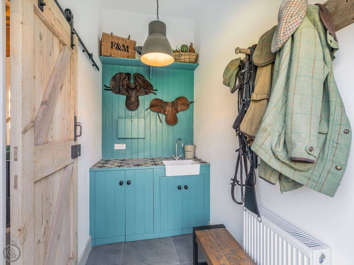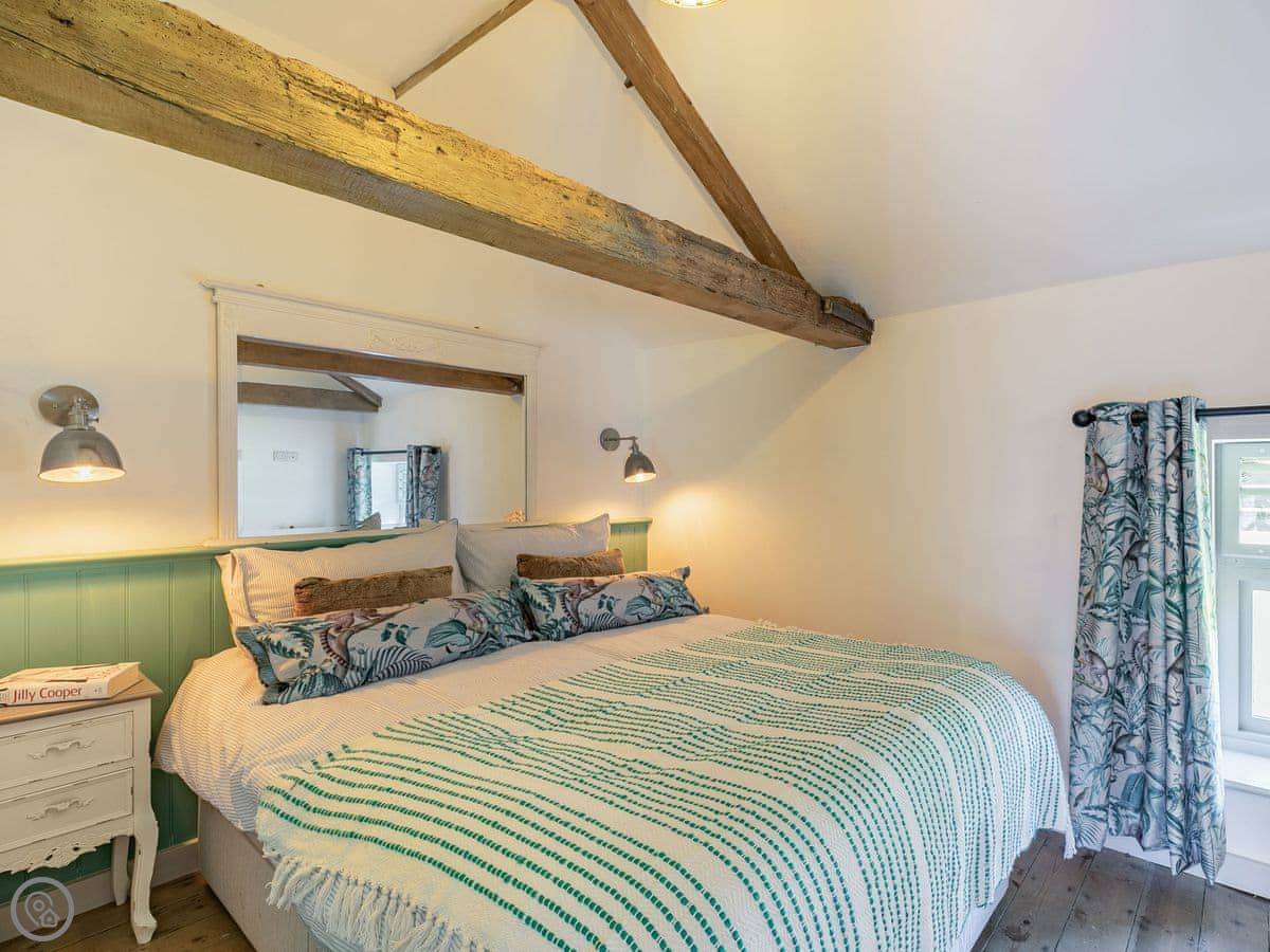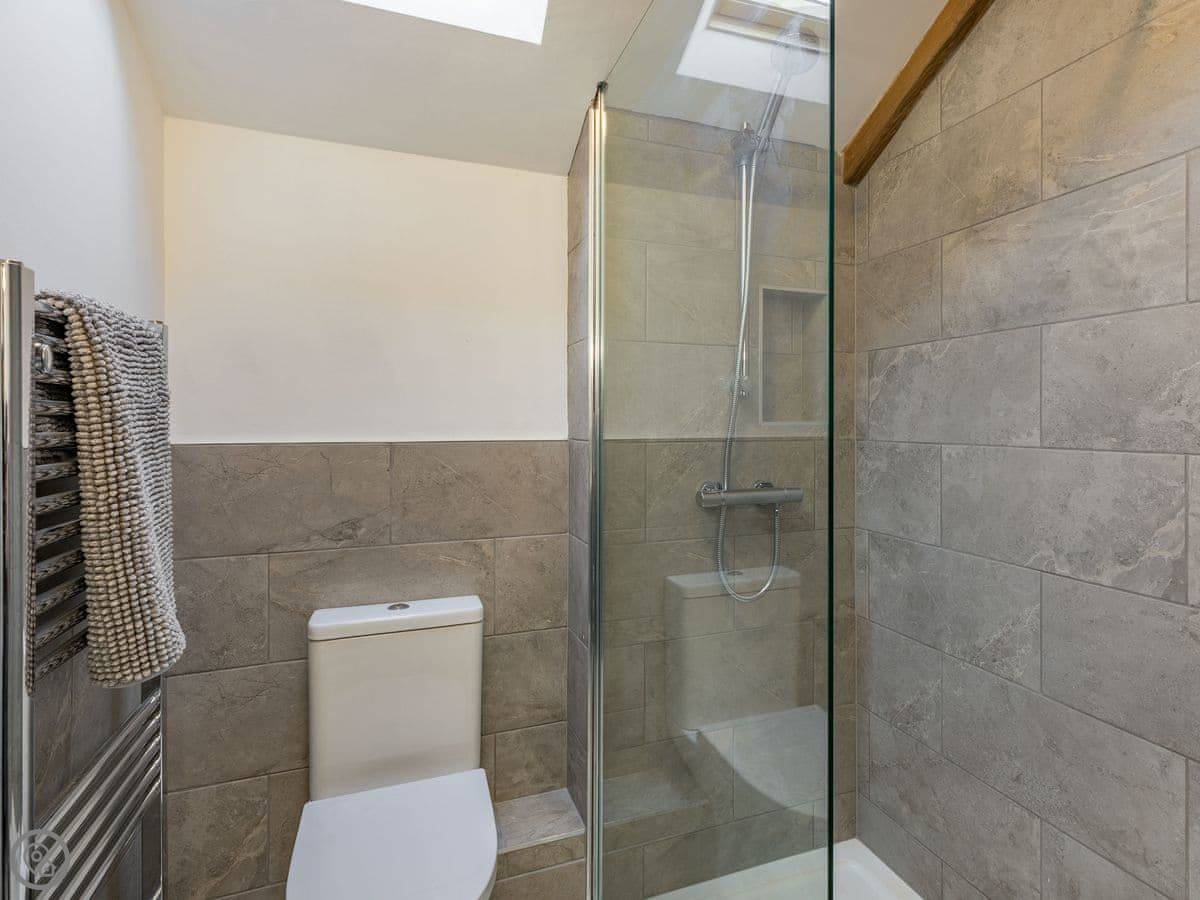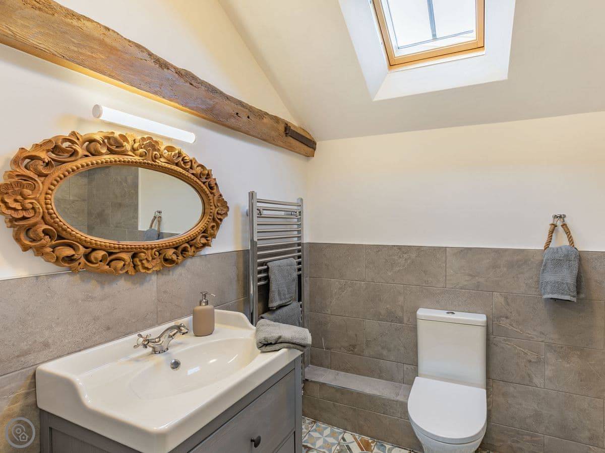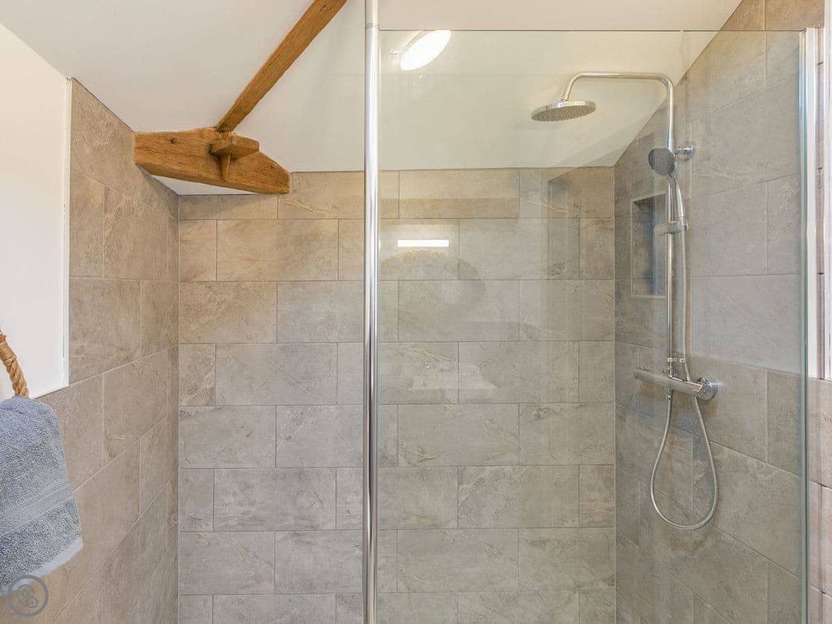 The Tack Room is one of two converted barns on our property. It's semi-detached, so you'll share a wall with the Boot Room next door. Your own bit is totally private though. It's got two bedrooms, both with their own bathroom. Sleeps four. It's a five star place, which means it's done up to a high standard and everything is new.