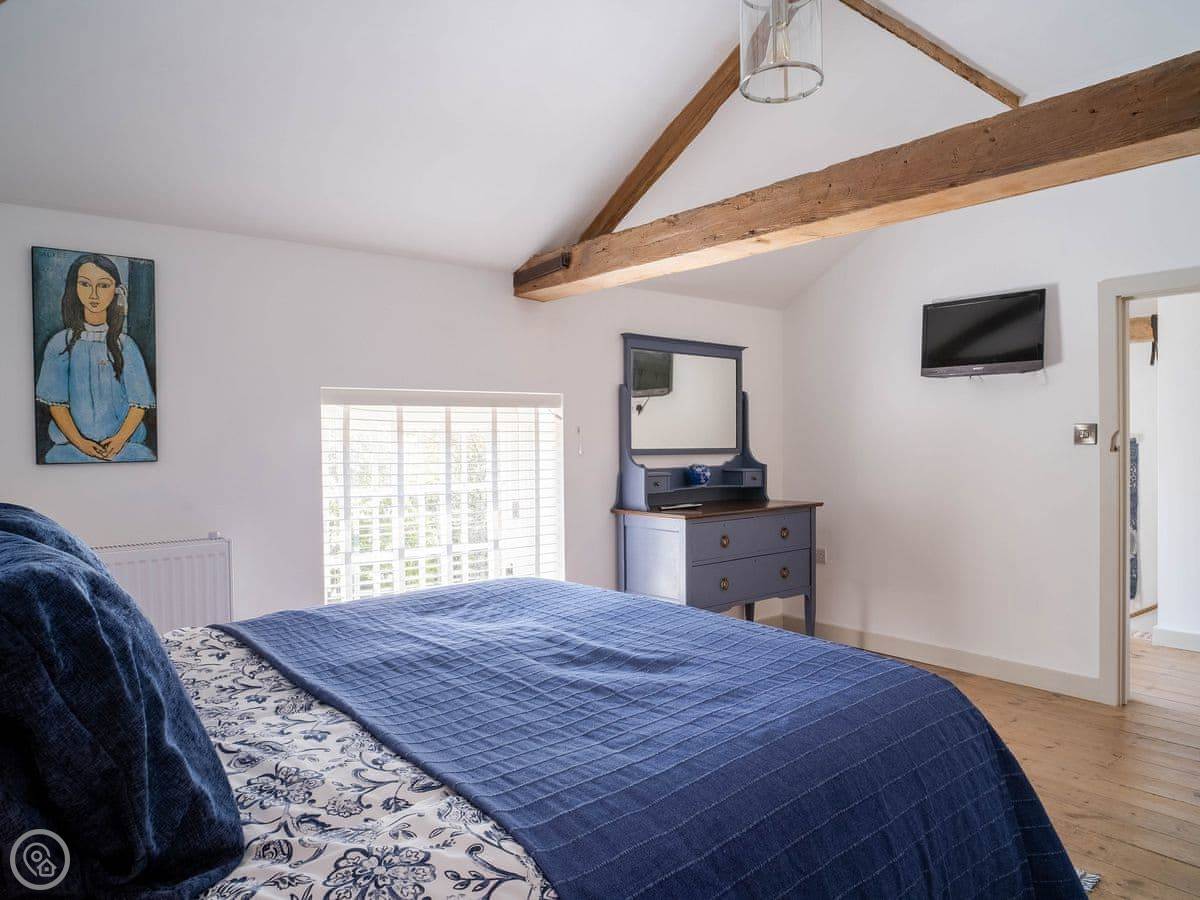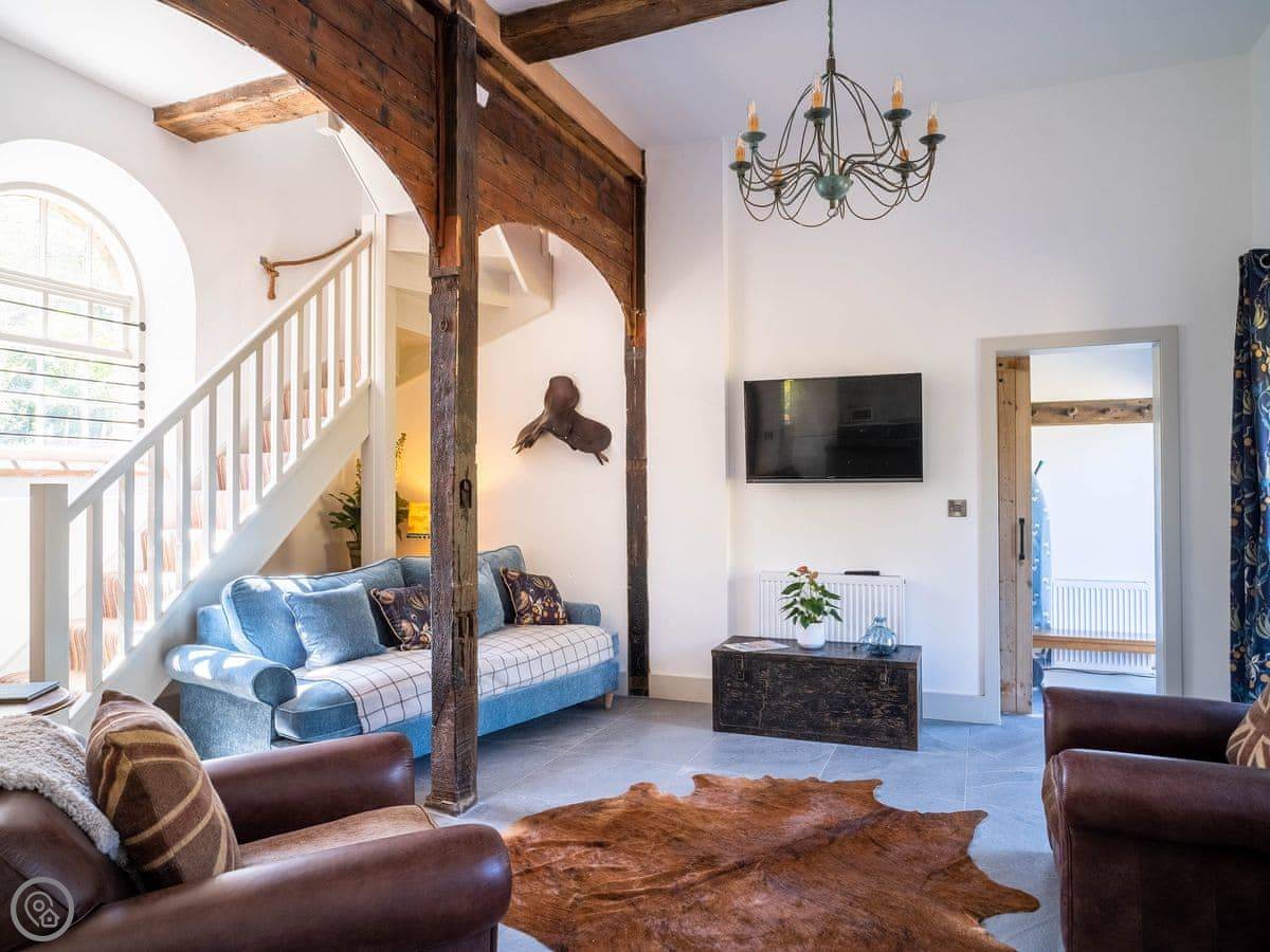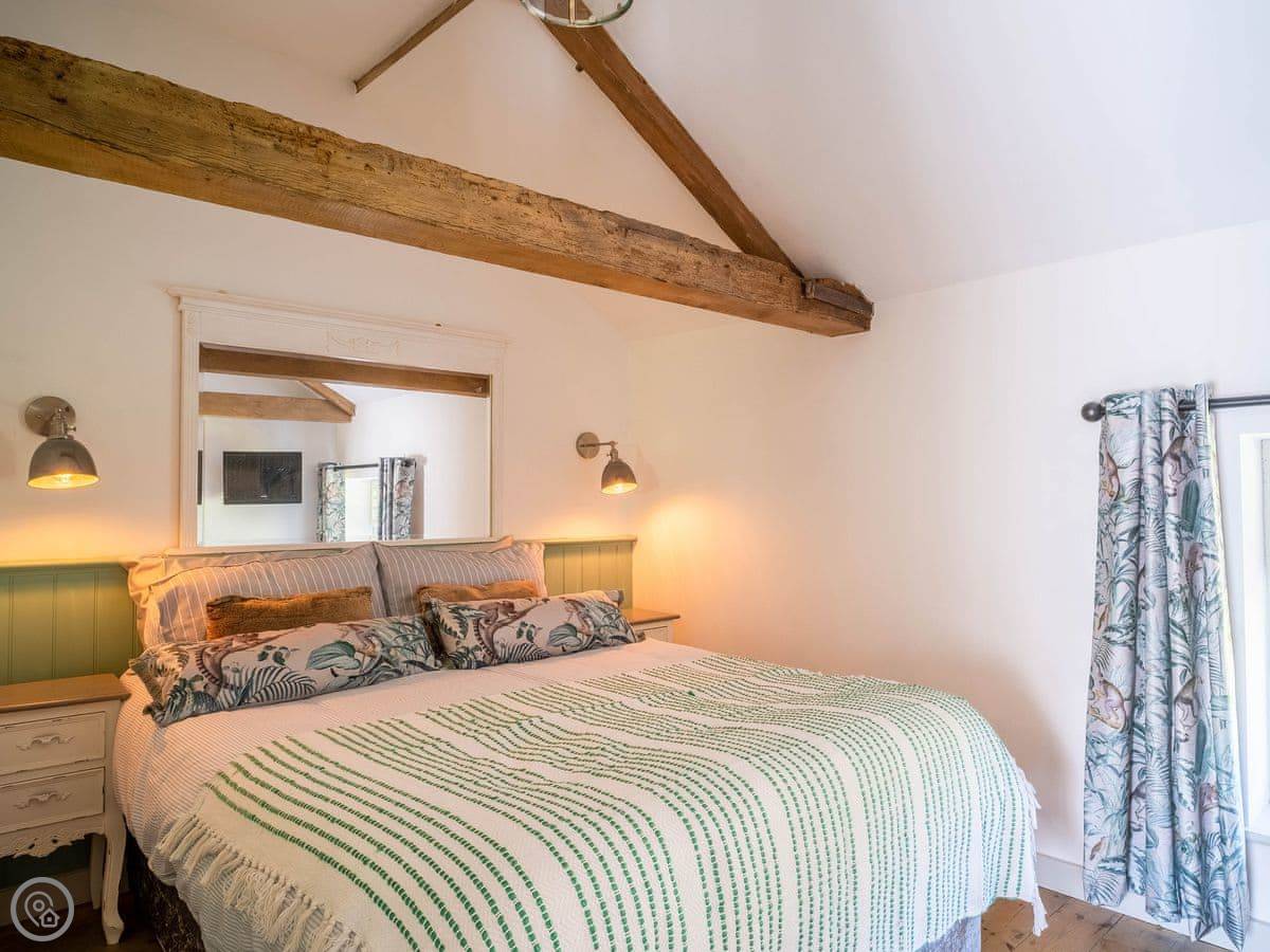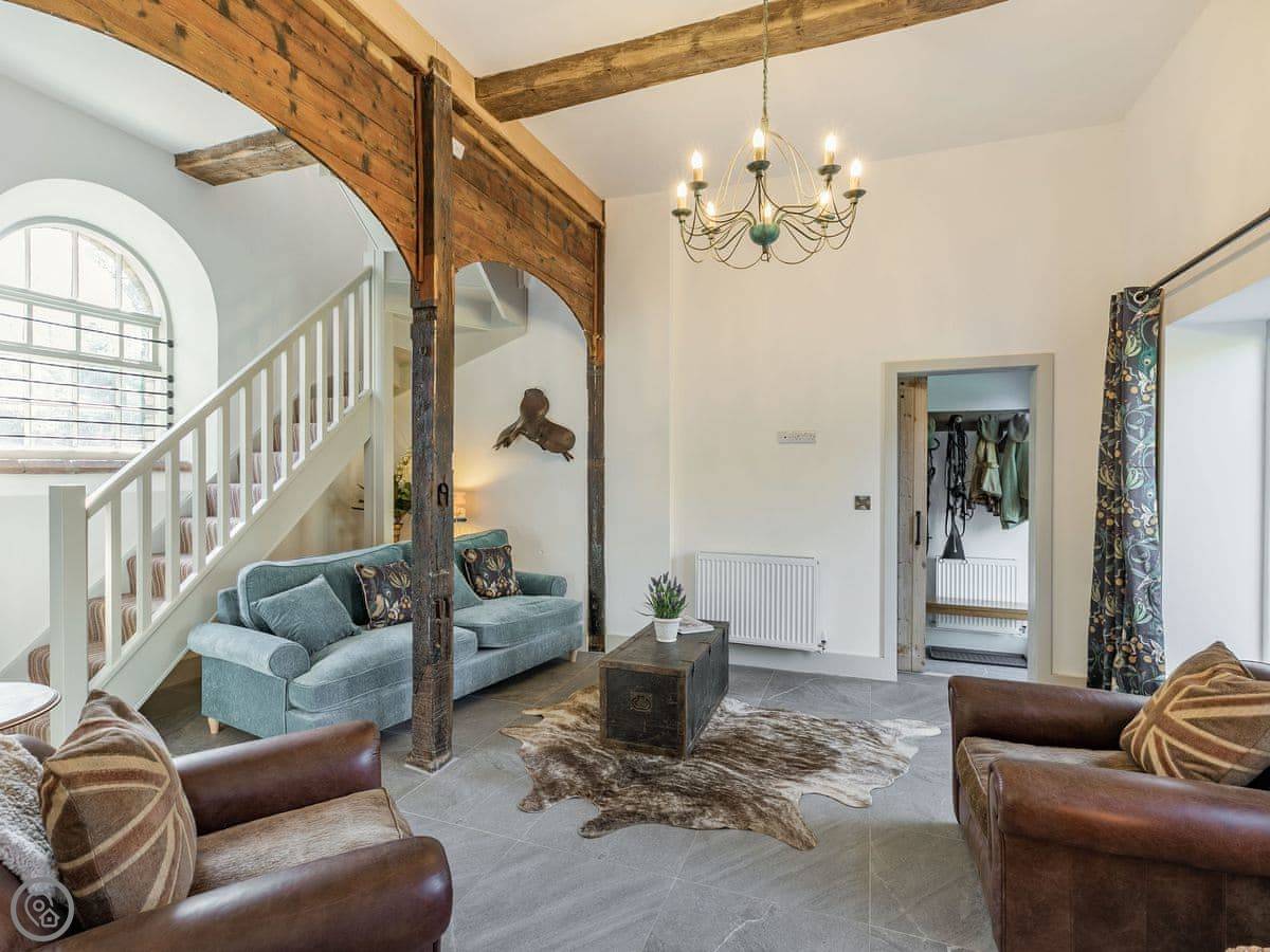 The Tack Room is one of two converted barns on our property. It's semi-detached, so you'll share a wall with the Boot Room next door. Your own bit is totally private though. It's got two bedrooms, both with their own bathroom. Sleeps four. It's a five star place, which means it's done up to a high standard and everything is new.