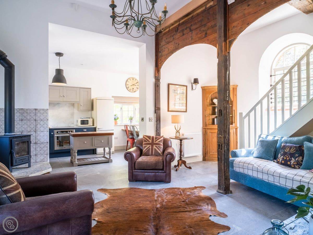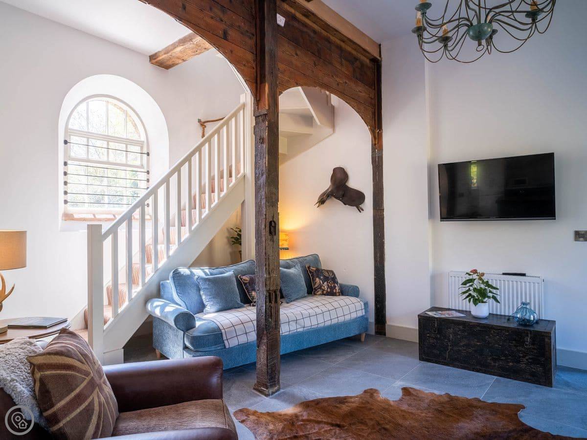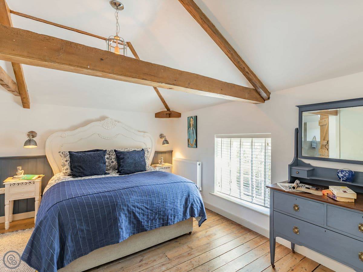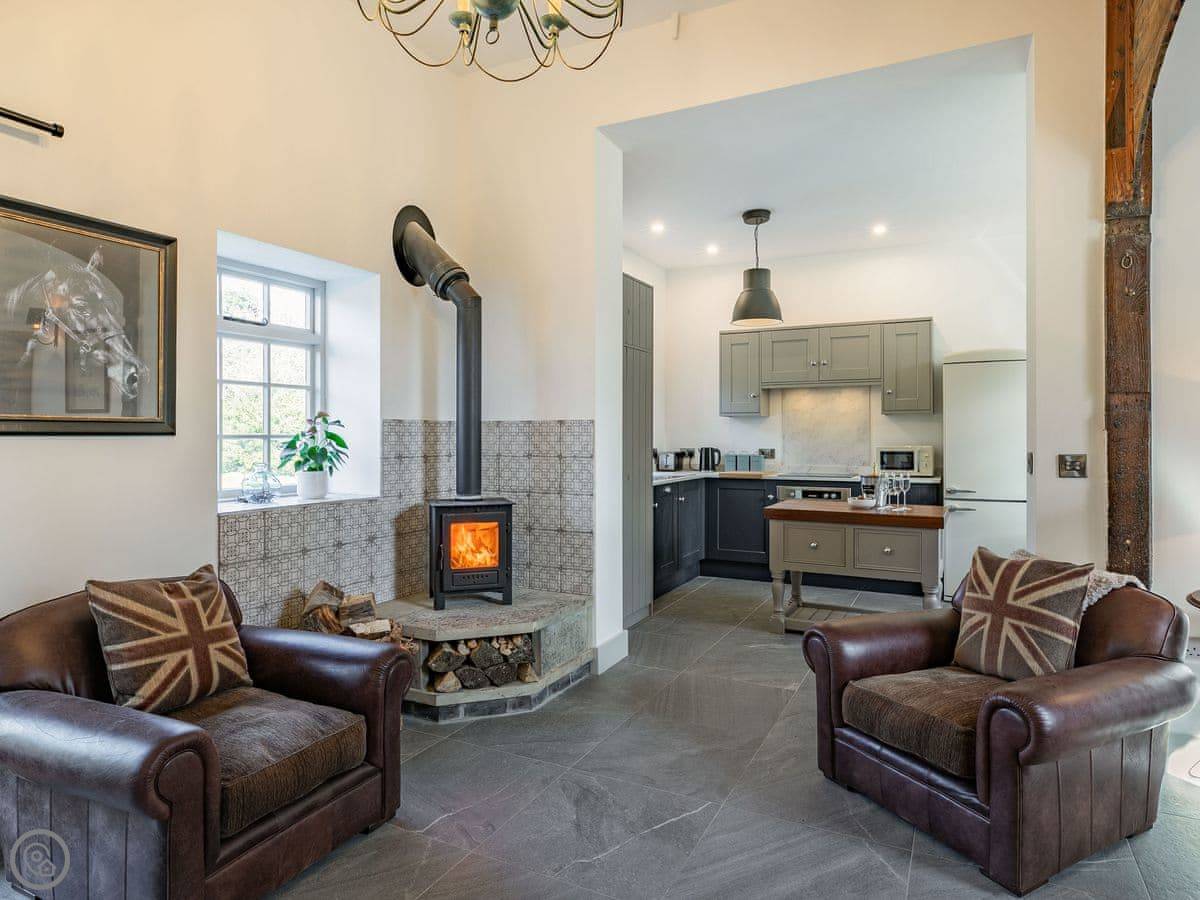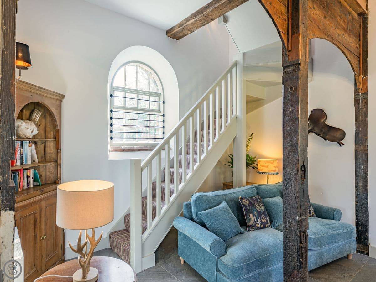 The Tack Room is one of two converted barns on our property. It's semi-detached, so you'll share a wall with the Boot Room next door. Your own bit is totally private though. It's got two bedrooms, both with their own bathroom. Sleeps four. It's a five star place, which means it's done up to a high standard and everything is new.