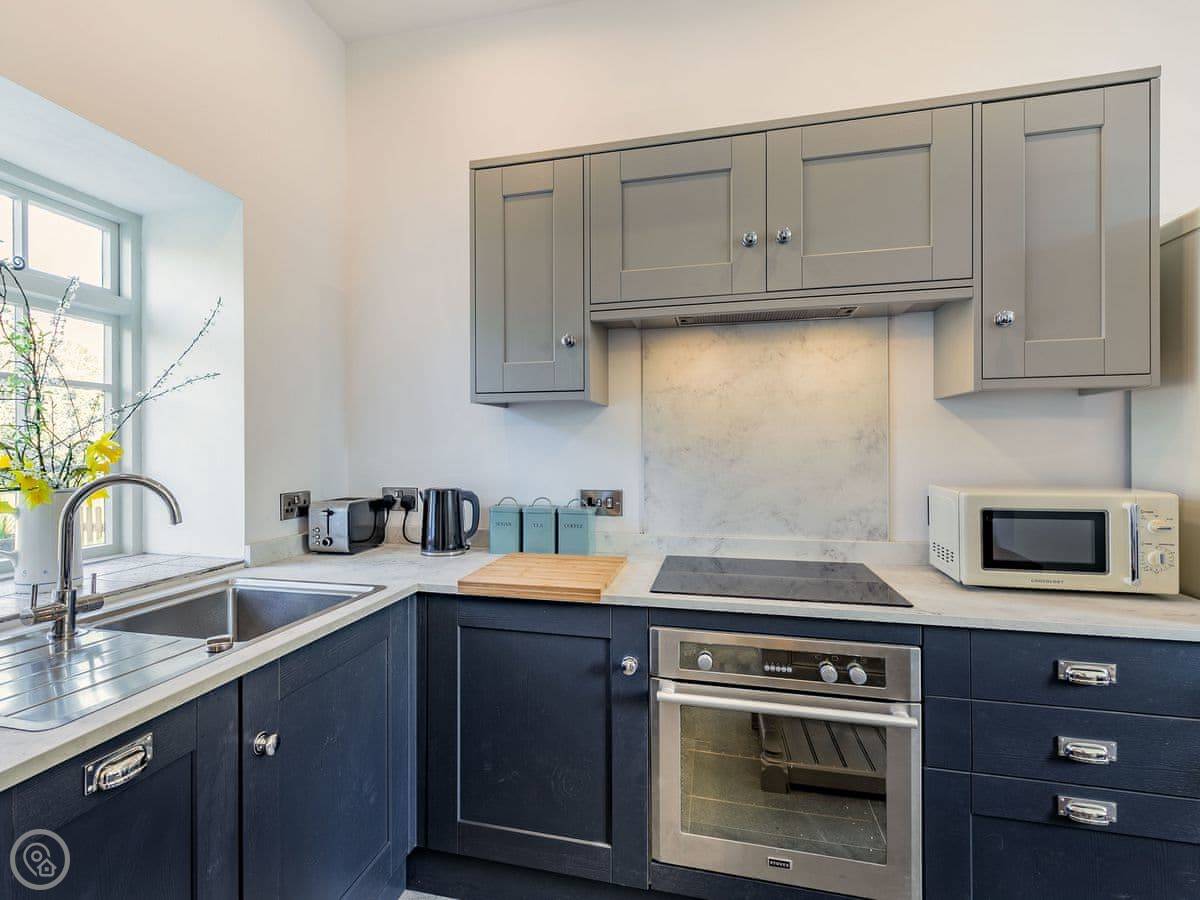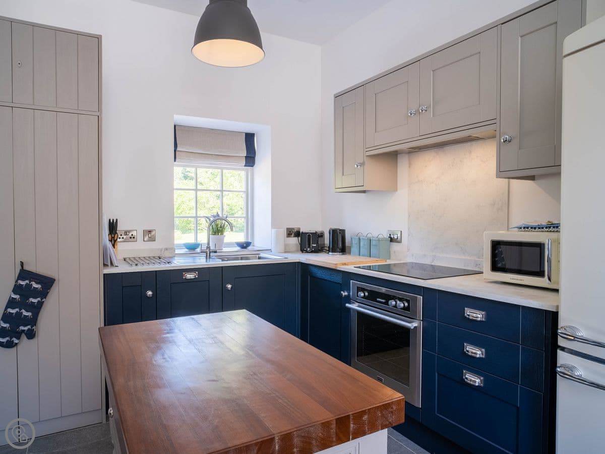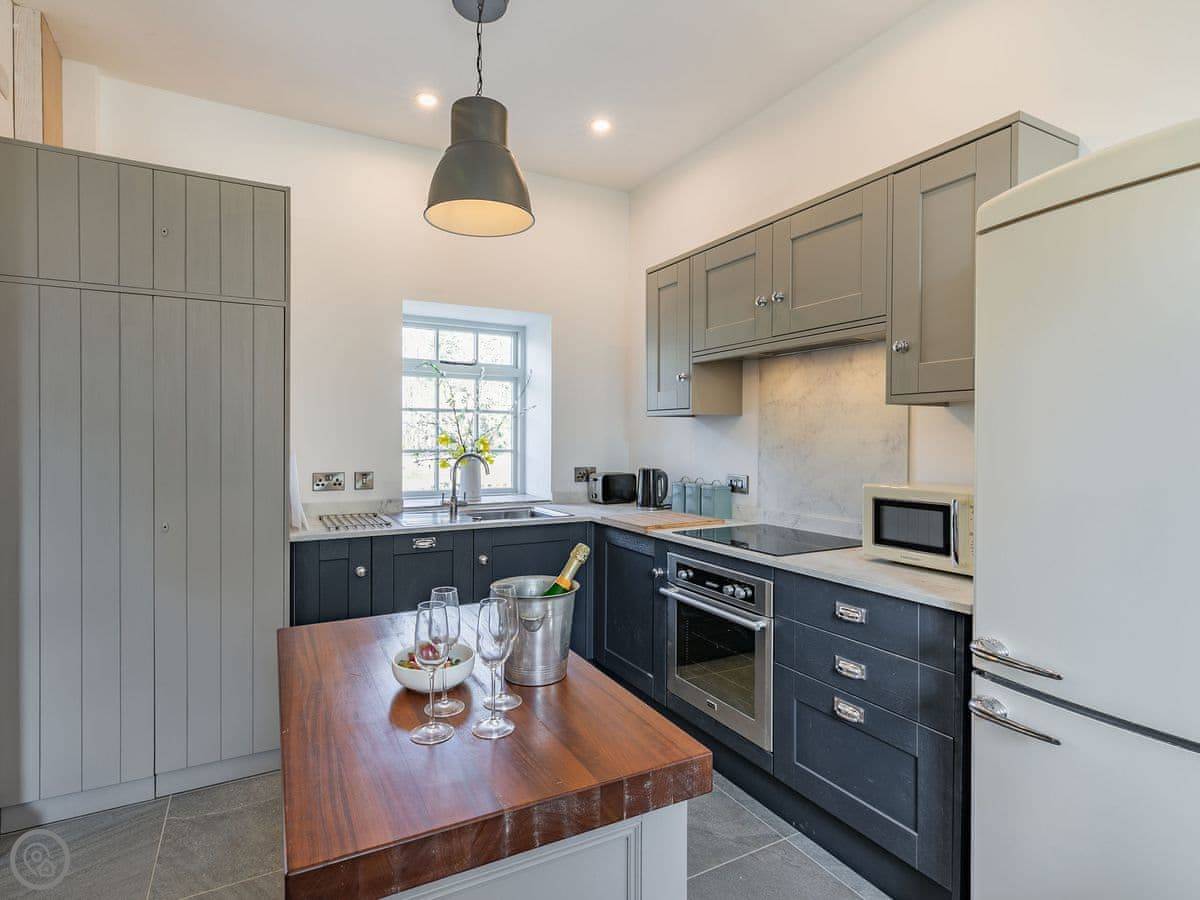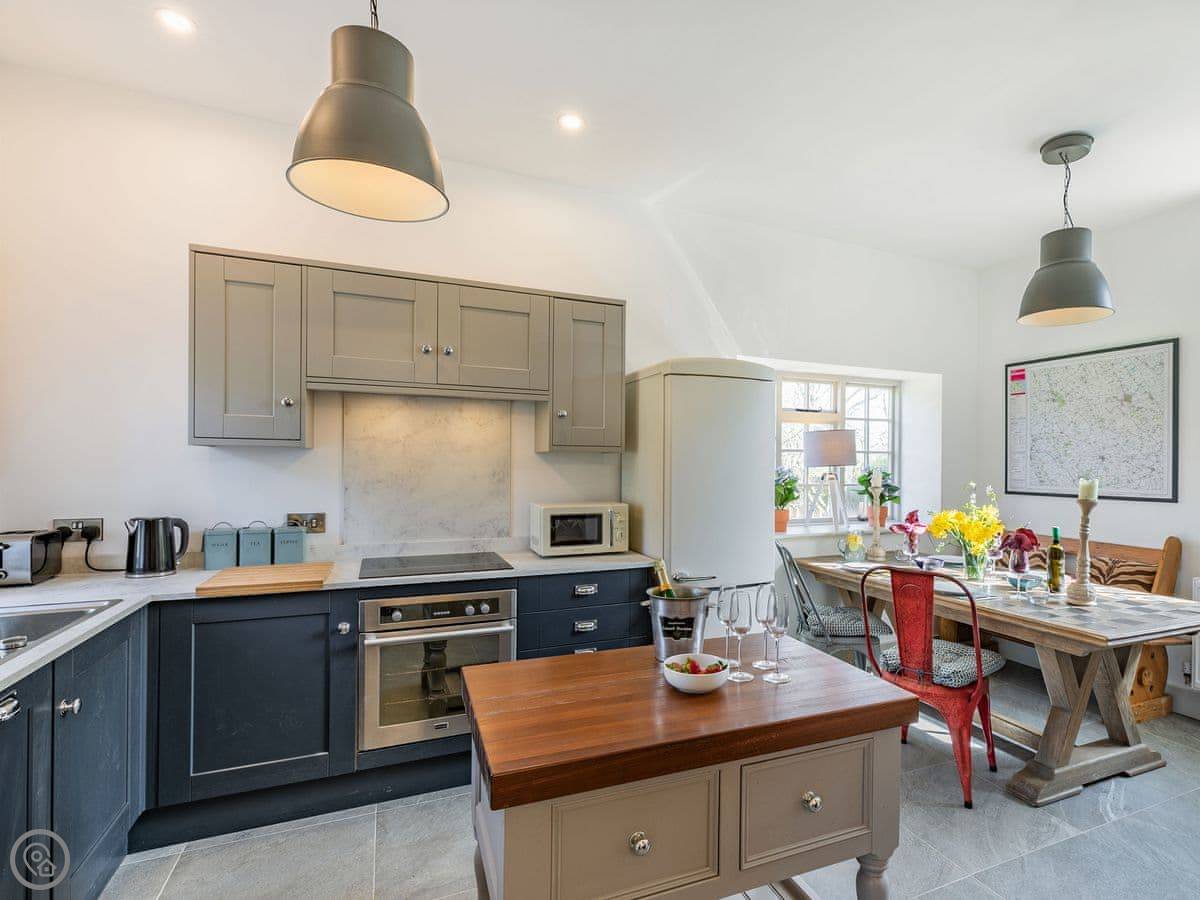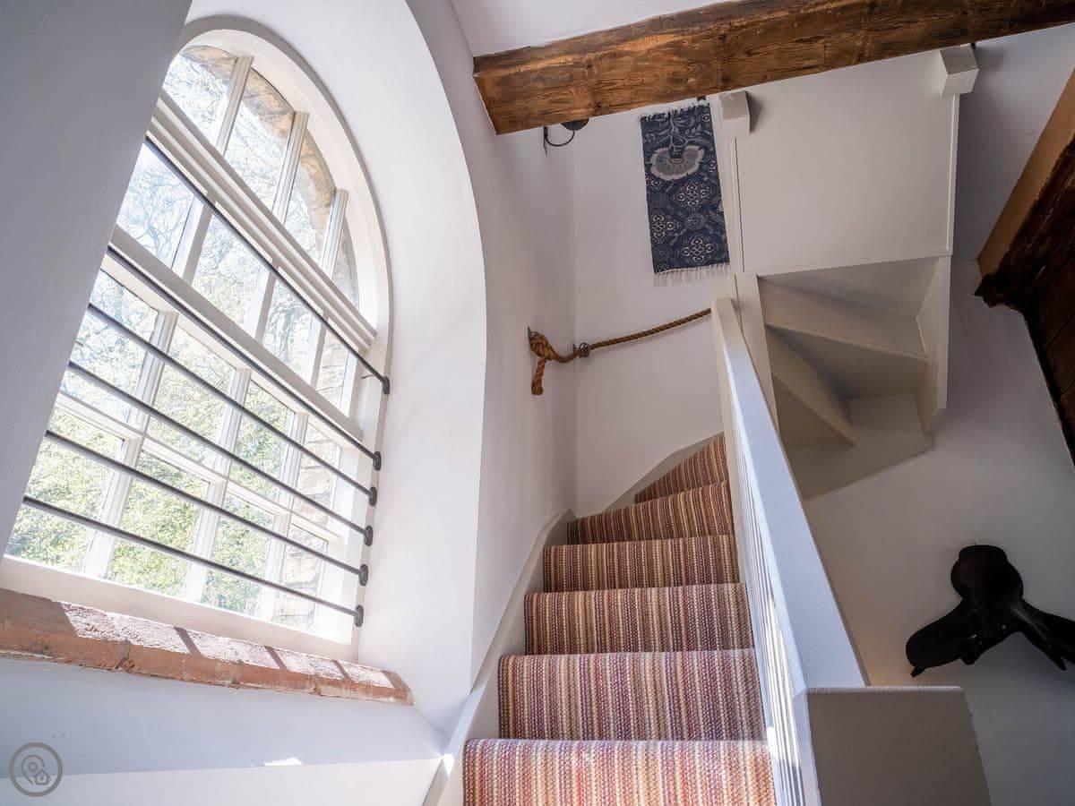 The Tack Room is one of two converted barns on our property. It's semi-detached, so you'll share a wall with the Boot Room next door. Your own bit is totally private though. It's got two bedrooms, both with their own bathroom. Sleeps four. It's a five star place, which means it's done up to a high standard and everything is new.