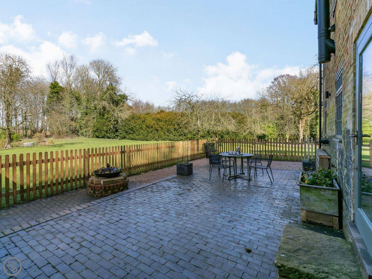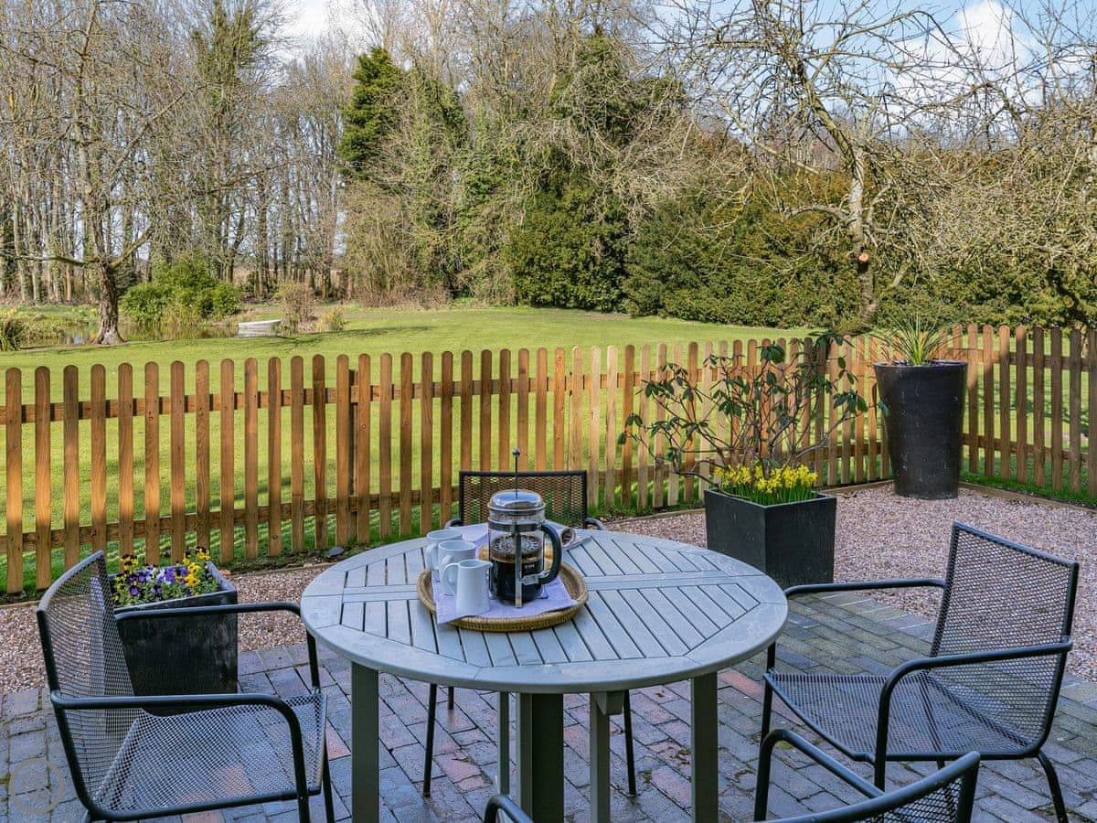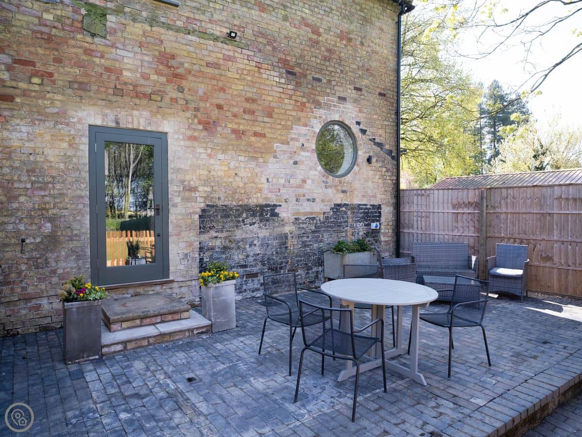 Outside, there's a patio and a bit of enclosed lawn. It's all yours. Good if you're bringing dogs, we allow two. There's a footpath from the garden that goes straight out into the fields and joins a bridleway. You can walk to Donington-on-Bain village in about twenty minutes. They've got a tearoom, a small shop, and a pub.