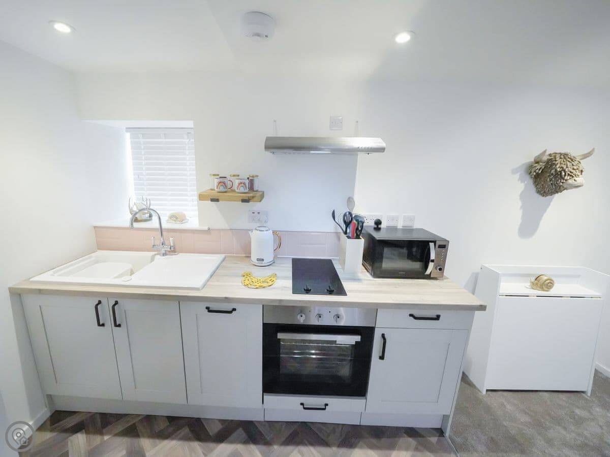 After exploring the fantastic far north of Scotland you will return to the fabulous Wee House by the sea. It’s a cute place and ideal for couples looking for a romantic base. Entering in the front door the ground floor is open plan. There’s a great little kitchen, comfortable seating area and surprisingly large wood burner for cosying round. Also, on the ground floor there’s a beautifully finished bathroom. On the first floor there’s a characterful double bedroom with exposed beams. The owners have tastefully finished this wee house to create a luxurious place to stay in an amazing spot. Don’t hesitate, book your week now and forever be glad you did!