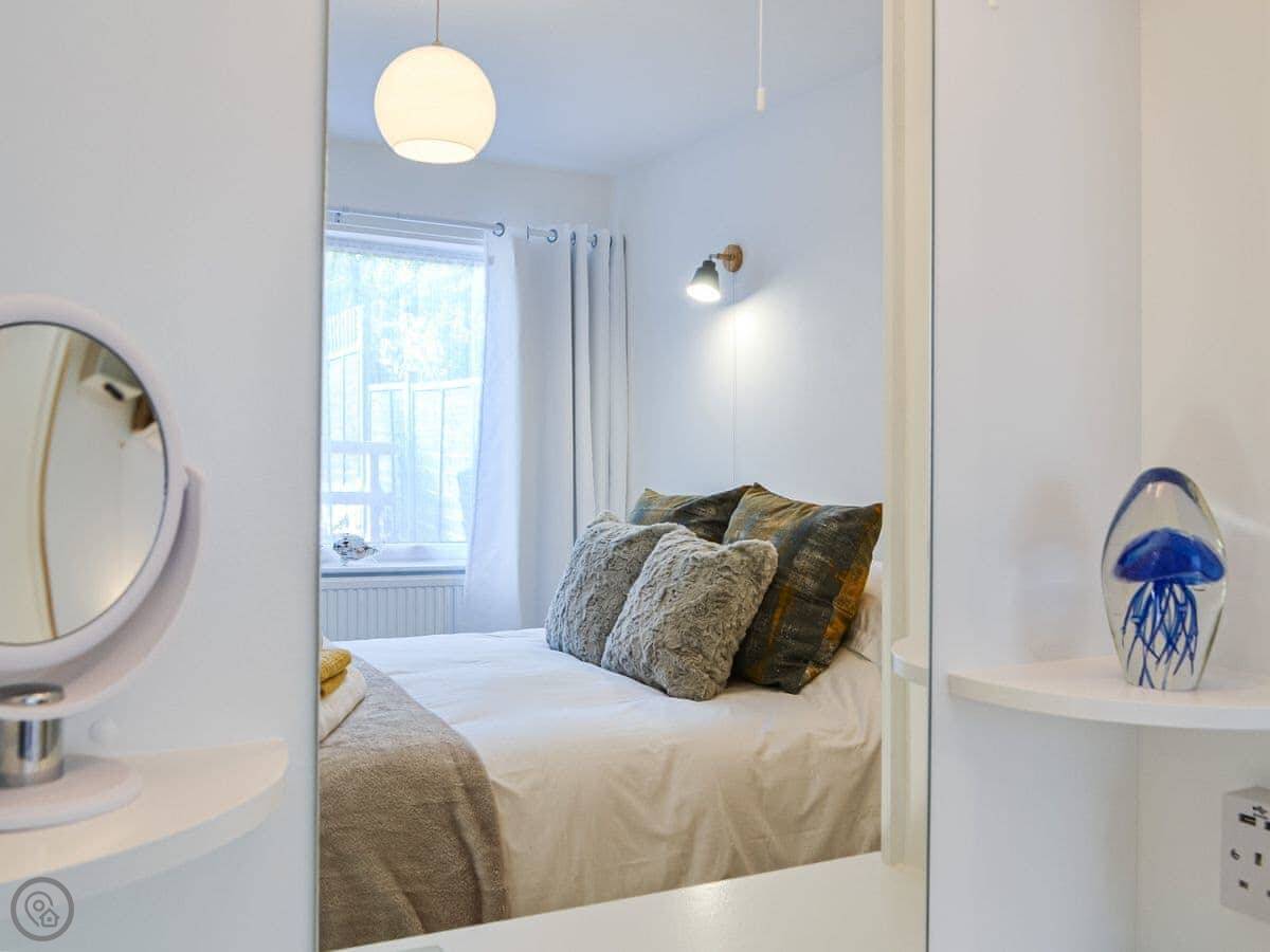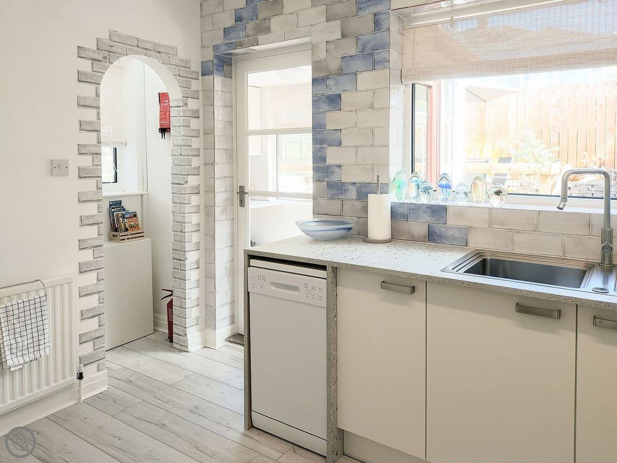 The living/dining room is the largest of the rooms and has a large picture window which floods the room with natural light. The two three-seater sofas are ideal to cuddle up on and watch a Netflix movie on the large flatscreen TV. The kitchen has a real seaside theme with subtle tones of blue and white. Behind the sleek modern units, you will find everything you need to rustle up some great home cooked meals during your stay. There is even a small pantry where you can store all your holiday essentials. The house bathroom offers a bath with shower over and the accommodation is completed with a utility room which also provides access to the enclosed rear elevated paved garden. Here you can sit and enjoy a morning coffee whilst planning the day head or an afternoon drink in the sun before dinner.