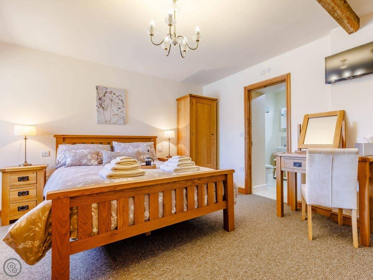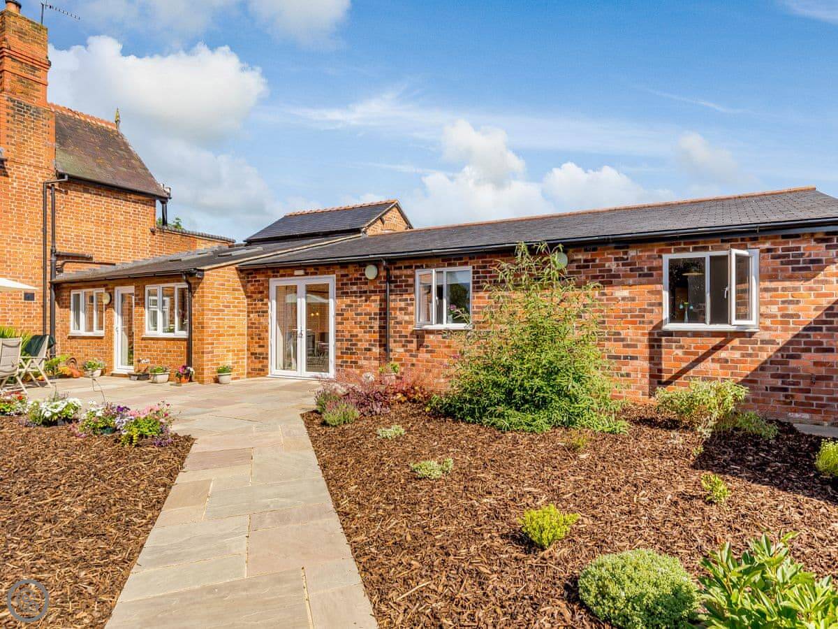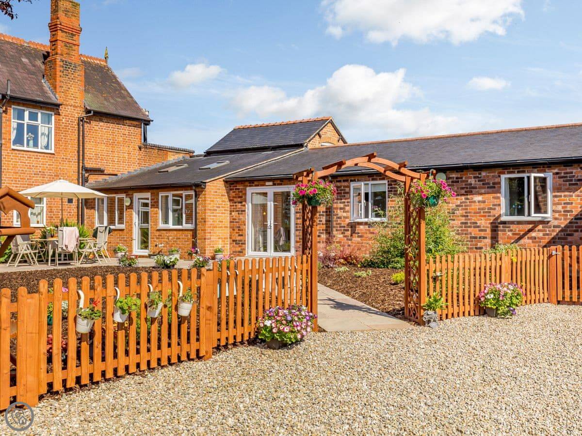 The Woodlands Farmhouse is in Tallarn Green, on the Welsh side of the border. It's a detached, single-storey house on a working farm. That means you see tractors sometimes, and you get farm noises and smells. It's very quiet otherwise.