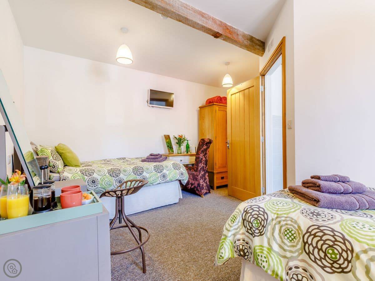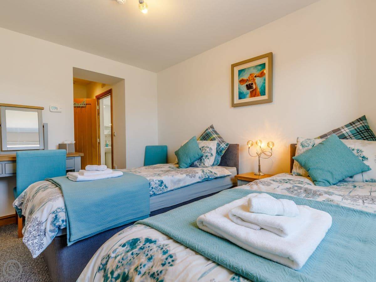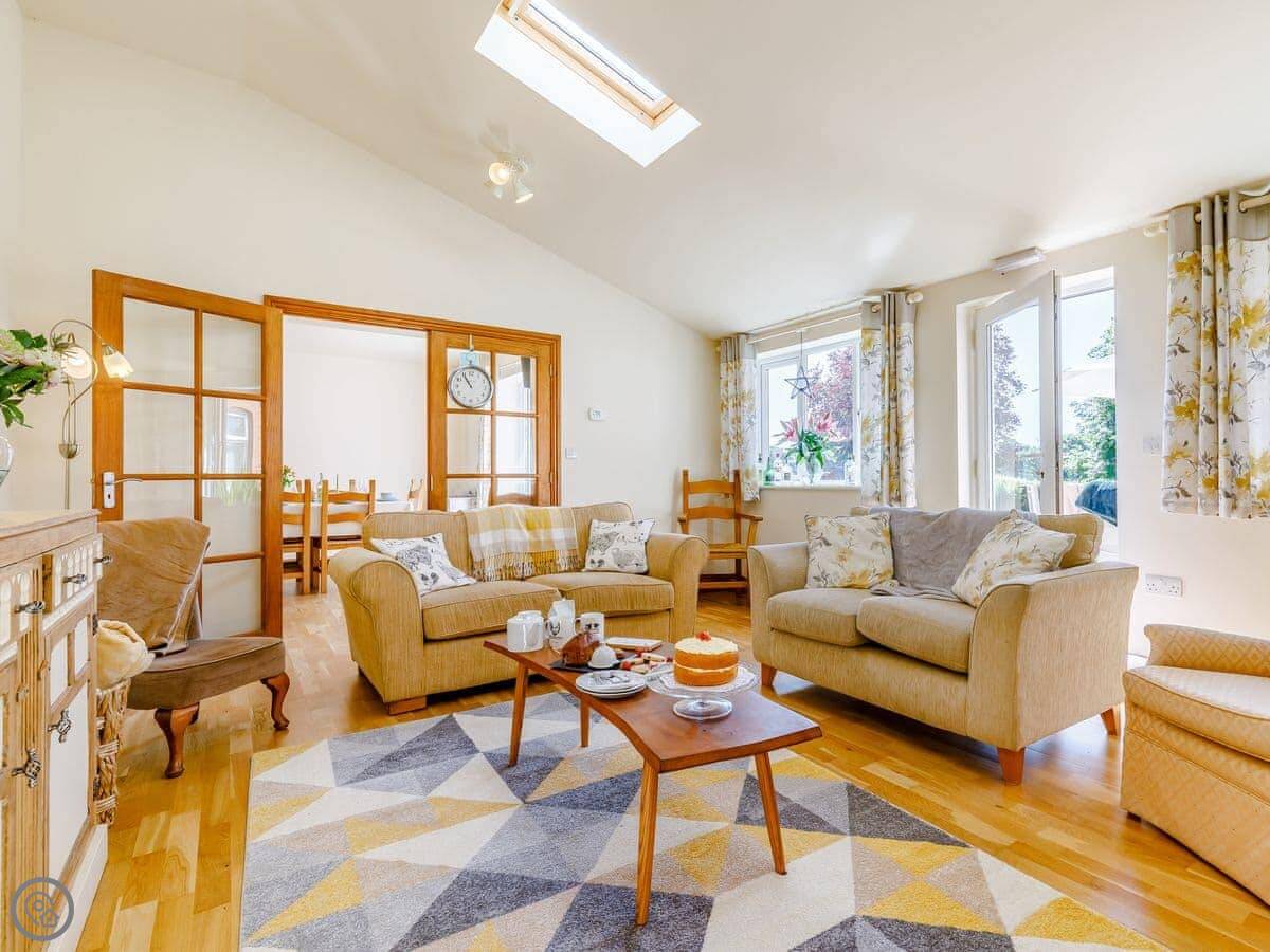 The Woodlands Farmhouse is in Tallarn Green, on the Welsh side of the border. It's a detached, single-storey house on a working farm. That means you see tractors sometimes, and you get farm noises and smells. It's very quiet otherwise.