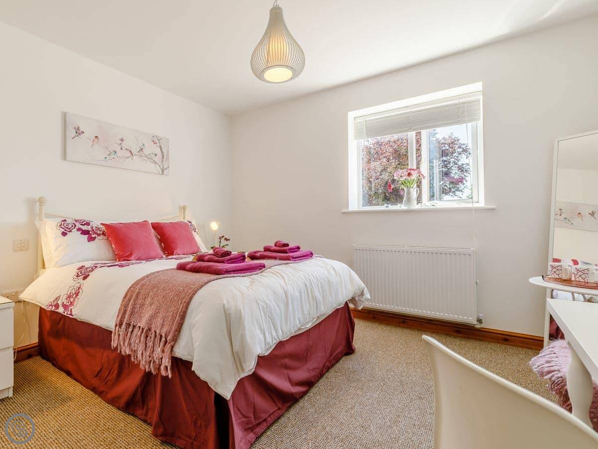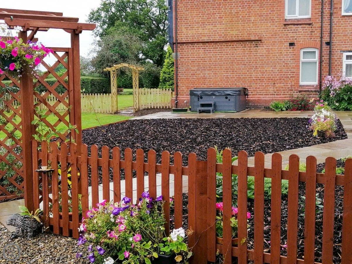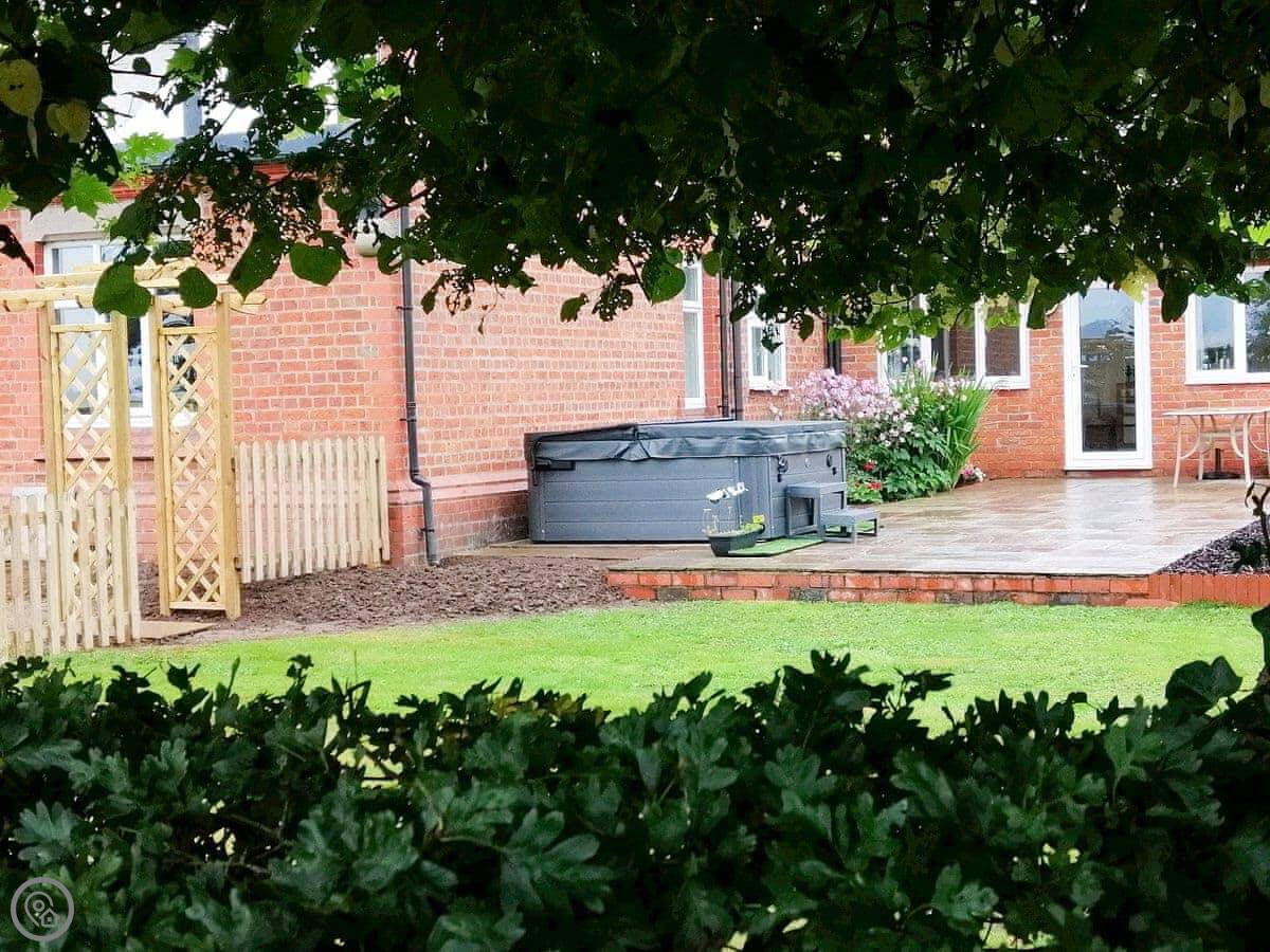 The garden is enclosed, which is good if you're bringing dogs. There's a hot tub and a barbecue. It has a 4 Star rating. It's comfortable and well-equipped. It's not overly fancy.