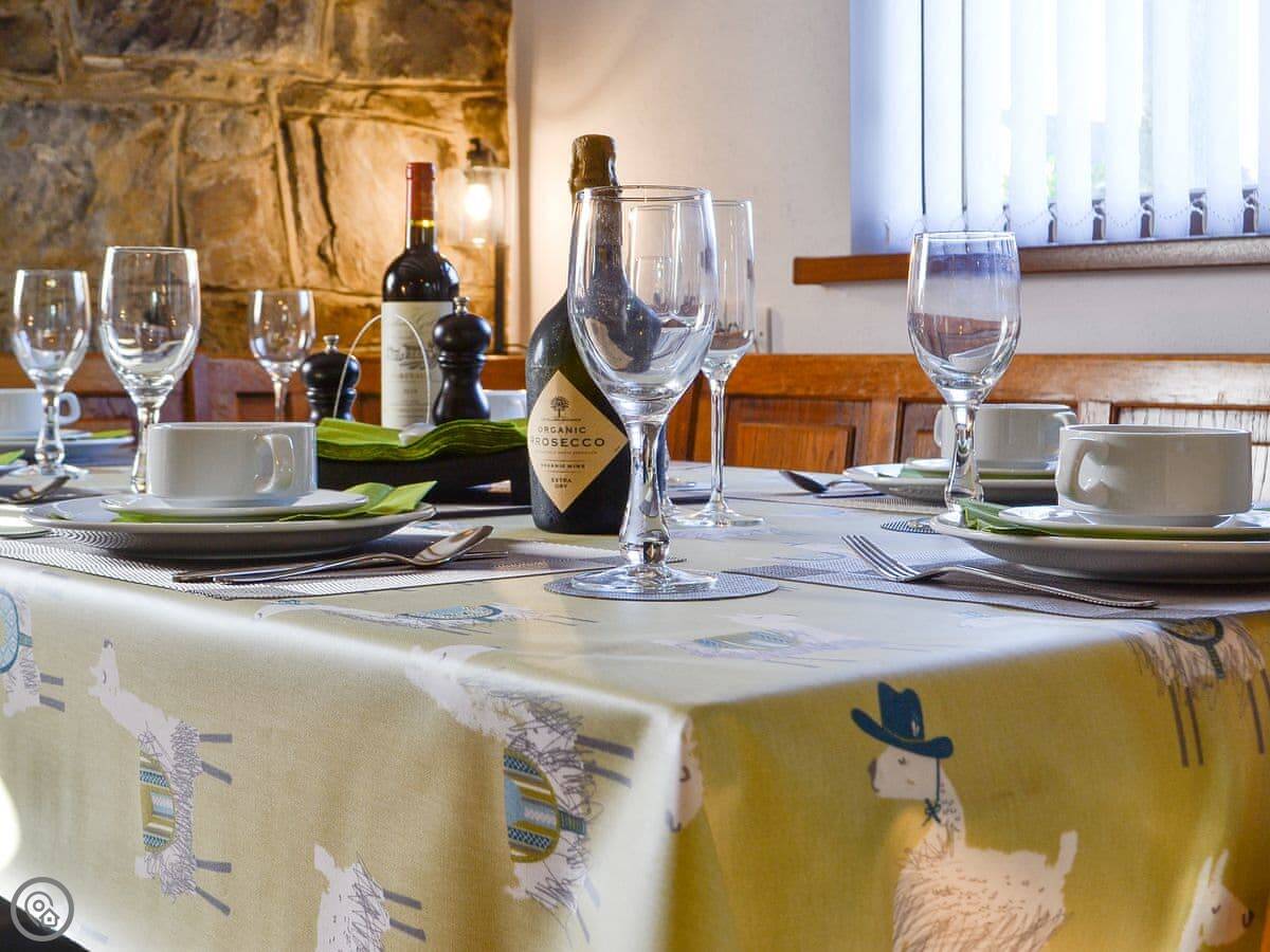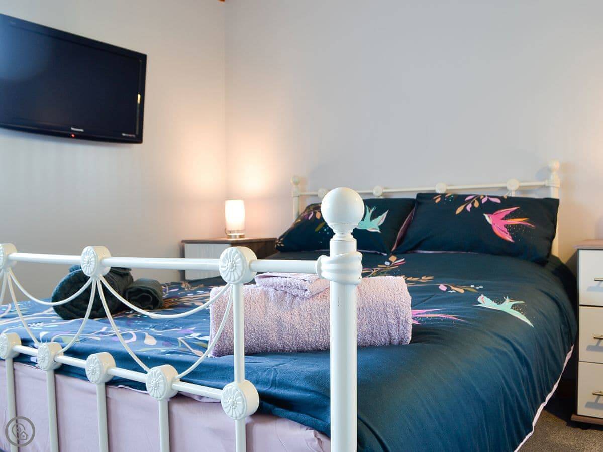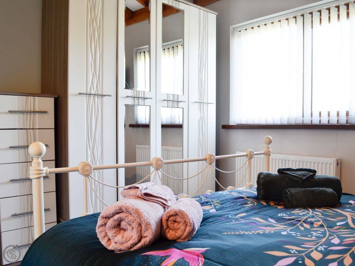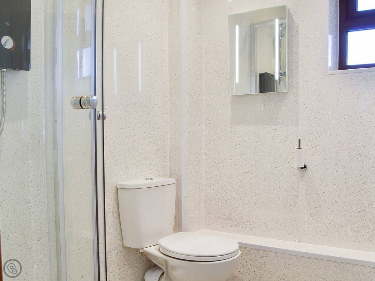 The main room is open plan, with the kitchen, dining, and lounge all together. There's an open fire in the middle of the living area. The kitchen has a dishwasher and a breakfast bar. The wifi works. You park off the road and there's a garage with a washing machine and freezer in it.