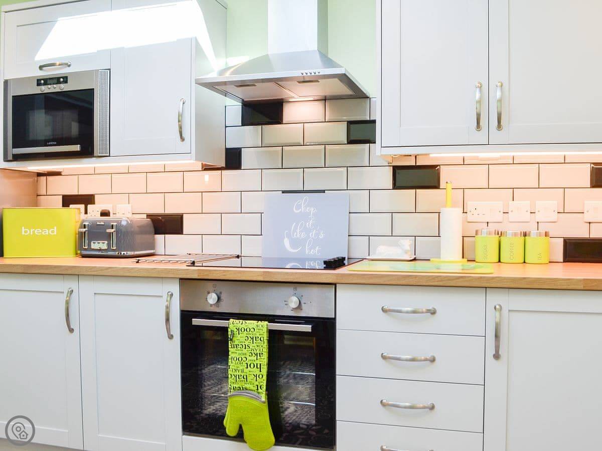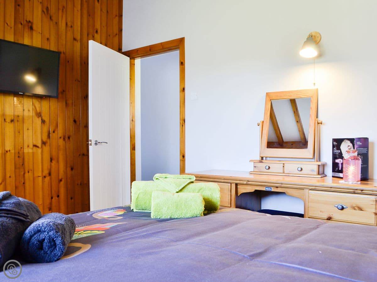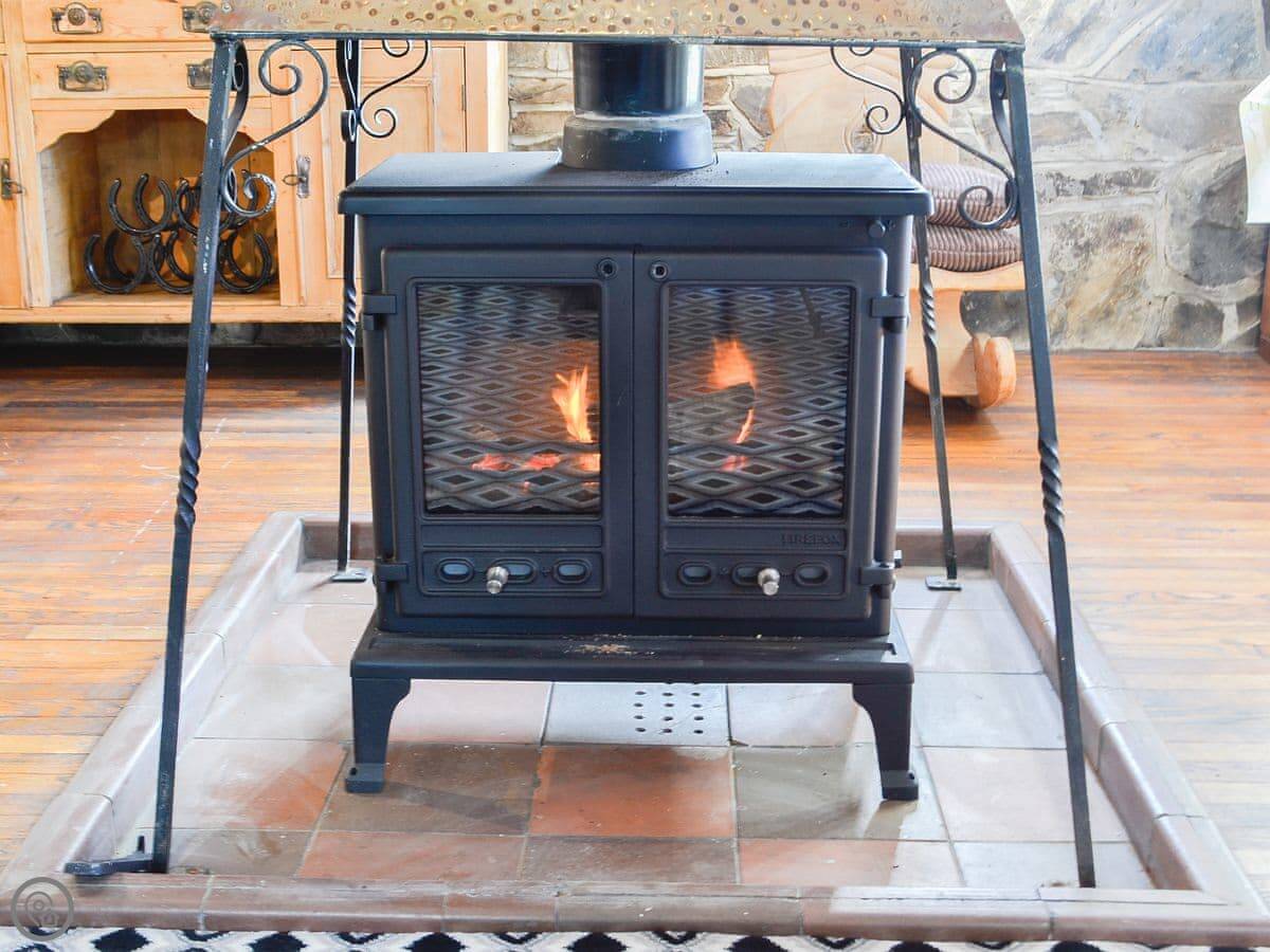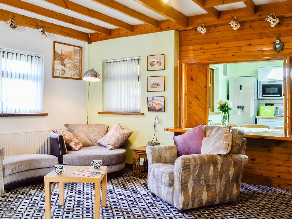 The main room is open plan, with the kitchen, dining, and lounge all together. There's an open fire in the middle of the living area. The kitchen has a dishwasher and a breakfast bar. The wifi works. You park off the road and there's a garage with a washing machine and freezer in it.