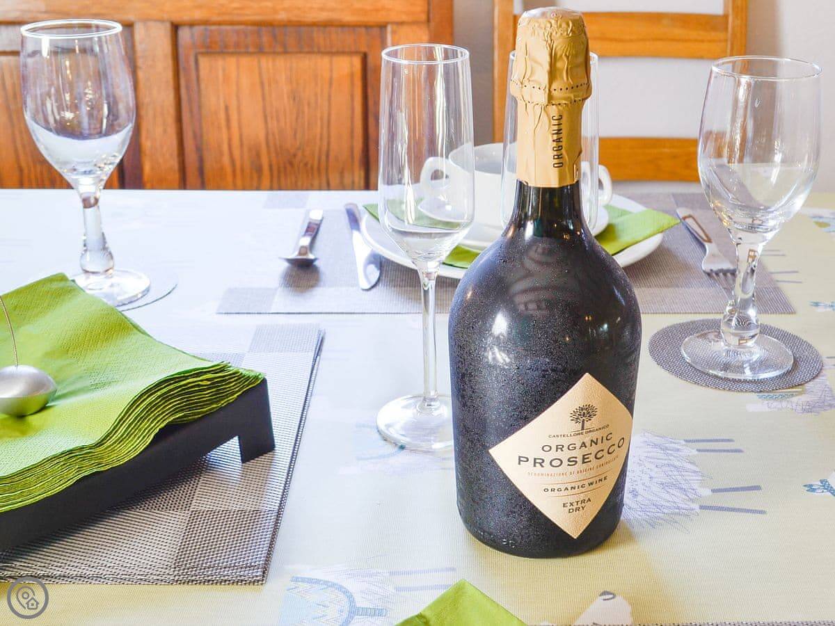 It sleeps eight, but it's a bungalow, so it's all spread out on one floor. There are four bedrooms. Two have king-sized beds, one's a twin, and there's a small snug with a day bed for two more. Two bathrooms, one with a bath and one with a shower.