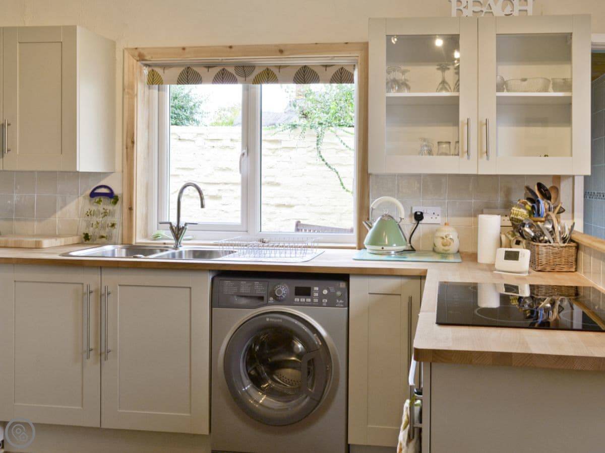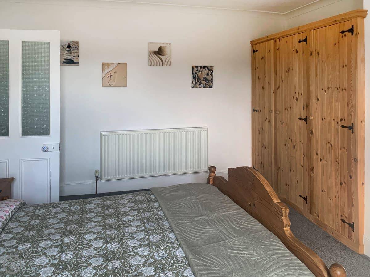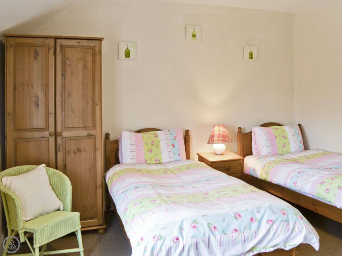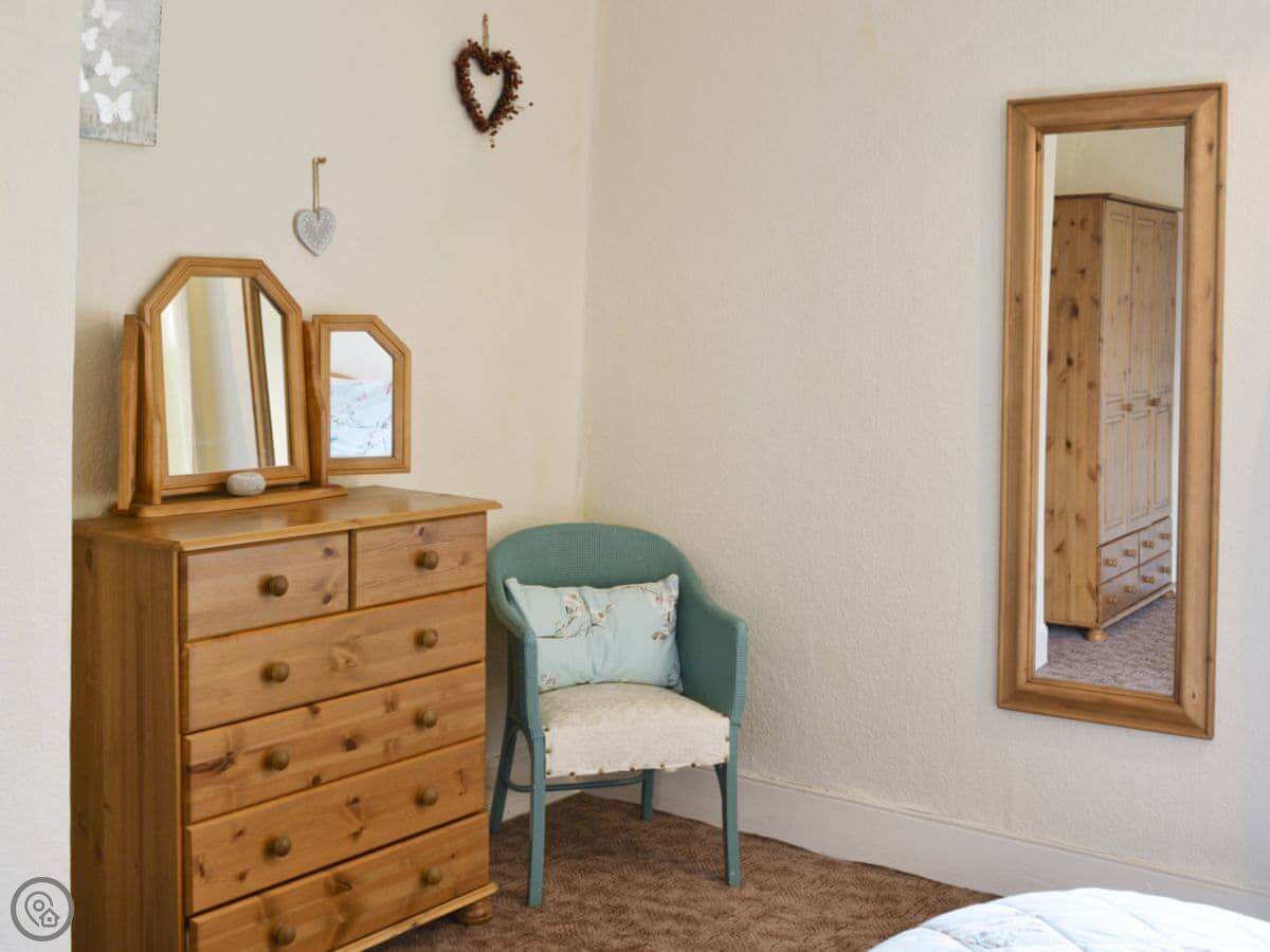 It sleeps four. Two bedrooms and a bathroom upstairs. It's a 4 Star place, which means it's comfortable and everything works. It's got a washing machine, Wi-Fi, and parking on the drive. Towels and bedding are included.