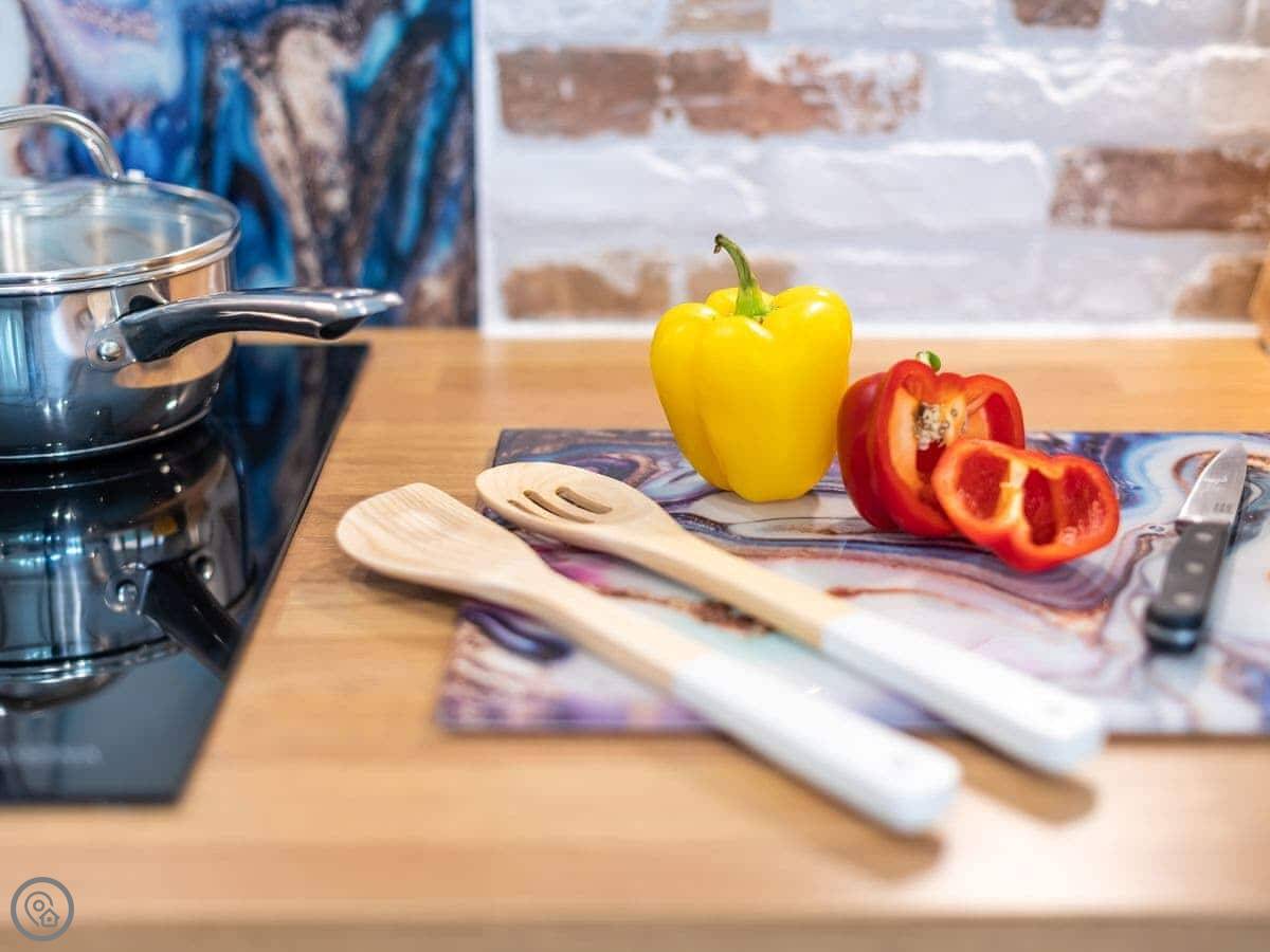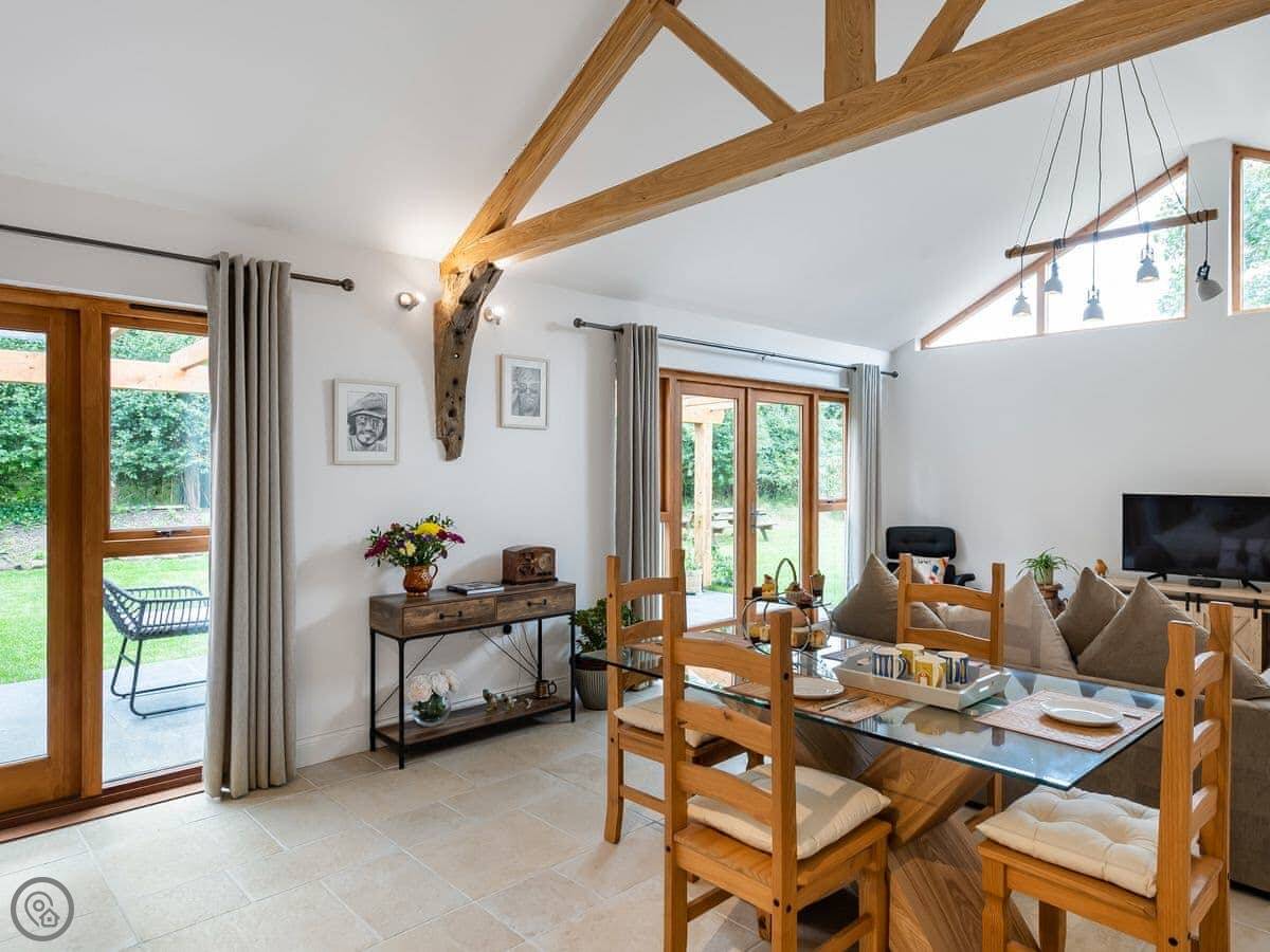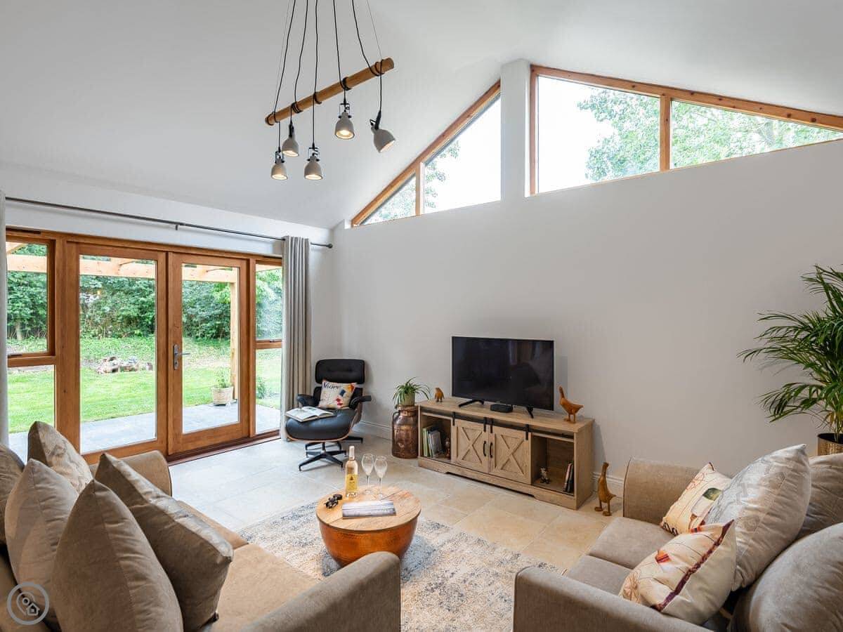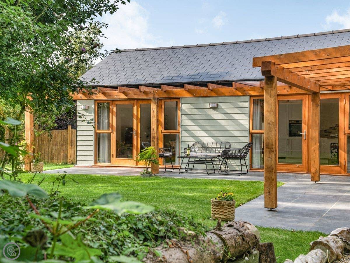 It’s done up to a 5 Star standard. It’s modern inside, open plan with high ceilings. Two bedrooms, both with their own ensuite shower room. Sleeps four.