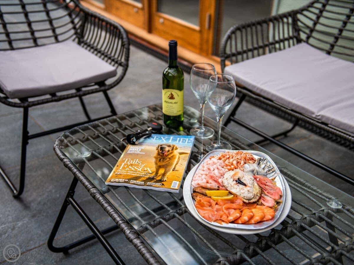 The coastline is about a ten-minute walk. The beaches are quiet, mostly sand and shingle. You can walk for miles from the door. The Mersea Oyster Fishery is nearby if you like seafood.