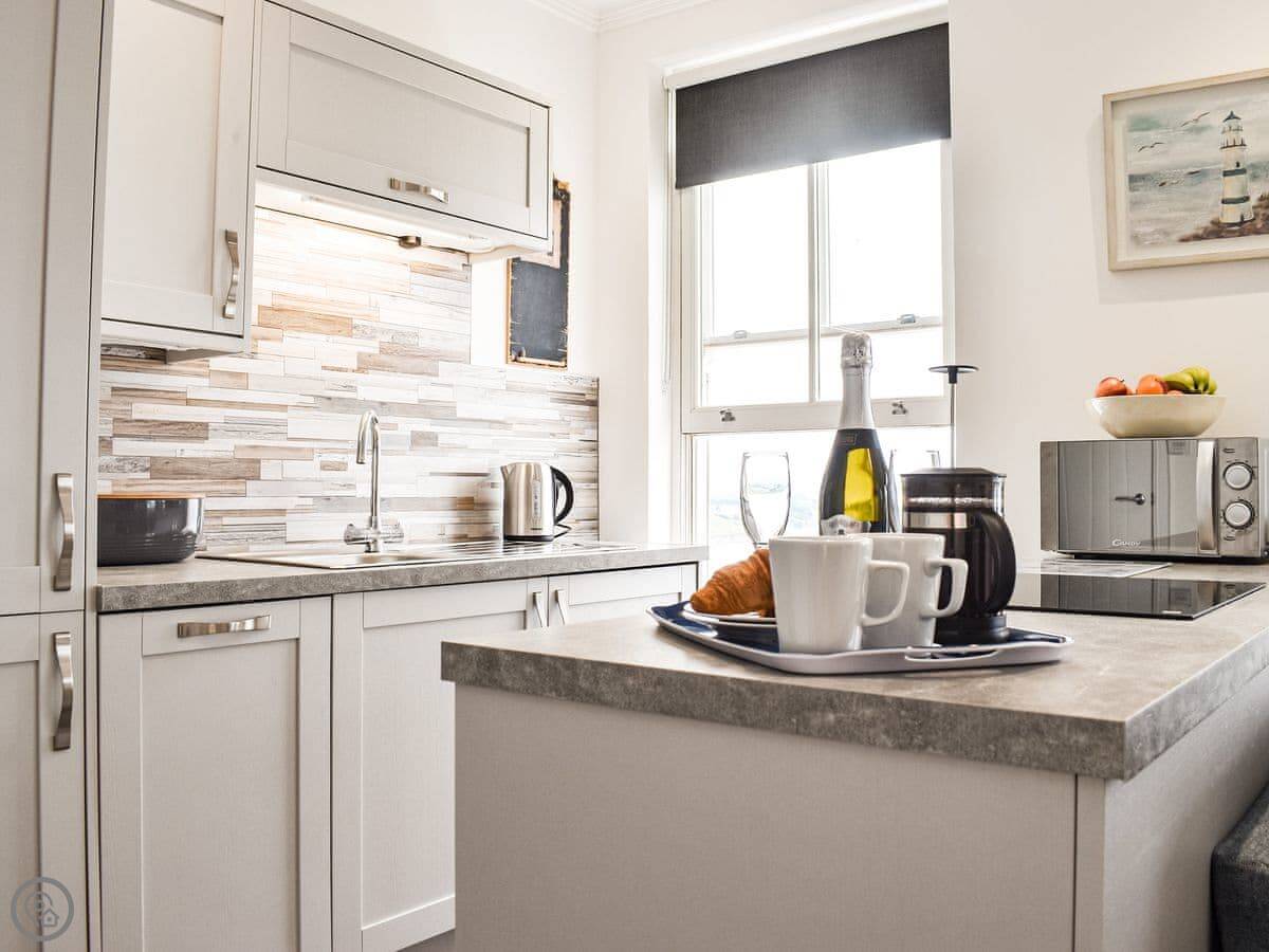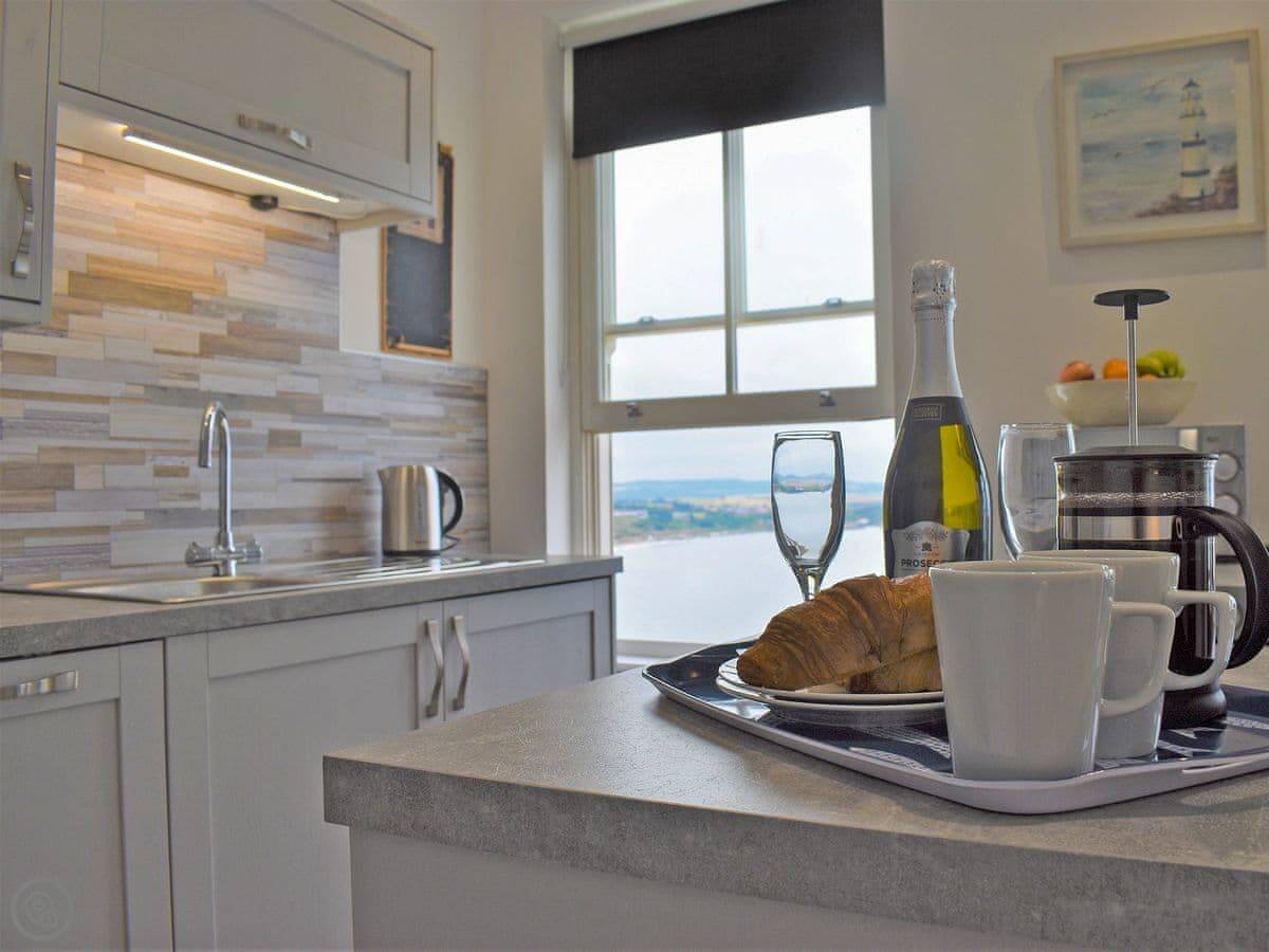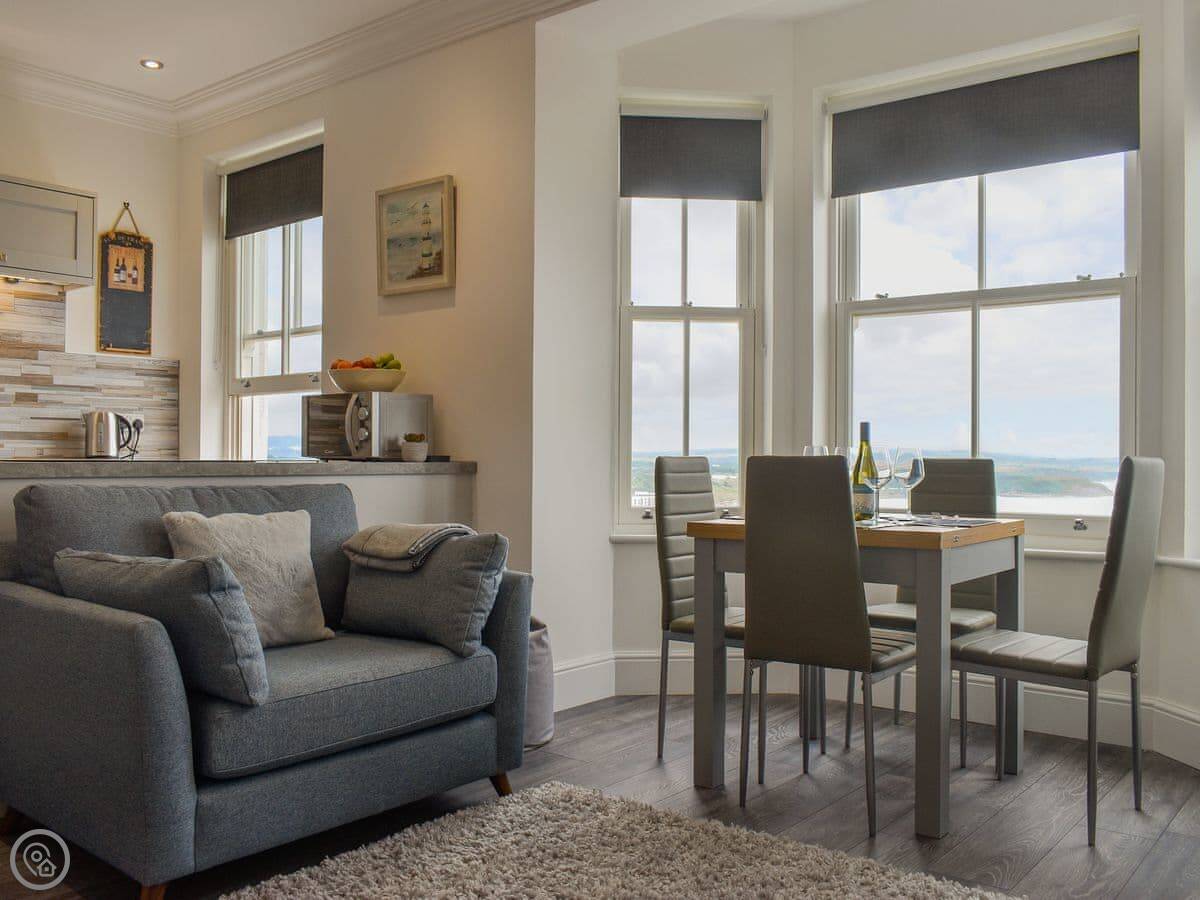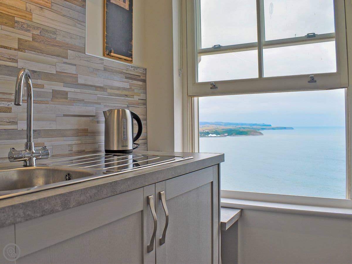 The main thing is the view. You look right out over North Bay. You can see the castle on the cliff and the curve of the beach. On a clear day you can see for miles. You might see surfers.