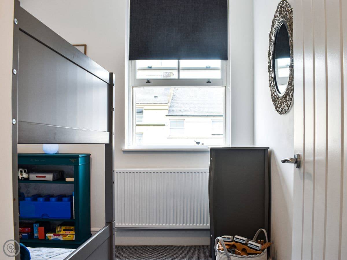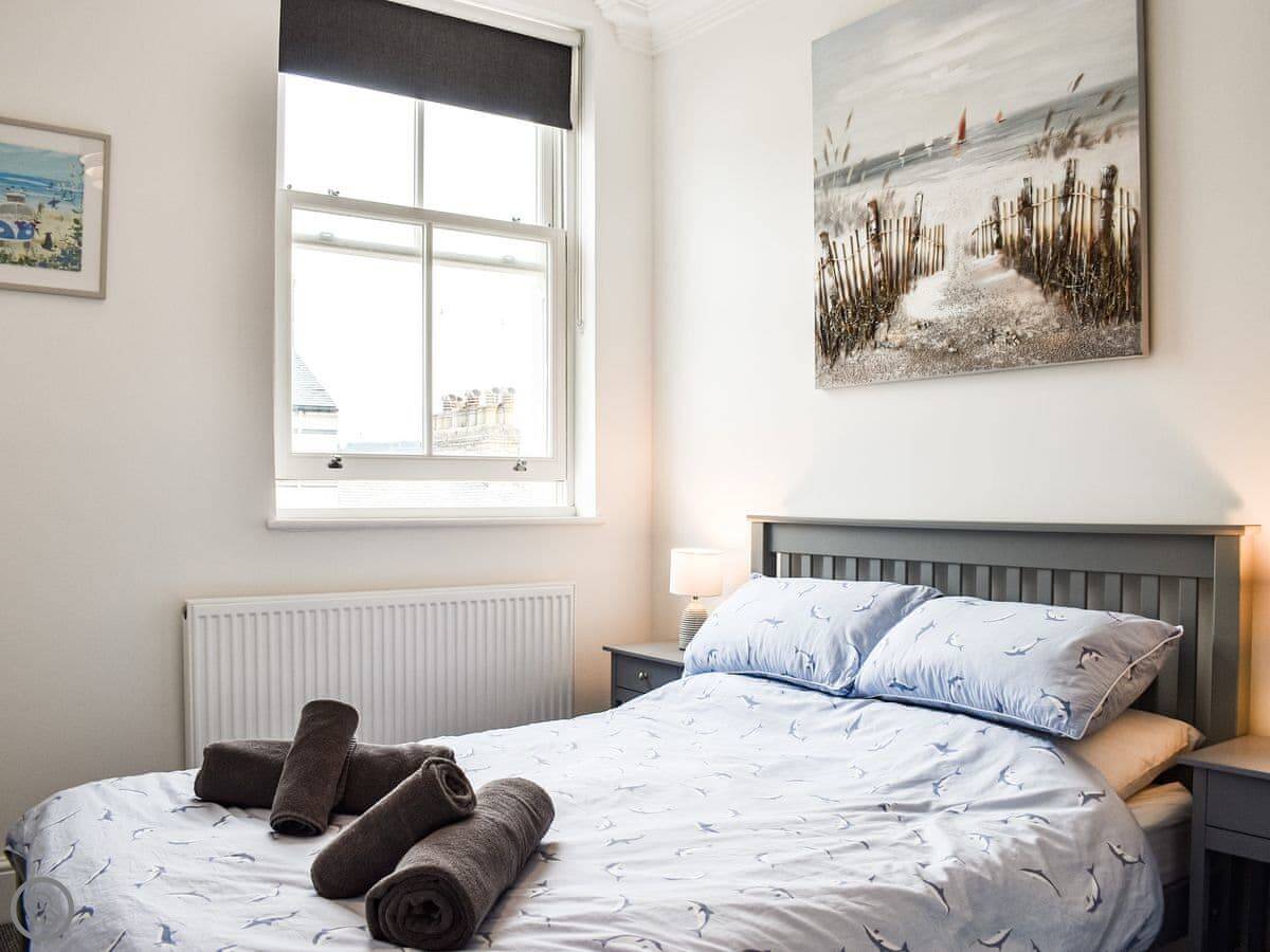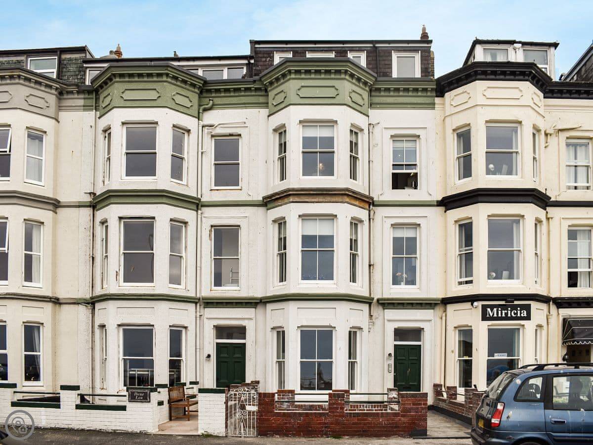 Sea View Sanctuary is a flat in Scarborough. It's on the first floor, so it's just the one flight of stairs up from the street. You get the view from the big front window in the living room.