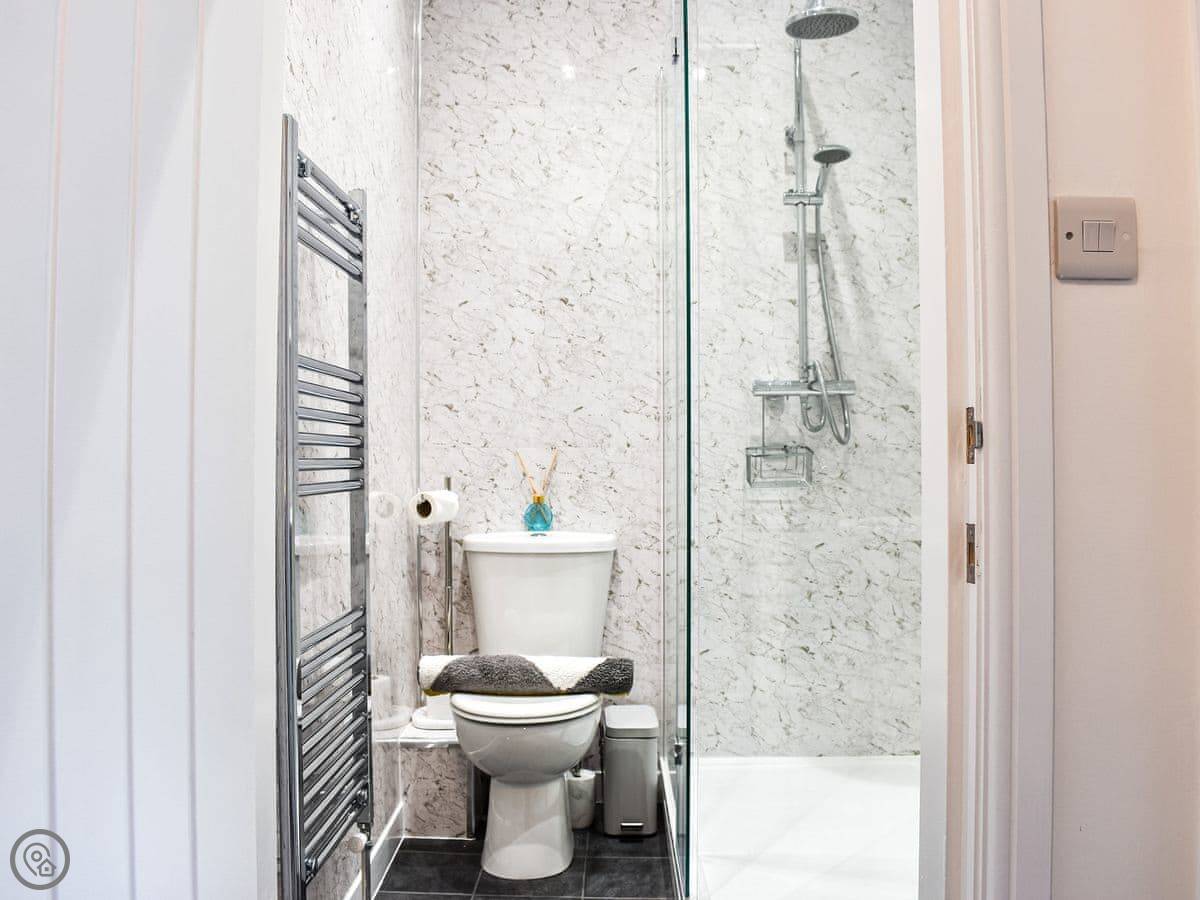 It sleeps four. Two bedrooms and one bathroom. The bathroom has a big walk-in shower. It's got a 4 Star rating. It's clean and modern.