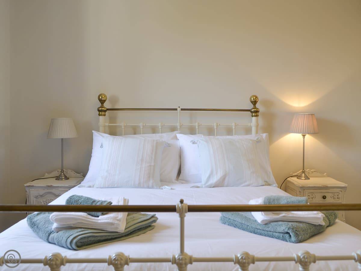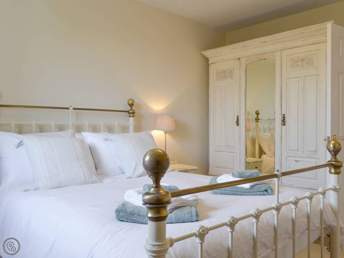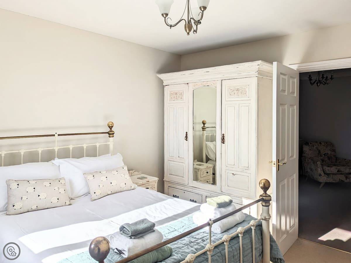 The property is light and spacious with a mix of contemporary and antique furnishings. Step inside to a welcoming porch and open the door into the centre of the home, a beautiful open-plan kitchen and dining area with large windows framing stunning views. Through the hallway you’ll find four beautifully appointed and luxuriously comfortable bedrooms, comprising of two king-size bedrooms, a double bedroom and a cosy twin bedroom, complete with white company bedding and traditional cast-iron bed frames. There is also a bright and open living room, a beautiful inviting space with soft sofas, an open fire and a smart television.