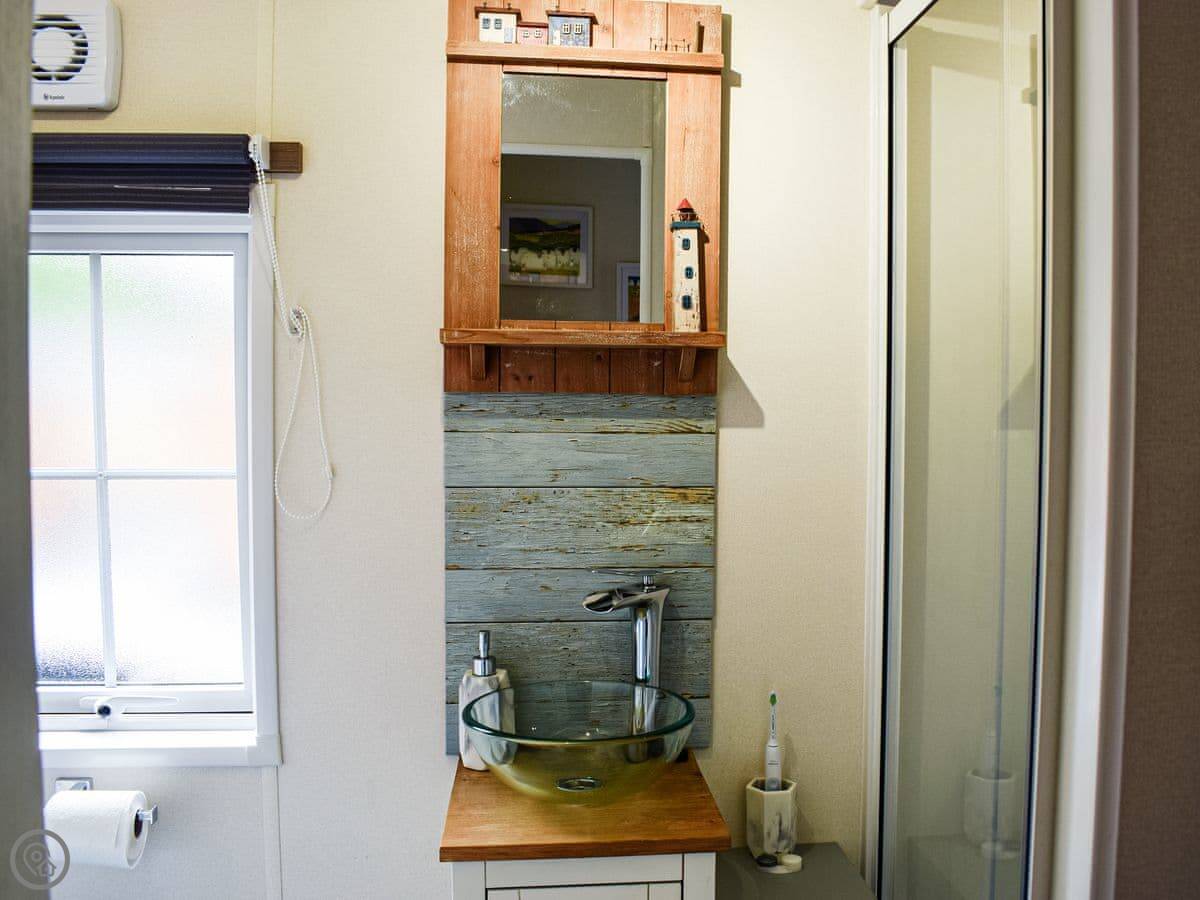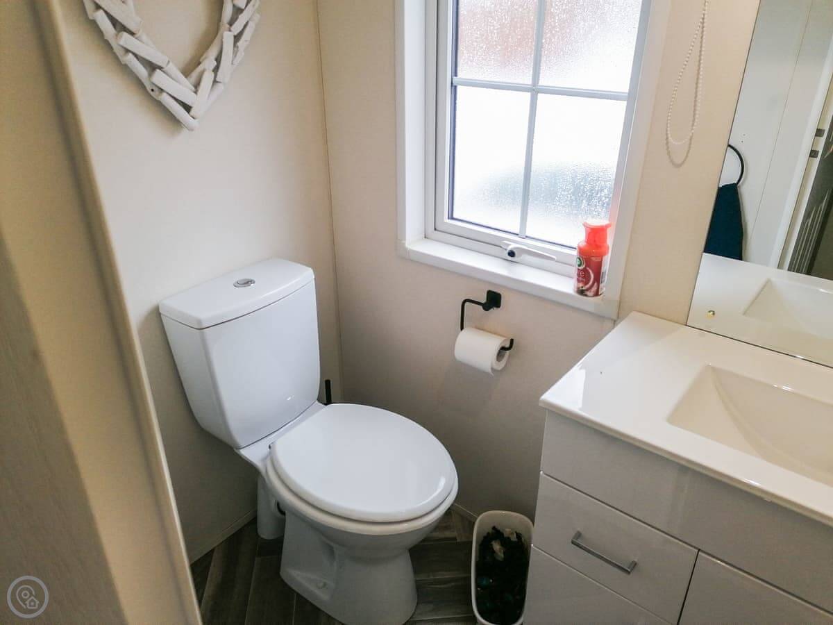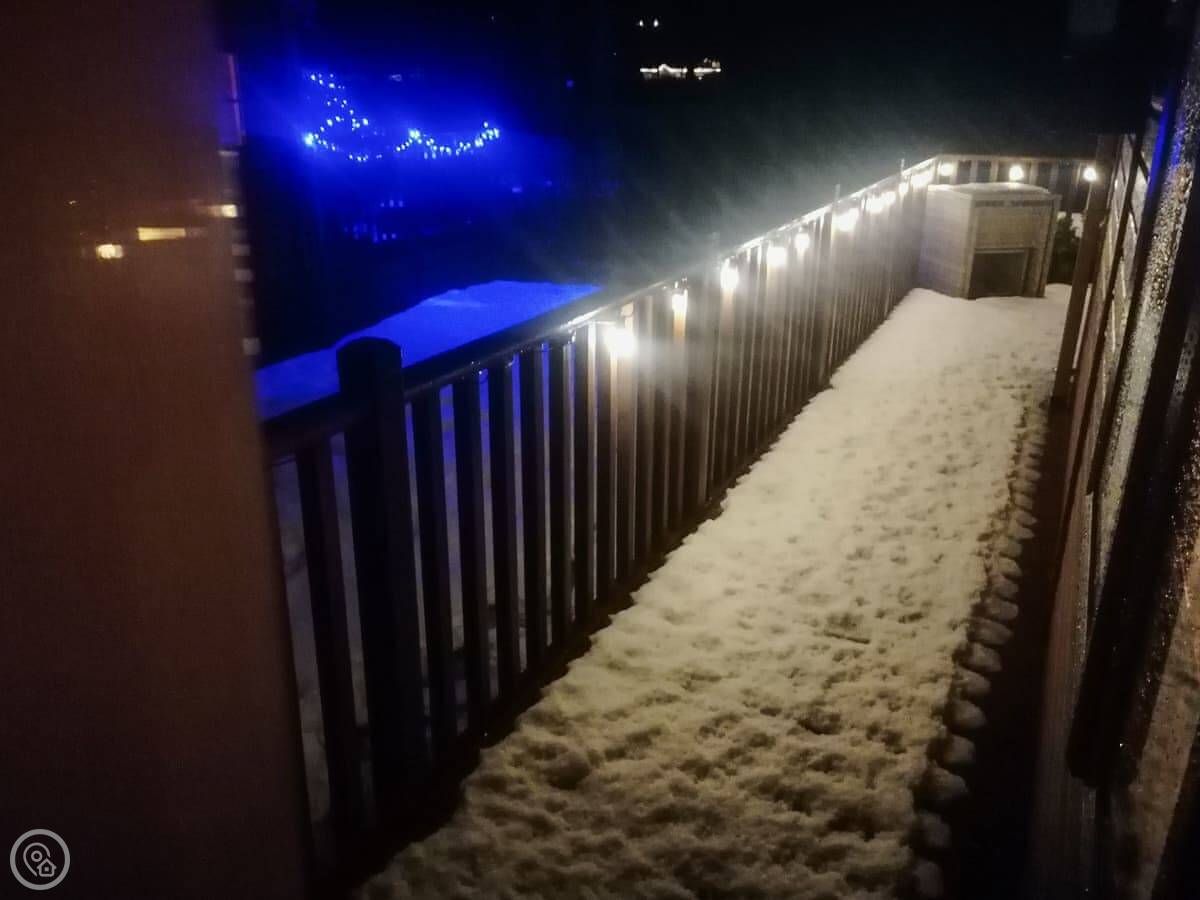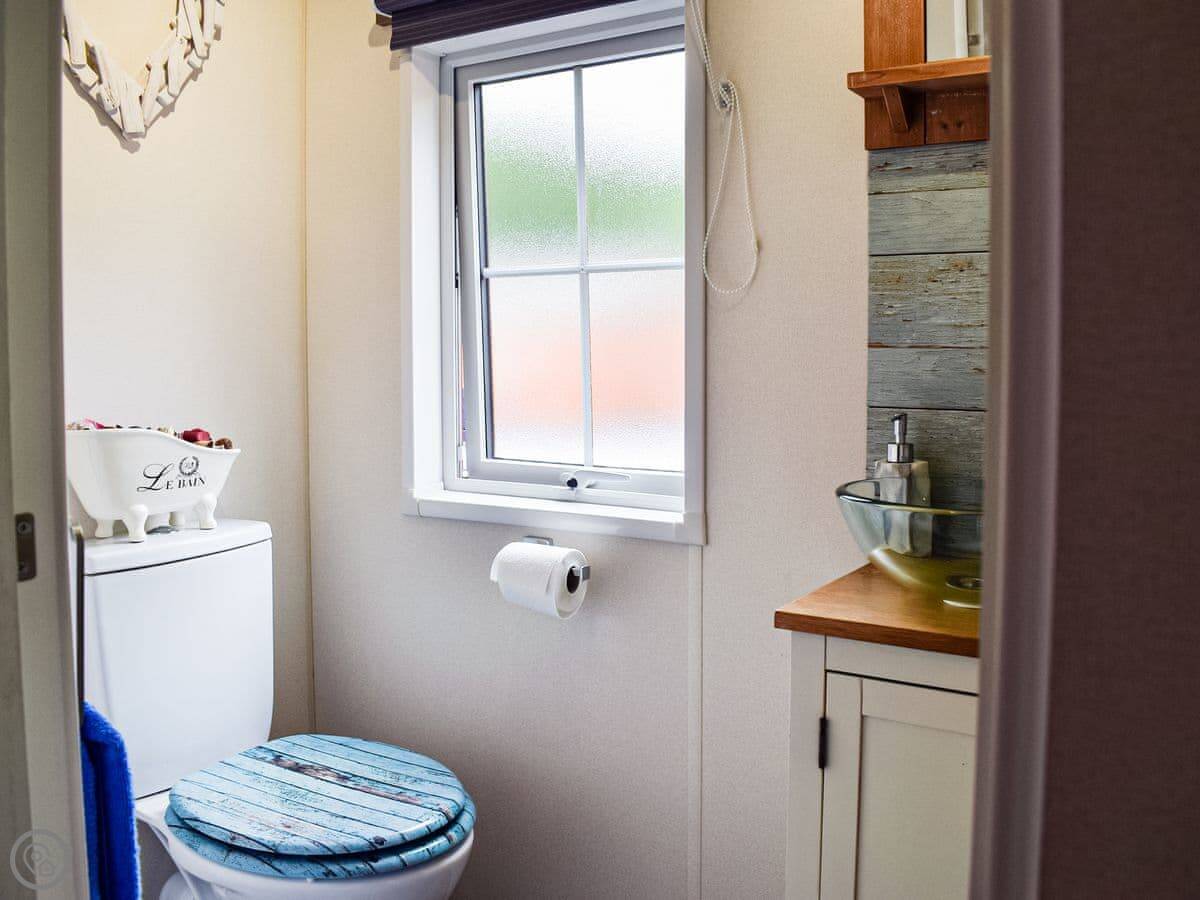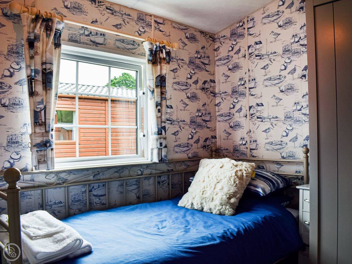 It sleeps three, in two bedrooms. There's one shower room. It's got a 4 Star rating. It's clean and comfortable. The living area is open plan with French doors onto the deck.
