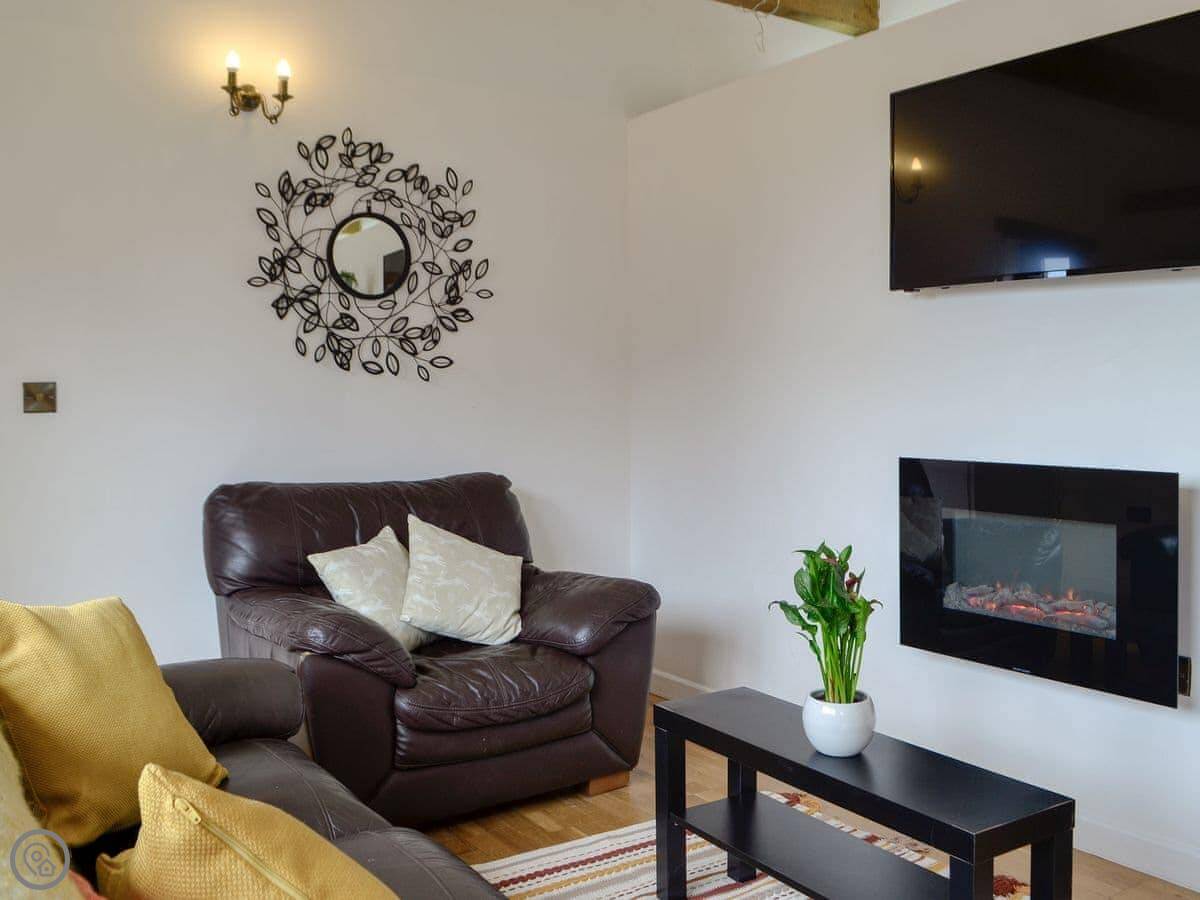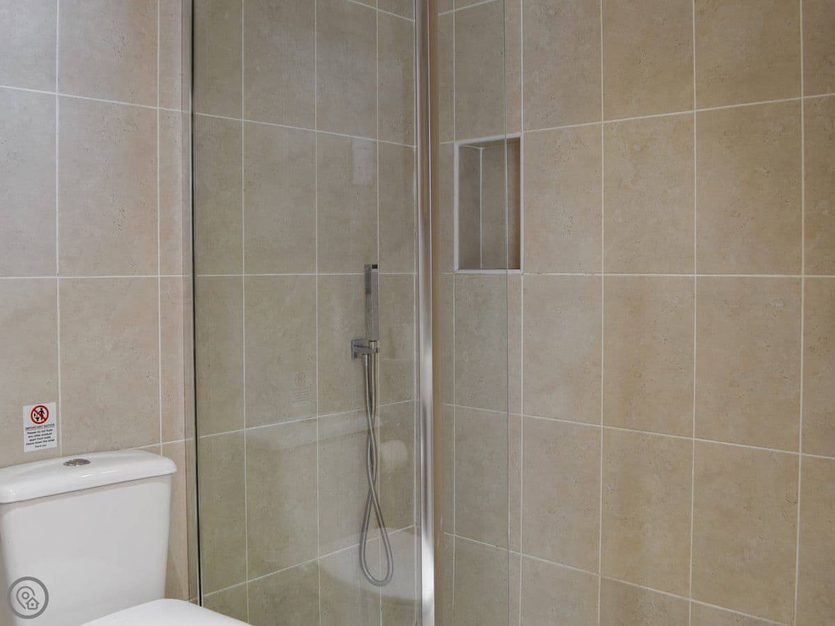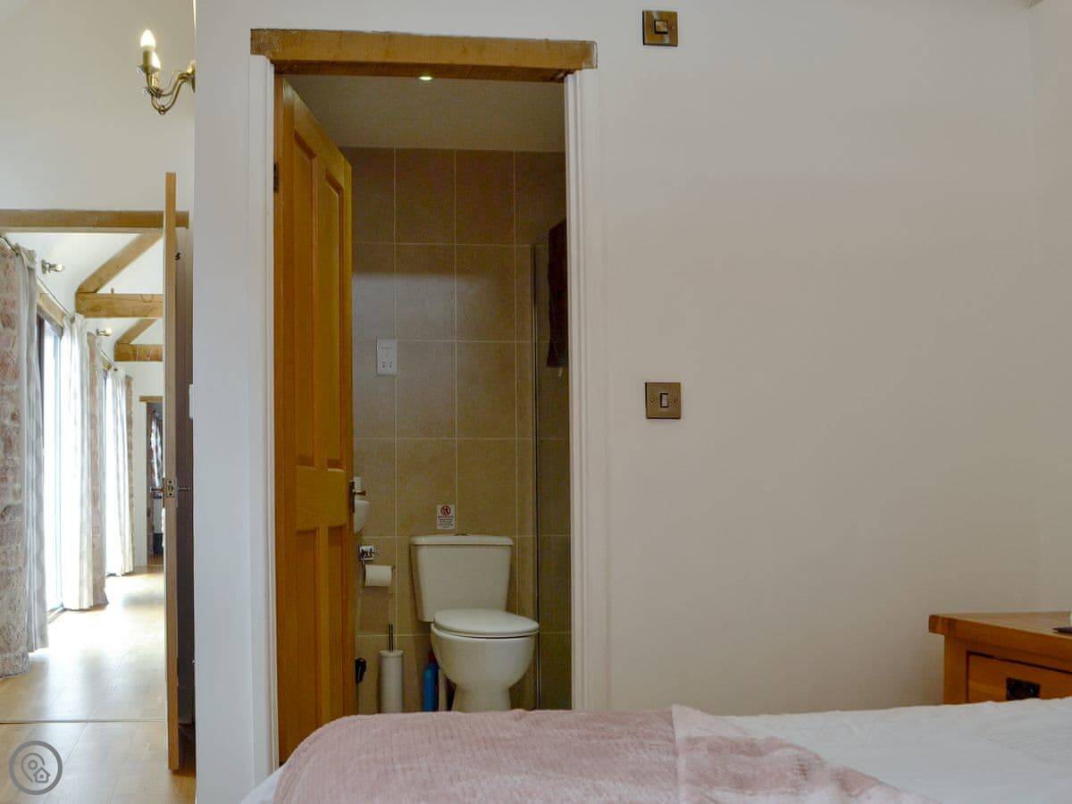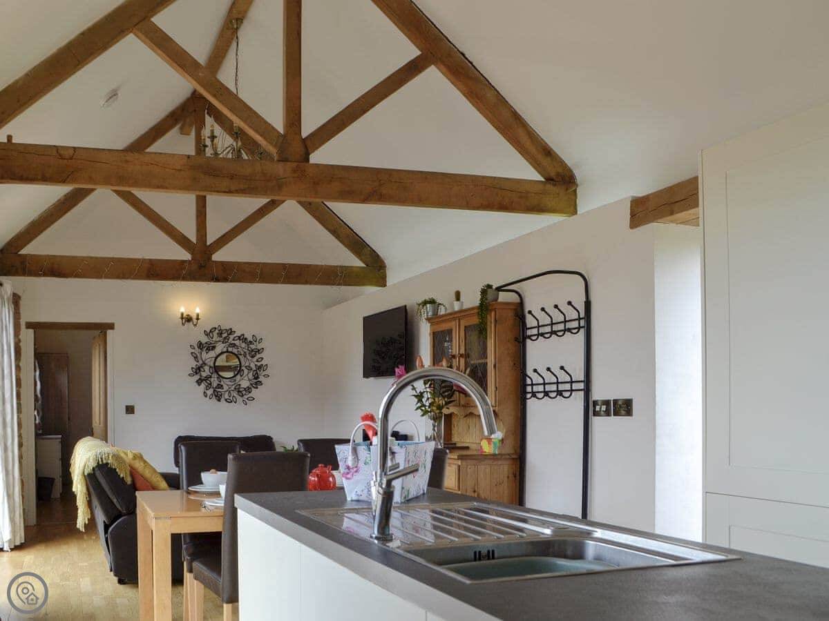 It sleeps four. Two bedrooms, both with their own shower room. One bedroom has a super king bed that can be split into twins. It's got a 4 Star rating. It's all on the ground floor, with underfloor heating. The living area is open plan, with a kitchen, dining space, and a sitting area with a smart TV.
