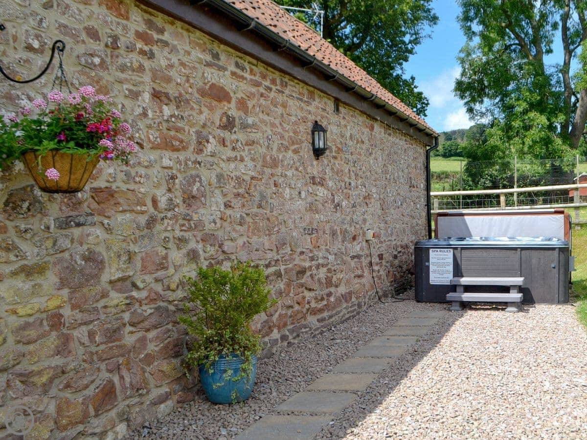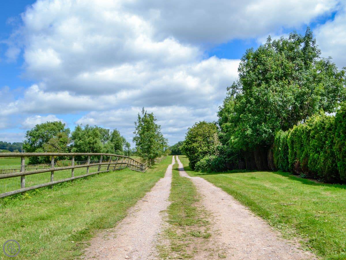 Outside, there's seating and a private hot tub. There's an enclosed paddock which is useful if you're bringing dogs. You can park two cars. The property is on the A48, the main road between Chepstow and Gloucester. You'll hear some traffic.