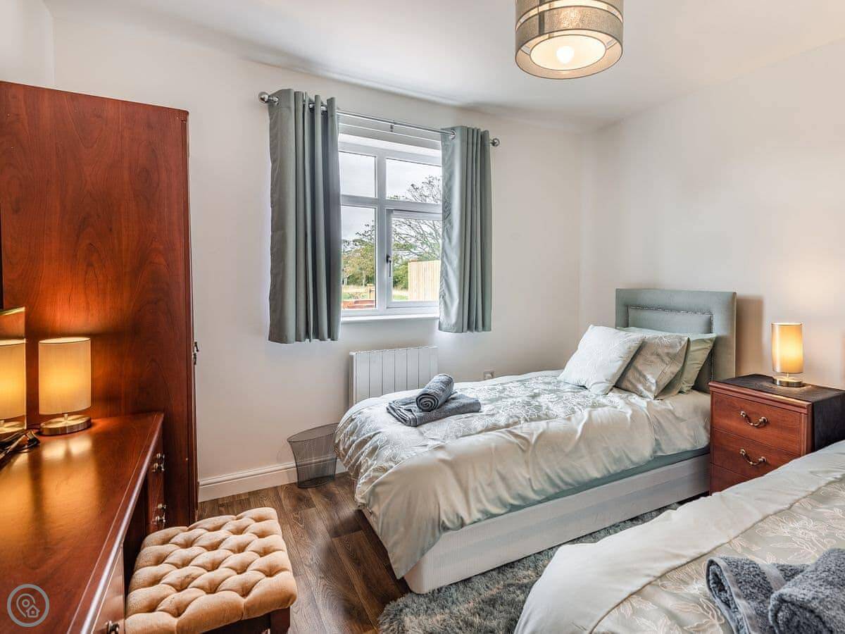 It sleeps four. Two bedrooms, one bathroom. It's got a 5 Star rating, which means it's well-fitted and comfortable. Everything's on one level and the doorways are wide, so it's quite accessible if you need that.