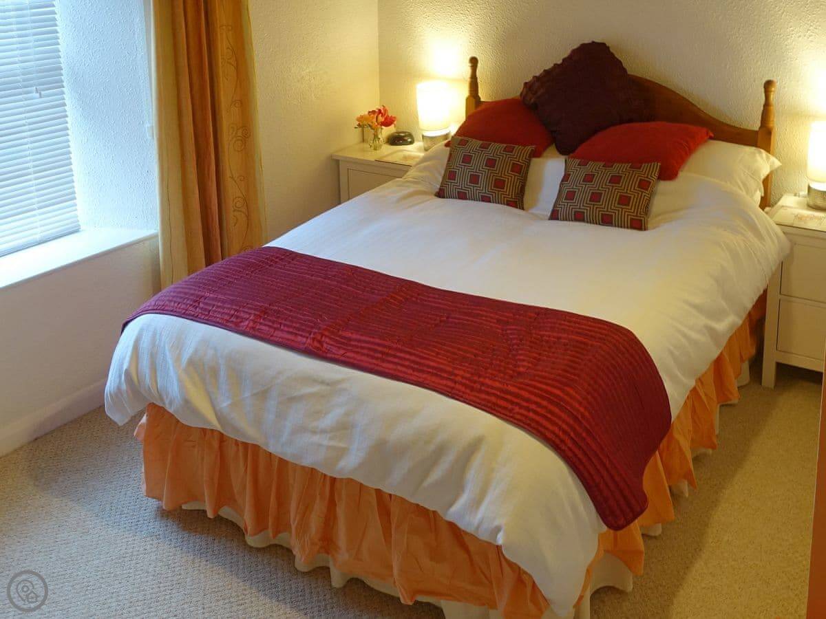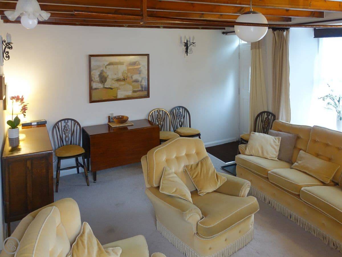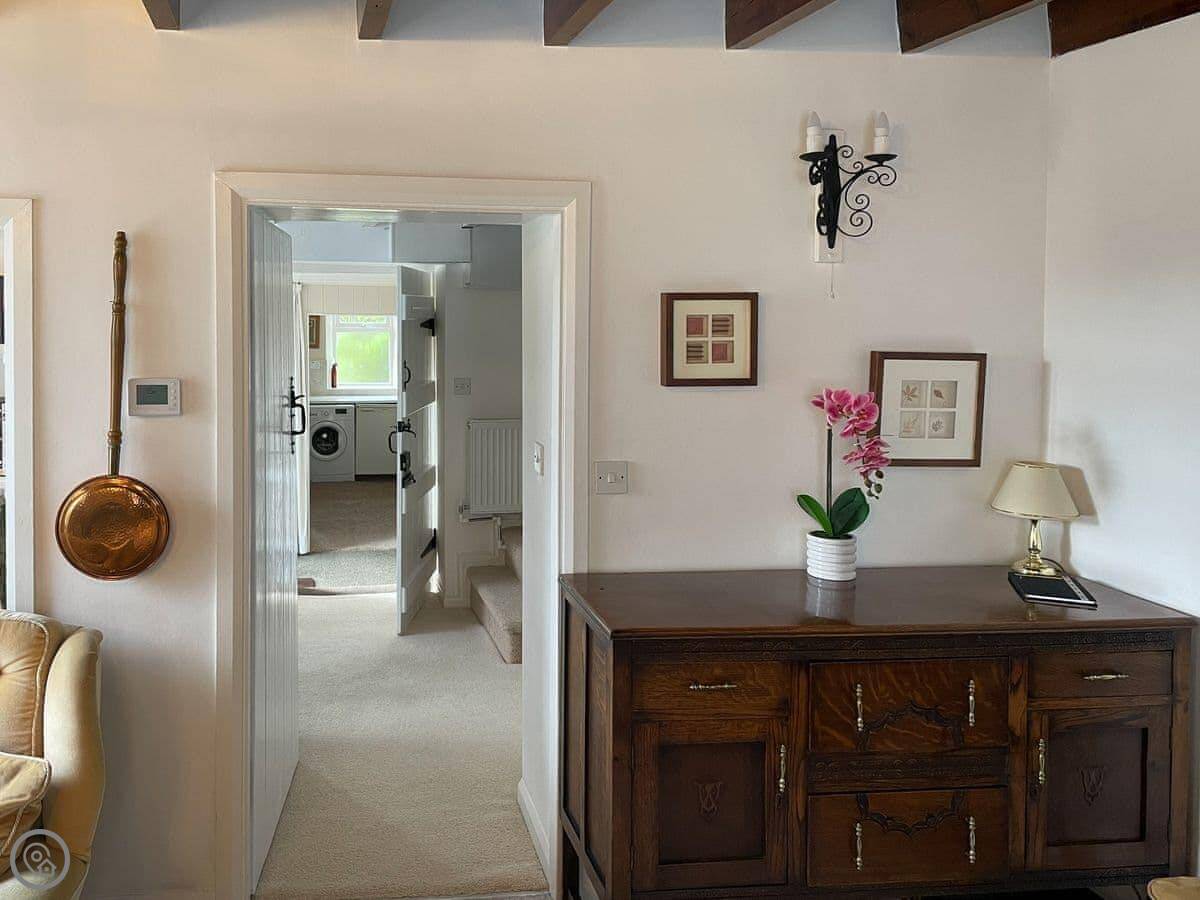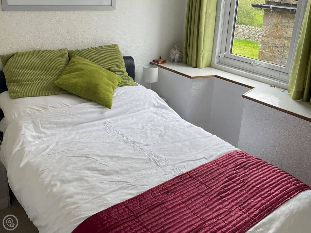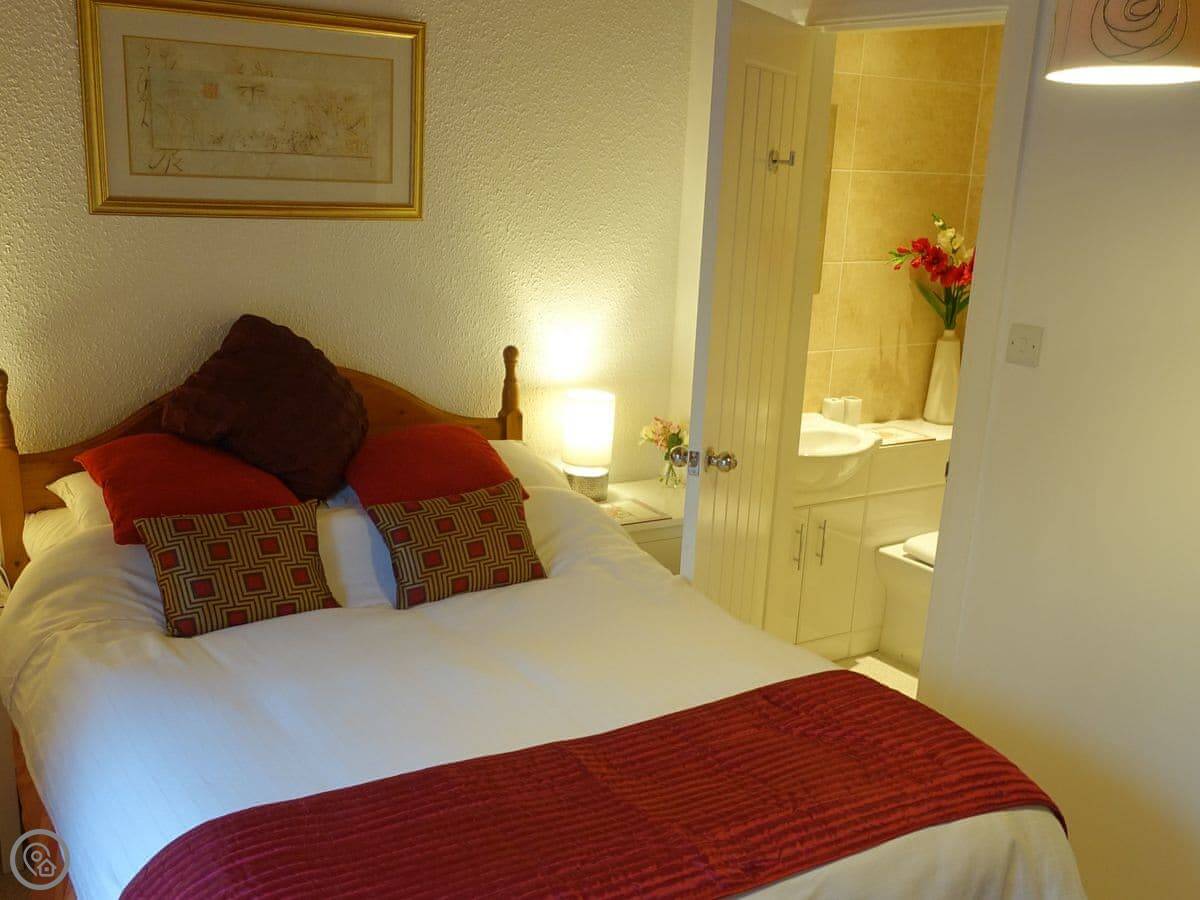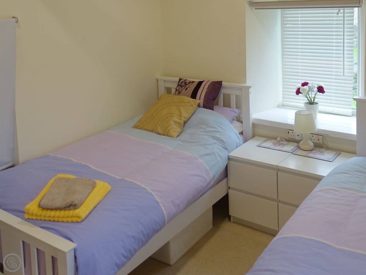 It sleeps six in three bedrooms. There are two bathrooms, one is an en-suite. The third bedroom is in a linked barn across a little porch. That barn room has twin beds and its own bathroom. It's fine for older kids or another couple, but it's separate from the main cottage bedrooms, so maybe not for very young children on their own.