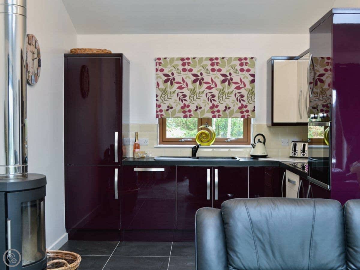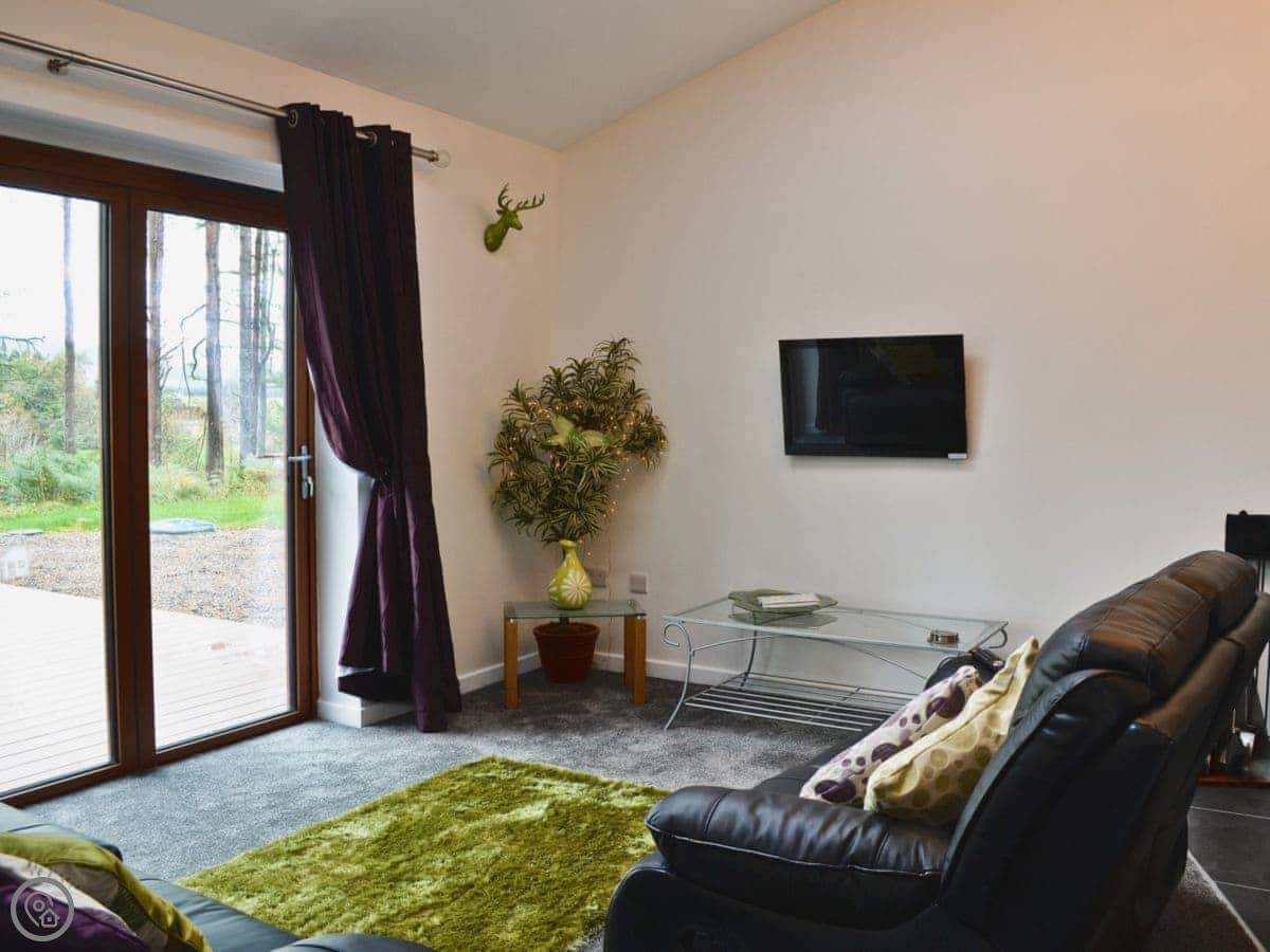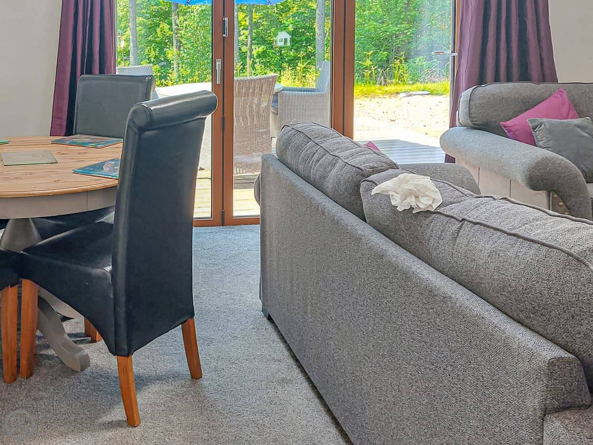 The lodge is on its own bit of land, with other lodges nearby but spaced well apart, so it's private. The whole place is set in eight acres of woodland.