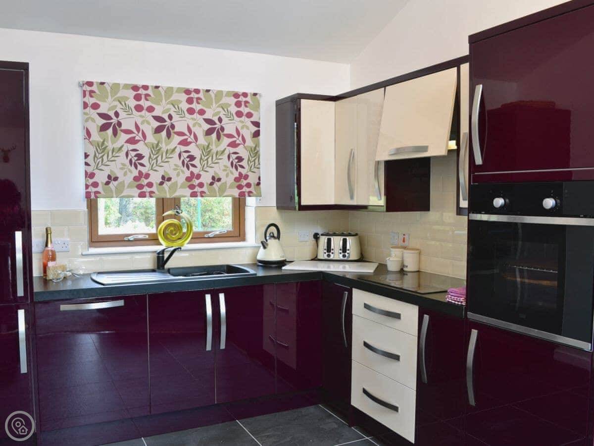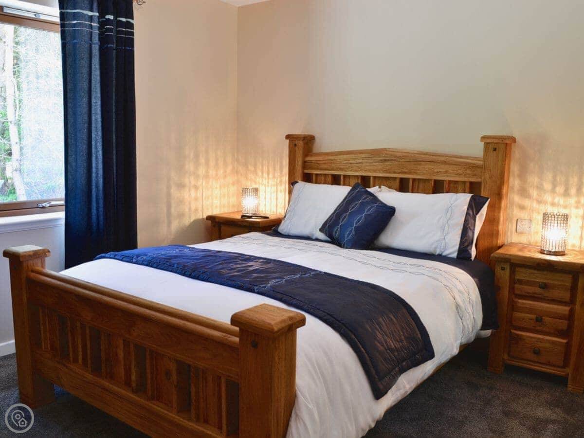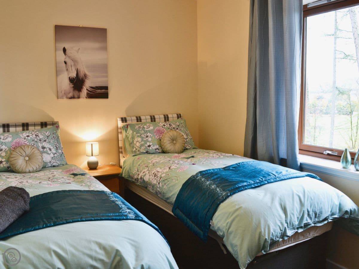 The lodge is on its own bit of land, with other lodges nearby but spaced well apart, so it's private. The whole place is set in eight acres of woodland.