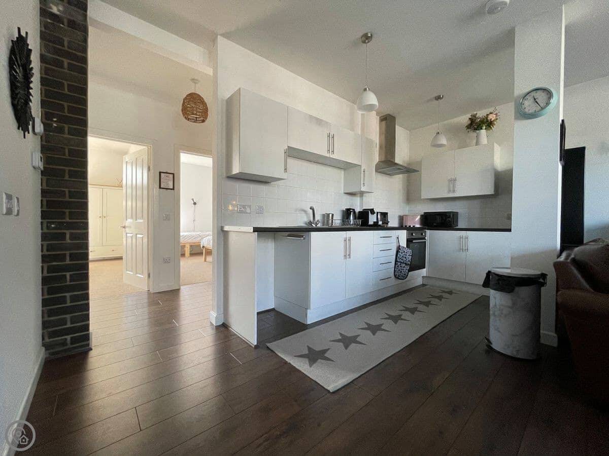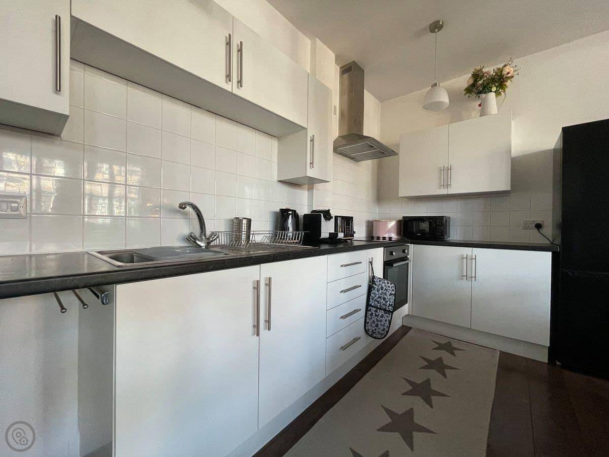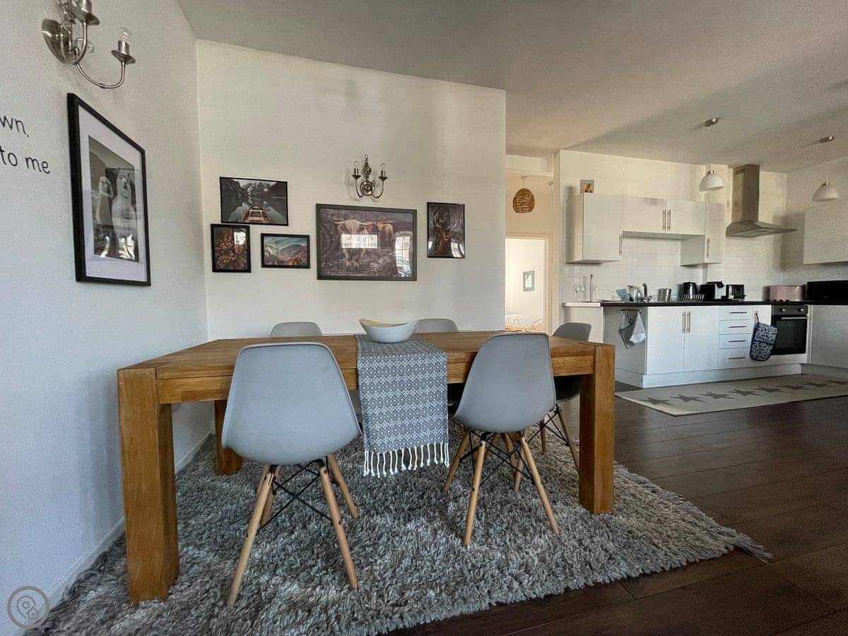 Seafield Lodge is a fantastic two-bedroom ground floor apartment situated in an iconic local building in the centre of Grantown-on-Spey, Cairngorms National Park. The accommodation is finished to a very good standard and offers great open-plan living. The living/dining/kitchen benefits from an enormous amount of natural light pouring in from the front of the house. The feature fireplace in the open-plan living space is a real treat and you’ll enjoy lighting it when you return from long days out exploring in the national park.