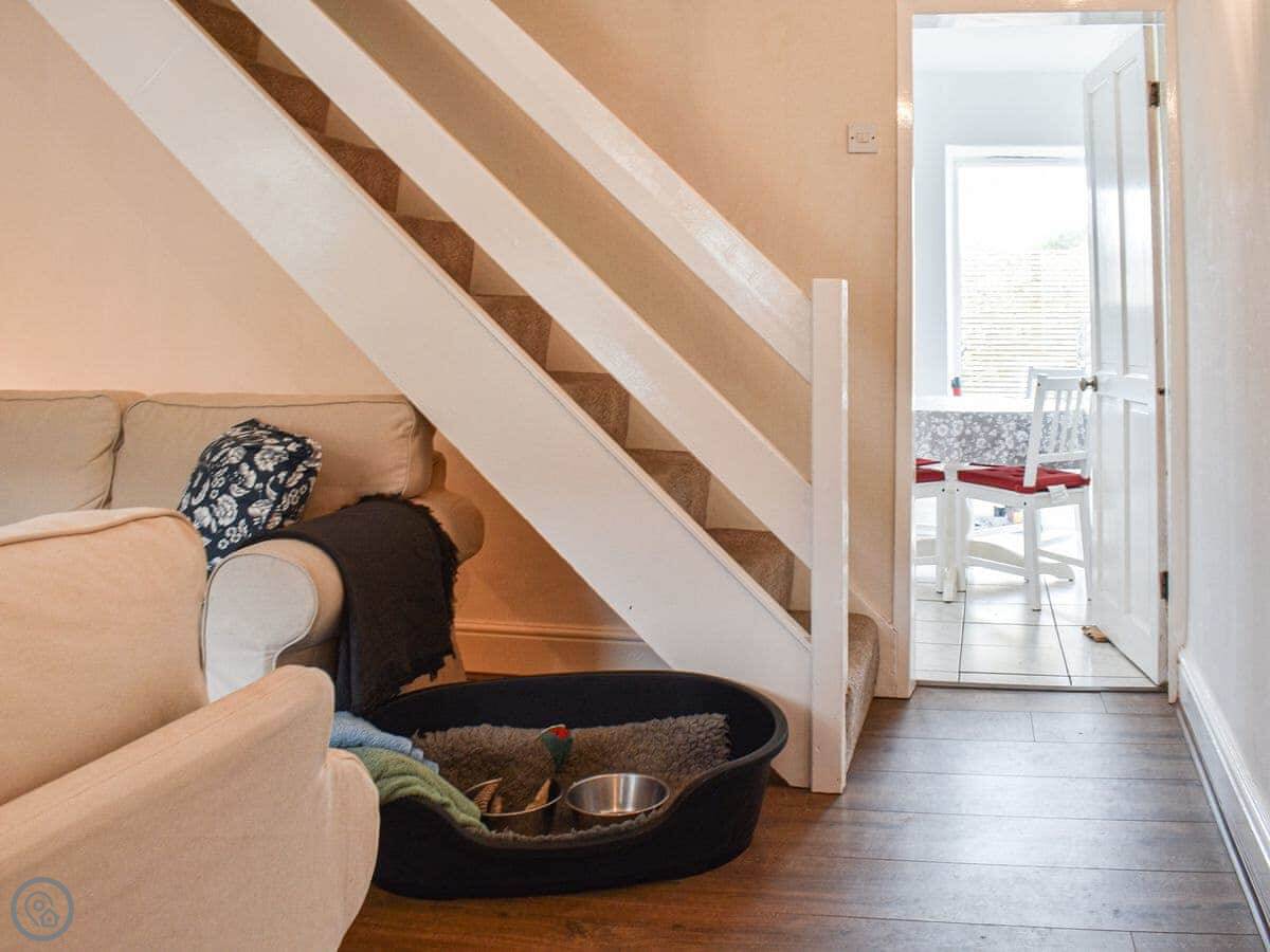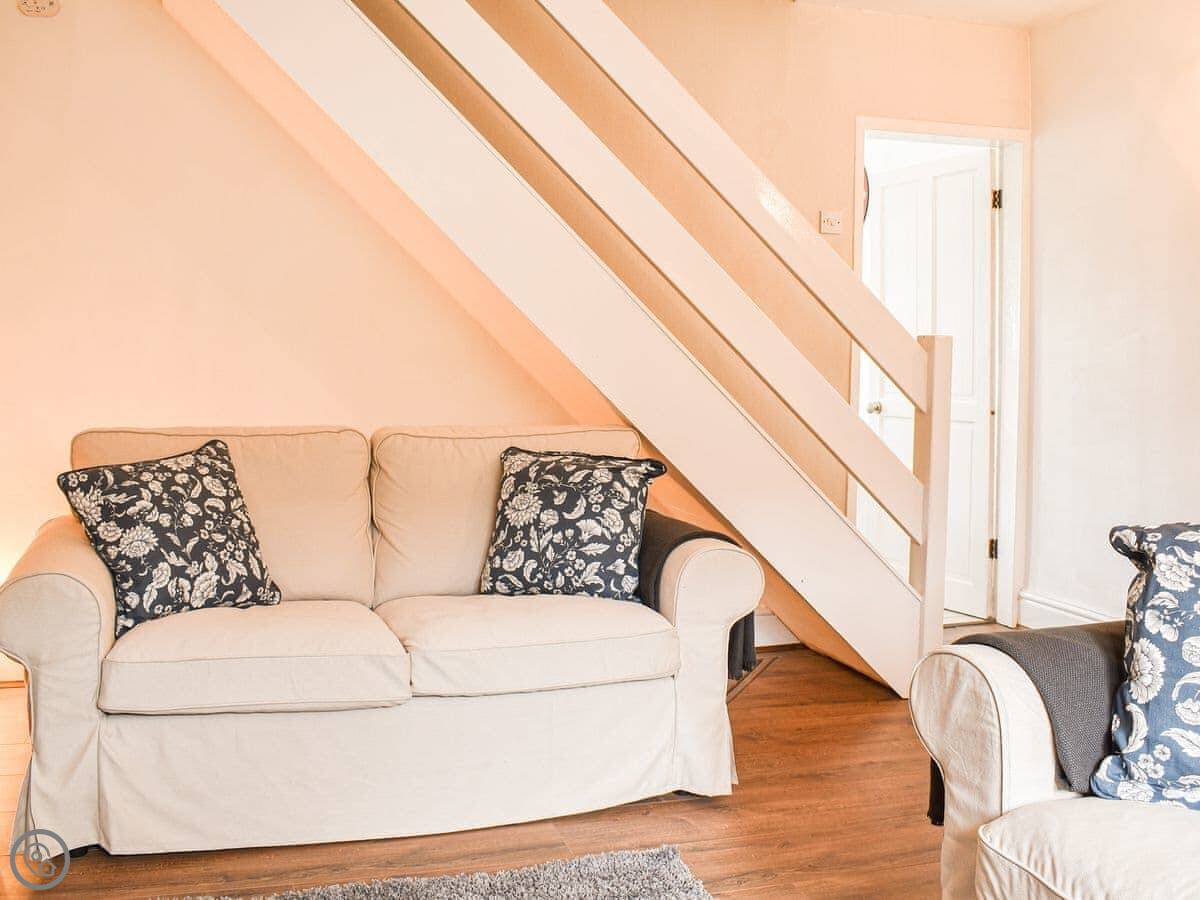 It sleeps five. Three bedrooms and one bathroom. It’s got a 4 Star rating, so it’s comfortable and well-equipped. The stairs to the top floor are a bit steep, just so you know.