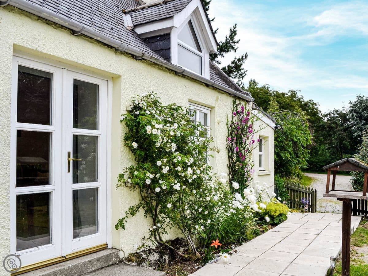 Tucked away down a private track is Corrennie School Cottage – a delightful detached single-storey stone property in a mellow cream hue, with roses round the door – just beautiful! Delightfully sheltered, there is a pretty private garden to the front, accessed from the French doors in the living room which lead onto a patio and lawn with table and chairs for al fresco meals. Inside, the smart contemporary colours are complemented by comfy sofas and beds and a well-equipped kitchen with dining area, ensuring a very enjoyable stay. The lovely living room with high ceiling and wood burner with stone surround is just the place to kick off your shoes after a day out exploring this unspoilt area. The cottage is in the heart of Aberdeenshire, in what is known as ‘Castle Country’; the area positively teems with mansions and castles which bear testament to Scotland’s past. There are more castles per acre here than anywhere else in the UK, and you can discover 19 of the most famous and dramatic castles in Aberdeenshire on Scotland’s Castle Trail. Some notable ones nearby include Craigievar, Kildrummie and Drum Castle and of course the famous Balmoral, but if castles are not your thing, there is plenty more to do and see in this unspoilt part of Scotland. As well as good golf courses, superb fishing and hillwalking, The Cairngorm National Park is within easy reach, with magnificent scenery, wildlife and leisure activities to suit all, while the Whisky Trail can be picked up from Dufftown, through Aberlour and down to Grantown on Spey, making a most interesting day out in superb surroundings.