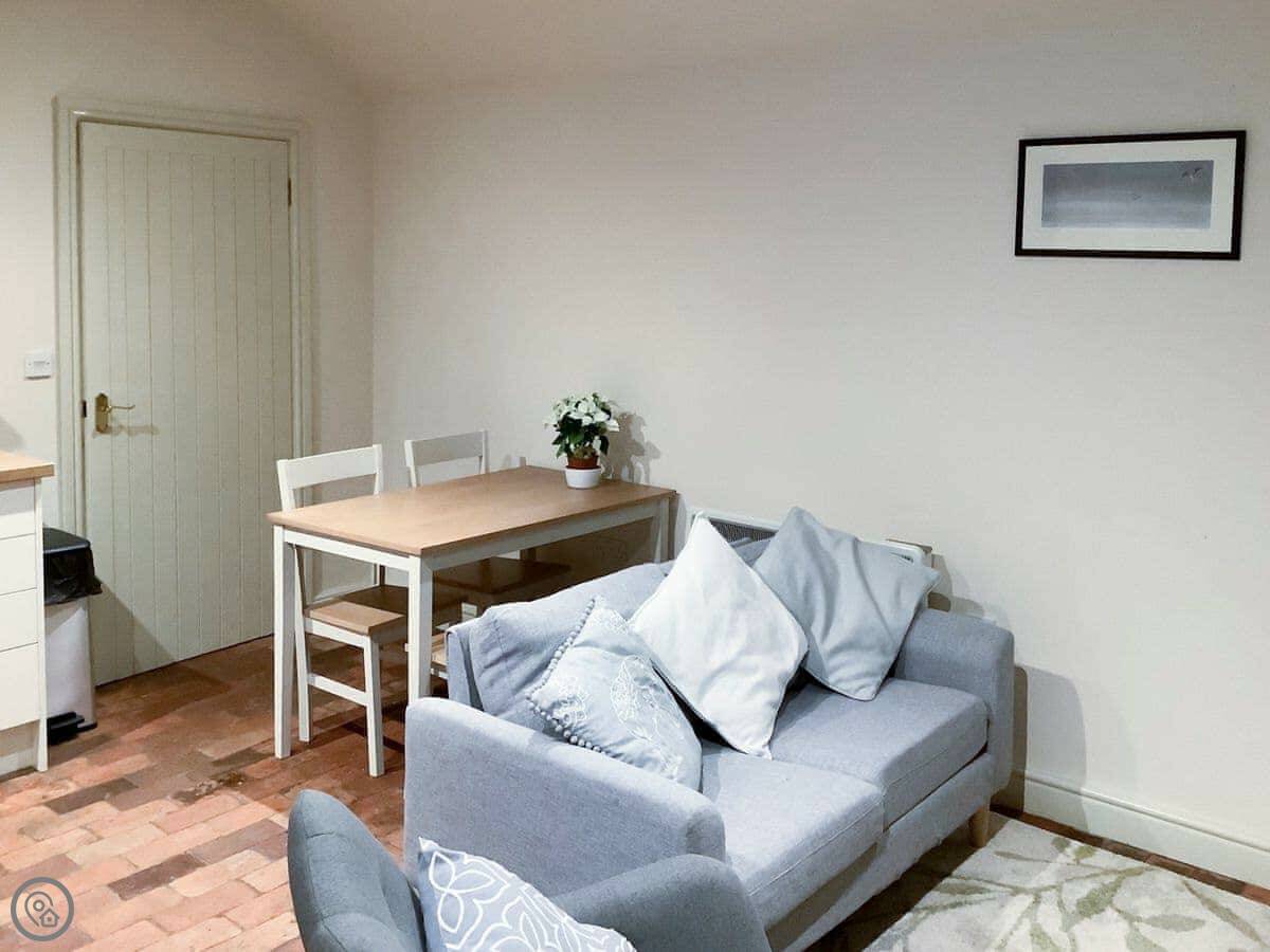 It's got a 4 Star rating, so it's comfortable and well-equipped. The living area is open plan. There's an enclosed garden out the back for sitting. Parking is right outside.