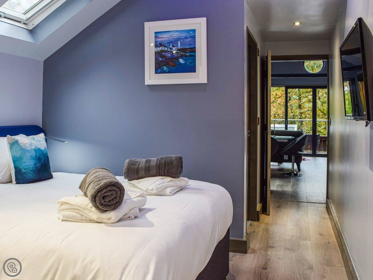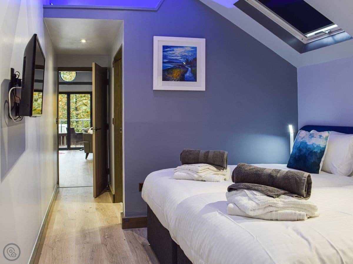 It sleeps four. Two bedrooms, both with ensuite bathrooms. It's got a 5 Star rating. That means it's kitted out to a high standard.