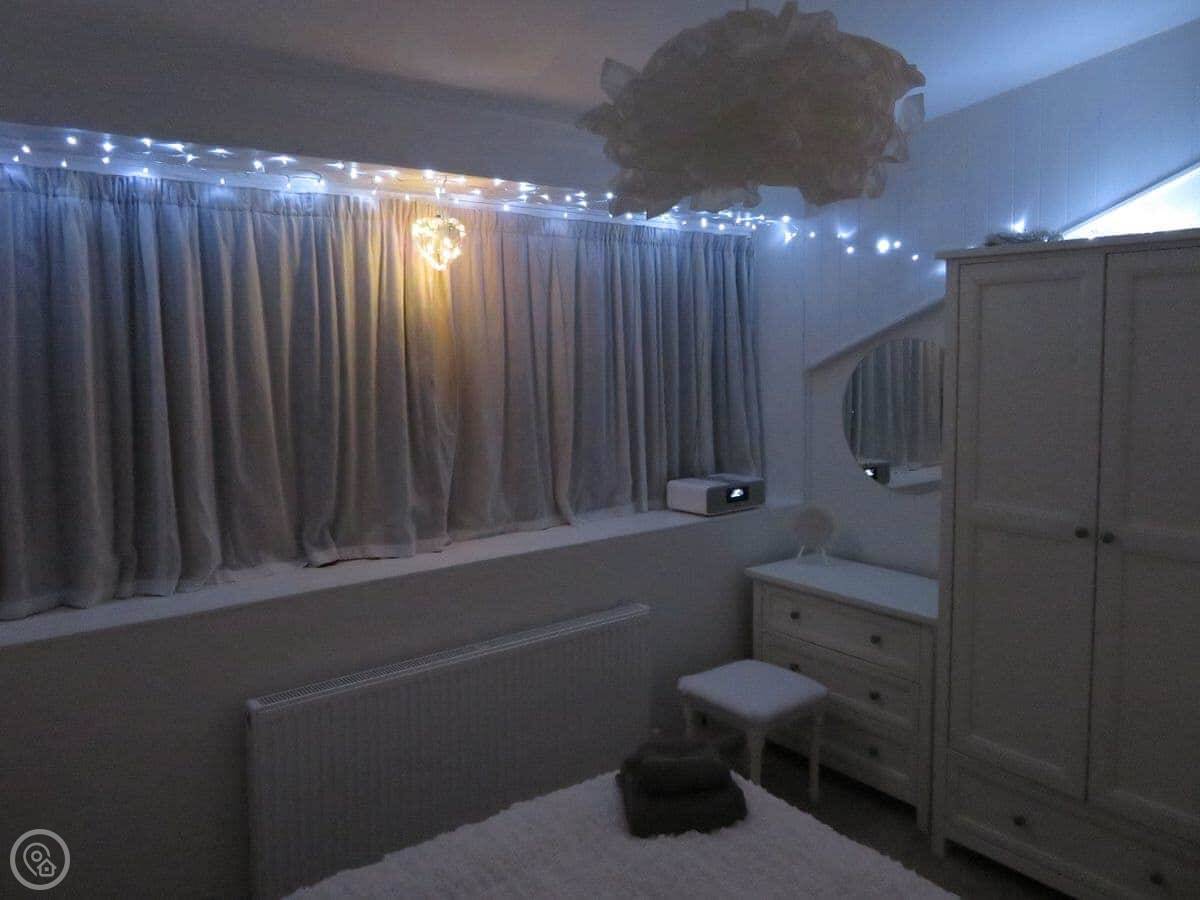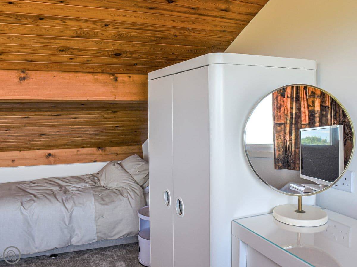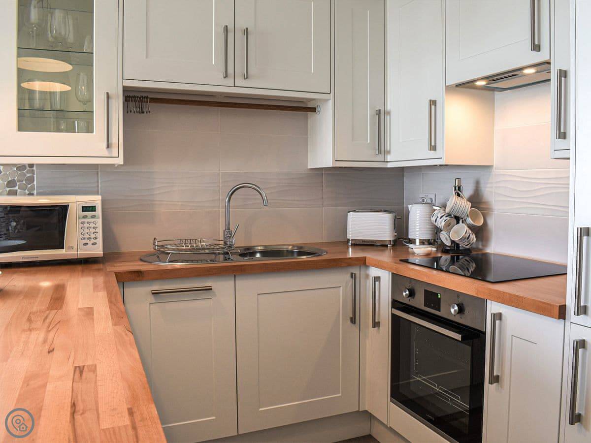 The main bedroom features a kingsize bed, wardrobe, dressing table, romantic lighting and bluetooth audio unit. Through double doors you will be taken with the view, enjoyed from the kitchen or while relaxing in front of the wood burner. This stylish and modern open living space provides a well-equipped kitchen with solid beech breakfast bar.