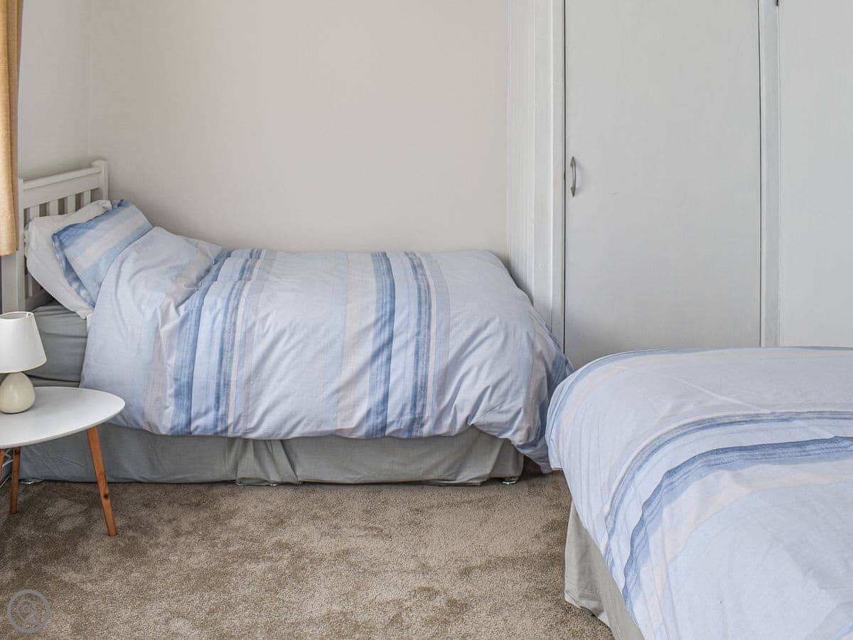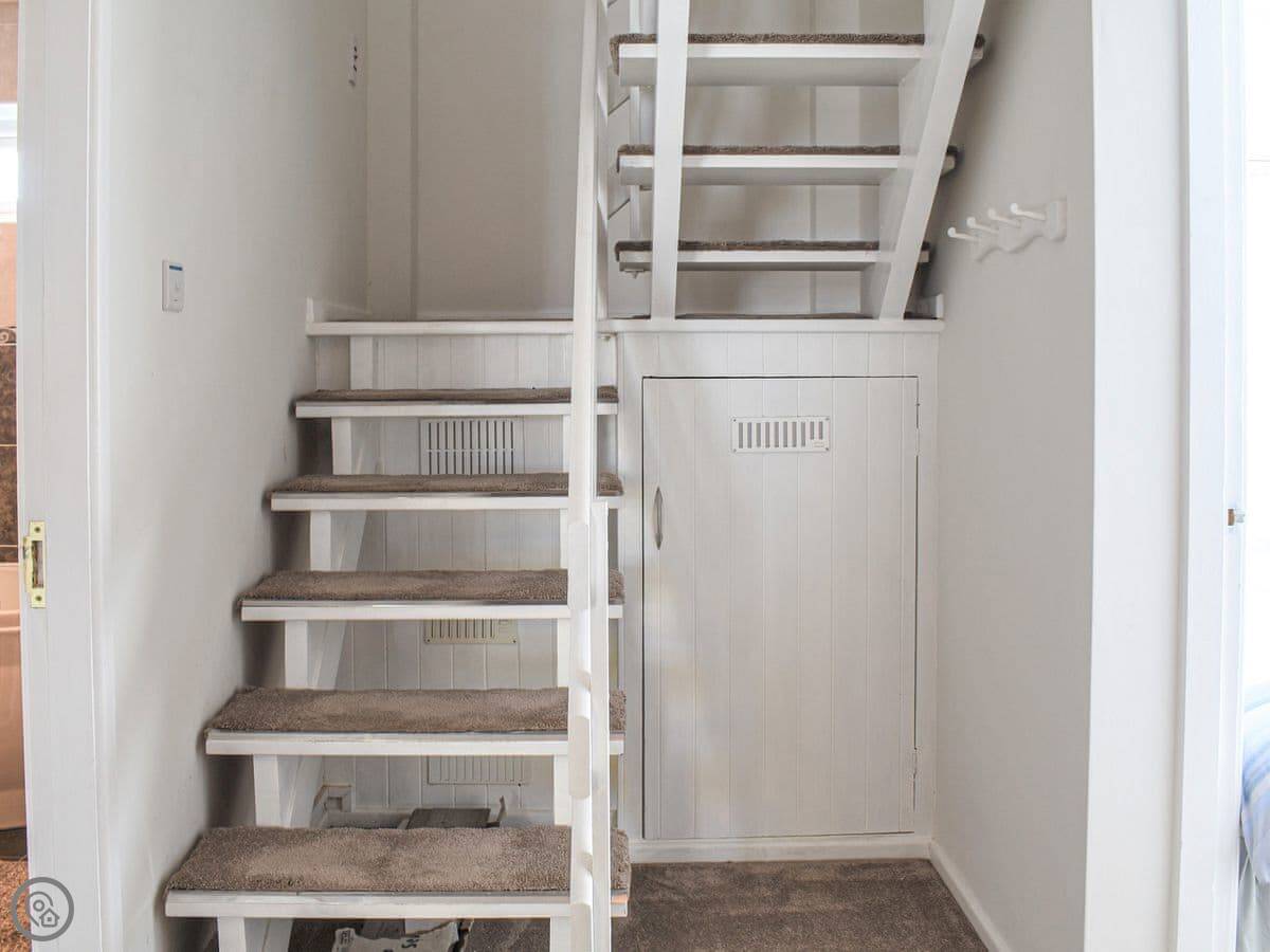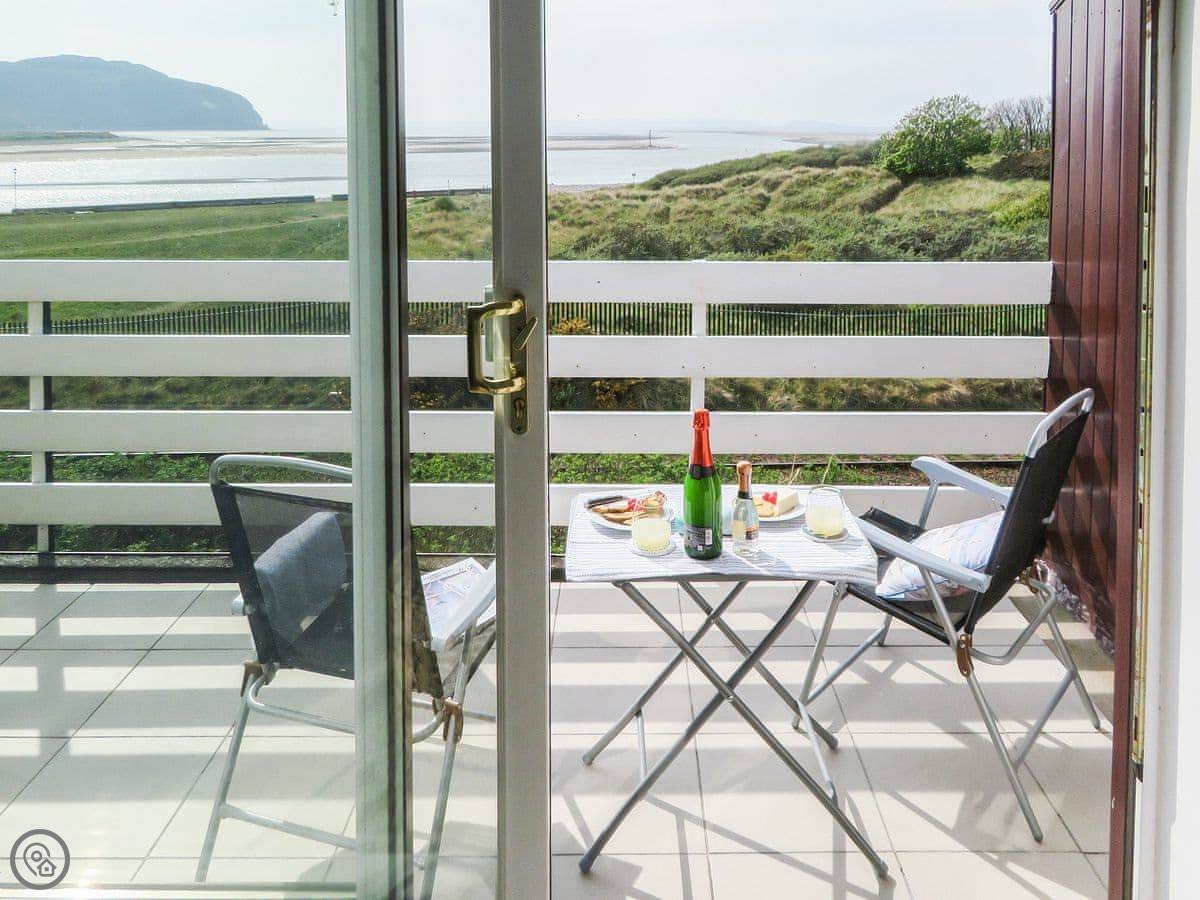 Sea View enjoys impressive views over sandhills out to sea, with mountains, Anglesey and Puffin Island in the distance. The entrance to the property is reached via an external staircase. The lovely apartment in a private estate is spread over three floors and the first floor contains a family bathroom, with shower over a curved bath, toilet, and heated towel rail. There is also a separate toilet. The bedroom on this floor has twin beds, with a double or three single beds on request resulting in one bed in top room. This room has a built-in wardrobe, dressing table, mirrors, USB charging and lovely views.