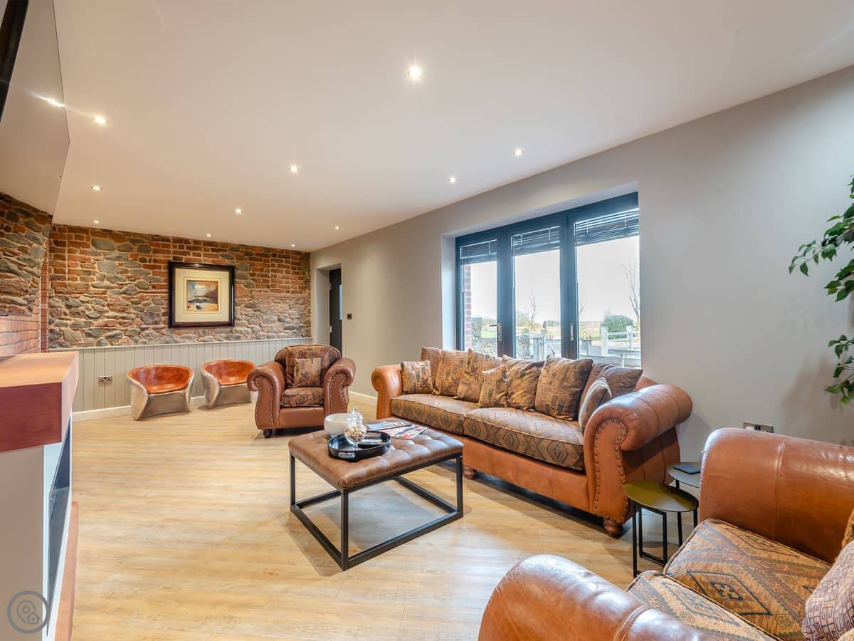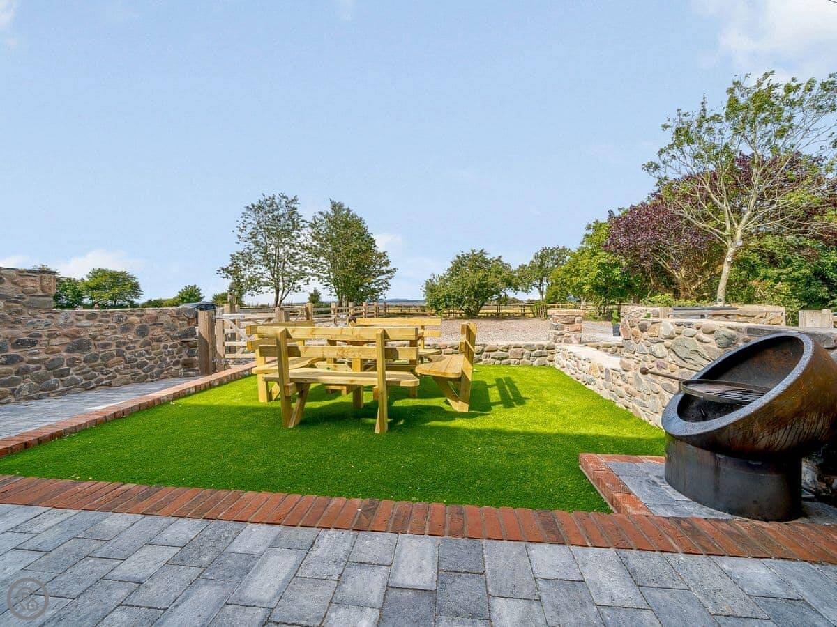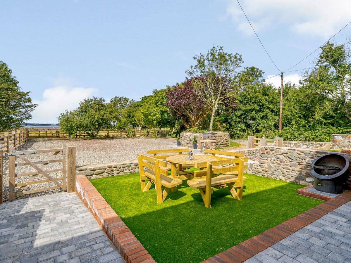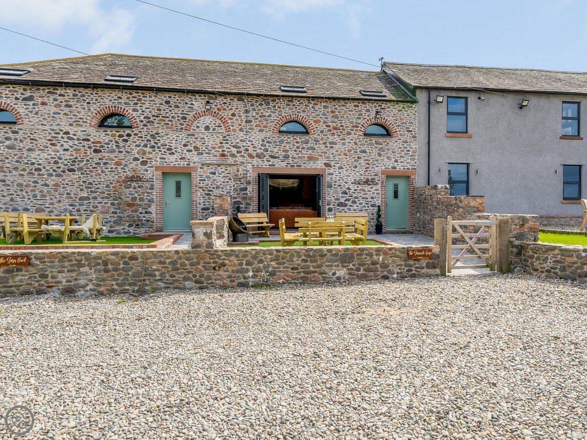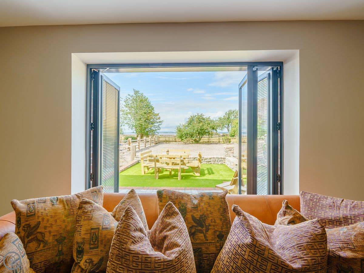 The Barnacle Goose is just outside Bowness on Solway, right on the Solway coast. It's a barn conversion, stone-built, part of a row of three. The views are good. You look west over the marshes and the water to Scotland. The sunsets are the main event. There's a patio out front with seating, so you can sit and watch.
