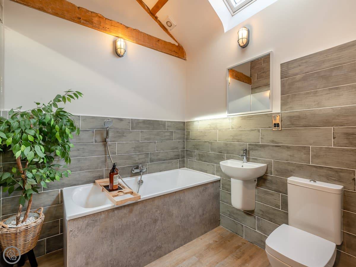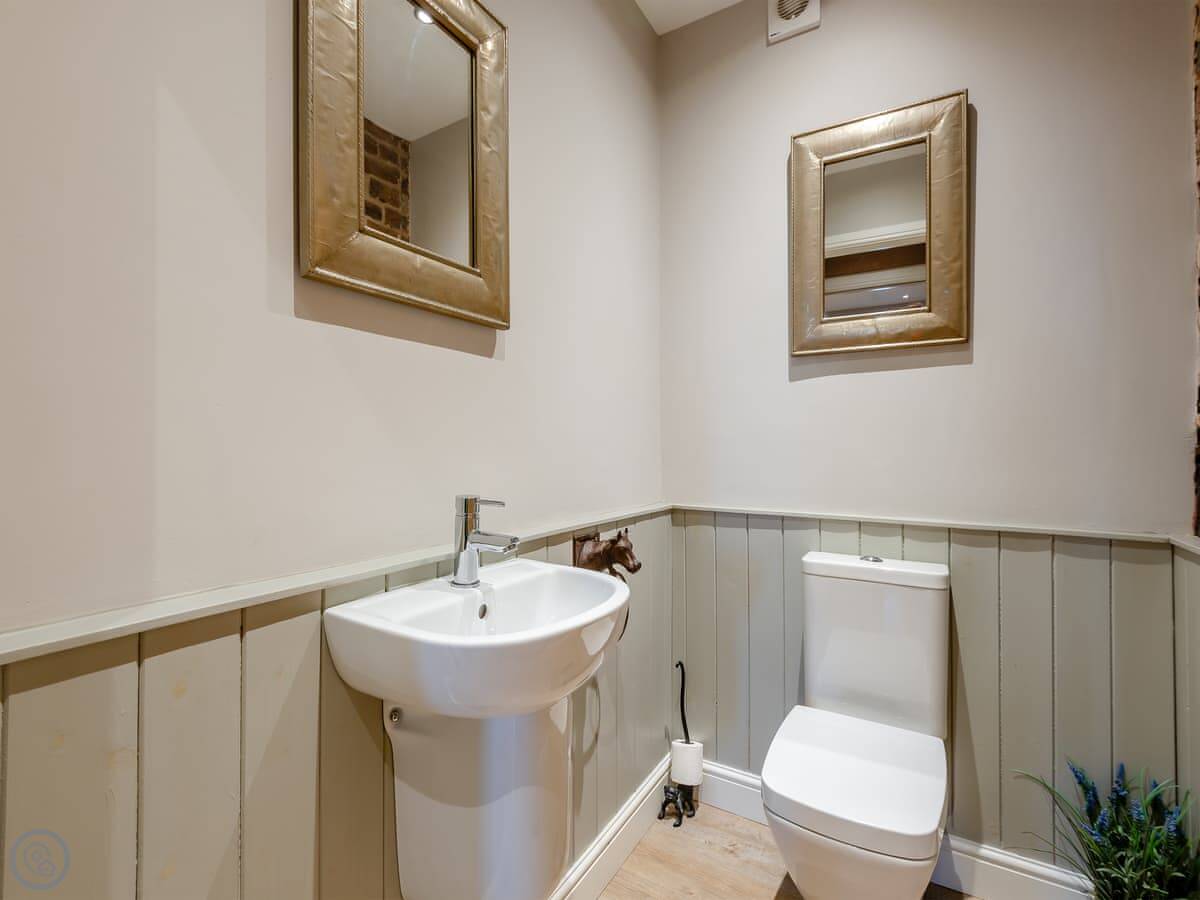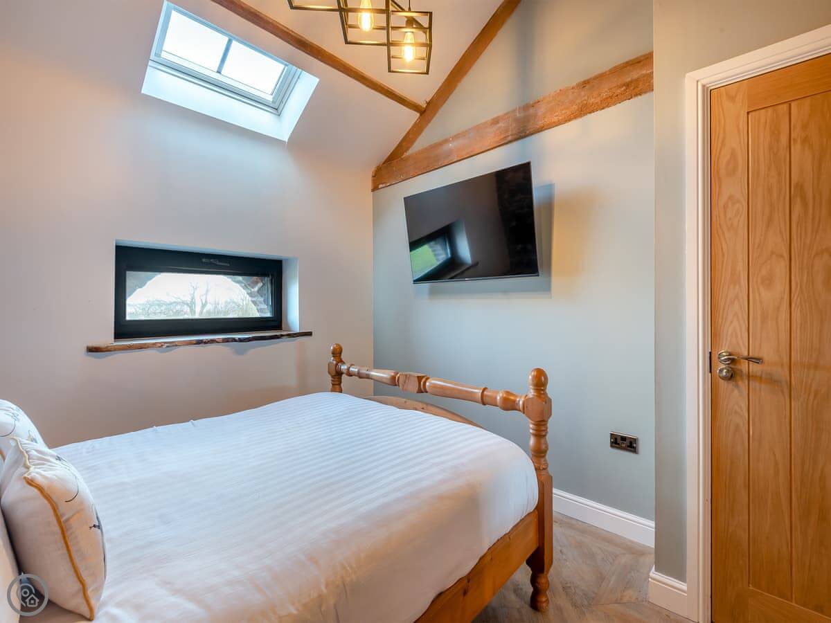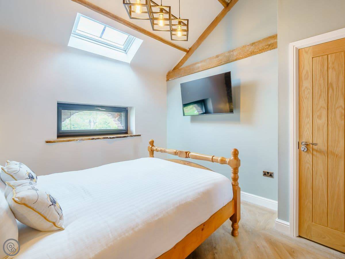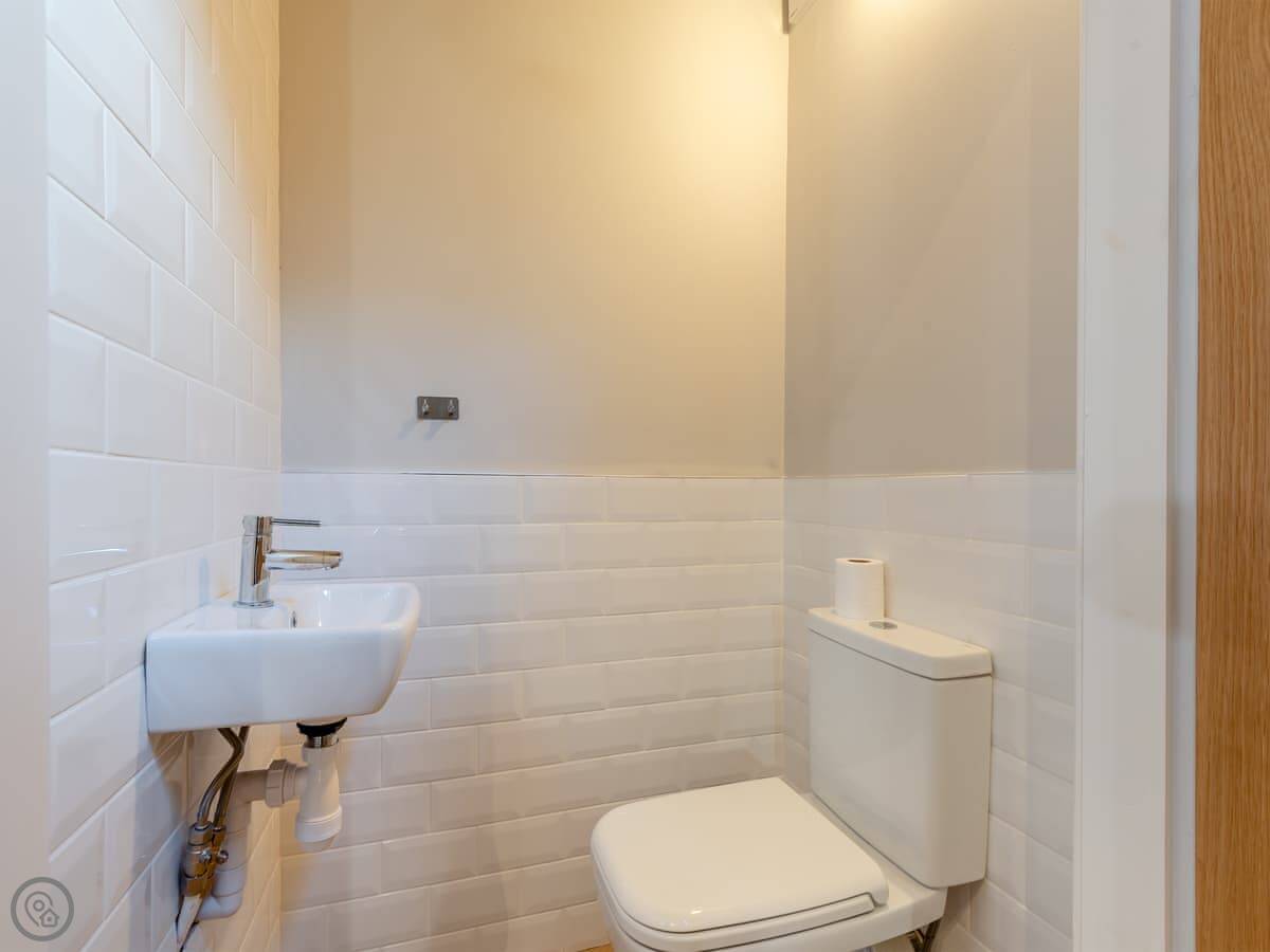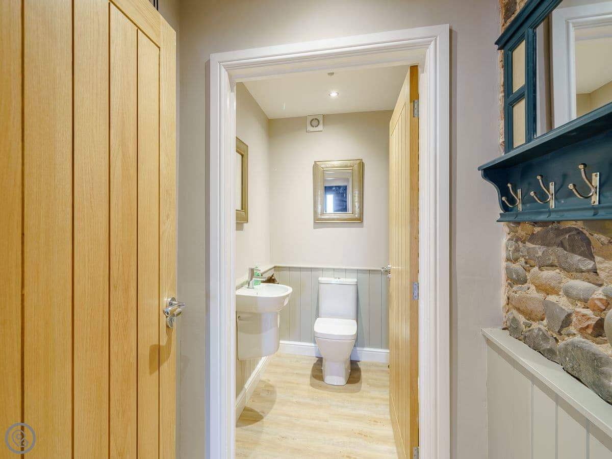 It sleeps up to eight. There are three bedrooms, but two are big. One has a super king bed and its own shower room. Another has a king bed. The third room has two sets of bunk beds, so it sleeps four, and it's got its own toilet. There's a family bathroom upstairs too. So, two toilets and two shower rooms in total.