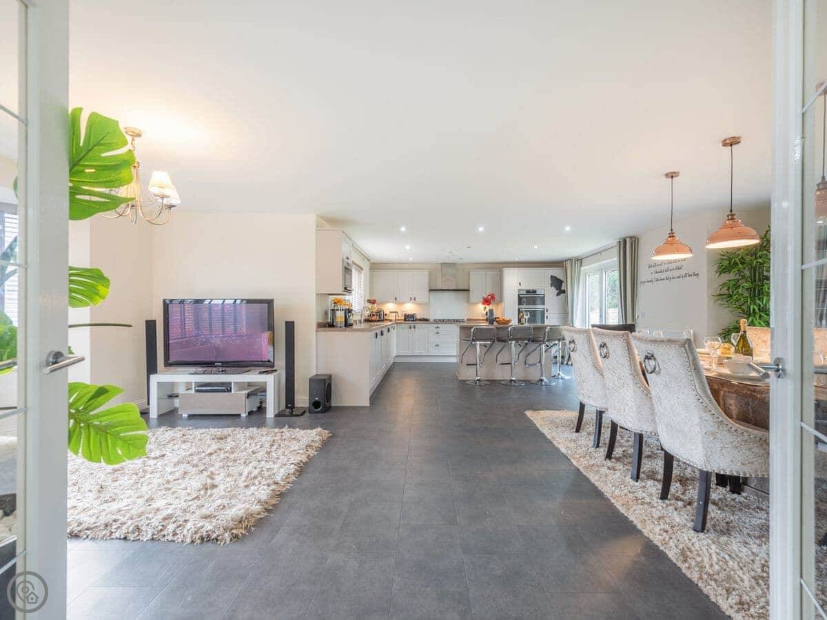 Looking for a break with friends and family? This house is the ideal accommodation for a group of up to ten people. With spacious rooms, plentiful seating areas, a social kitchen, dining, family room and a large garden, this will be your first choice when visiting Oxfordshire. Set in a quiet residential area within ½ mile of the Oxfordshire village of Kingston Bagpuize and 5 miles from Abingdon, a town set on the banks of the River Thames and said to be the oldest town in England and is steeped in history. The county city of Oxford is within 10 miles and has many attractions including historic buildings and the University, the Bodleian Library, punting along the river, an eclectic mix of restaurants, cafés and bars and great shopping at the Westfield shopping centre.