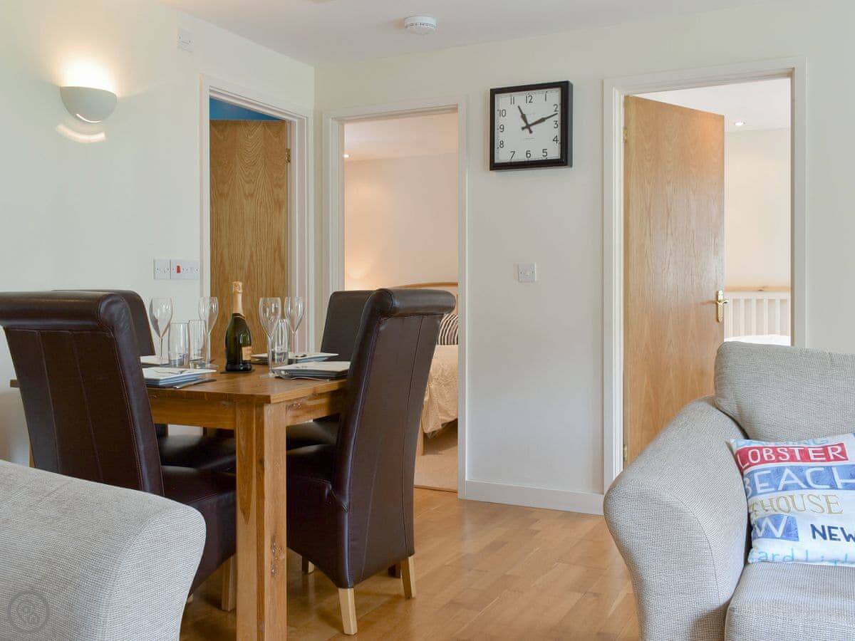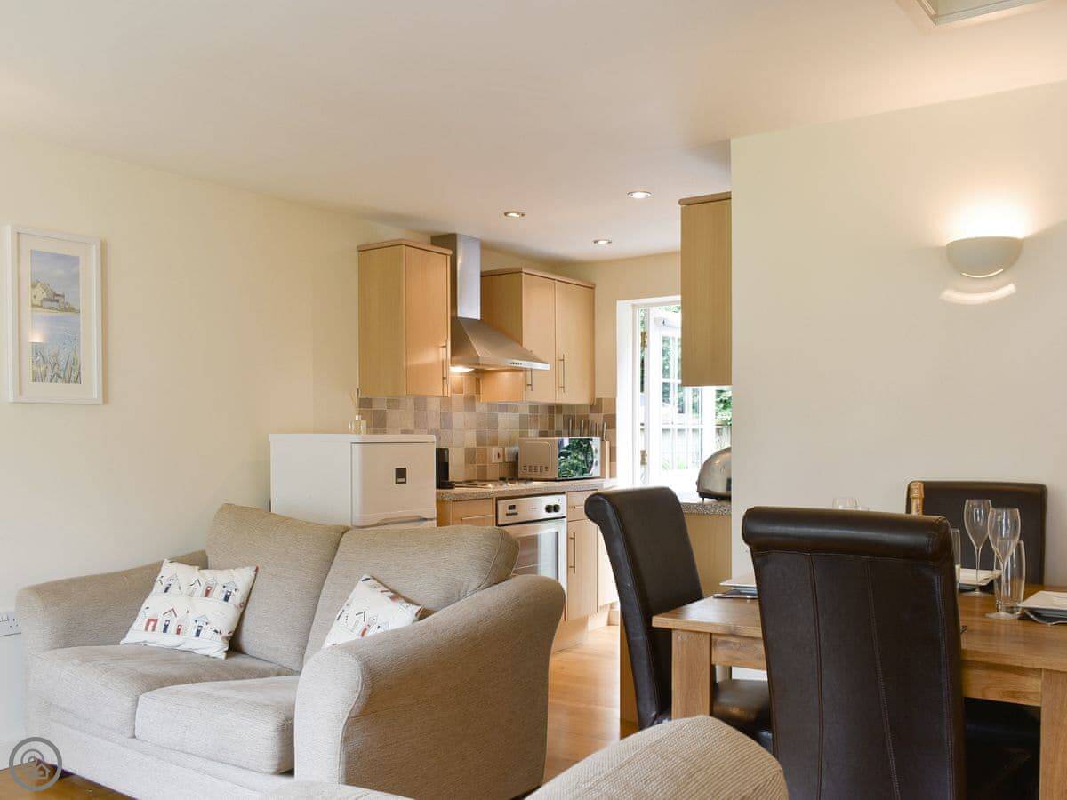 An open plan living space includes a well-equipped kitchen, a dining area that has a smart table with seating for four guests and a living area with two comfortable double sofas provide a relaxing place to unwind or plan tomorrow’s adventures!. There are two bedrooms, one with double bed and the second with two single beds both have built in wardrobes providing plenty of storage space and the family bathroom completes the property. There is a secluded rear garden which is a great spot to enjoy breakfast or your favourite beverage at the end of a busy day.