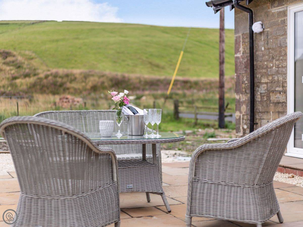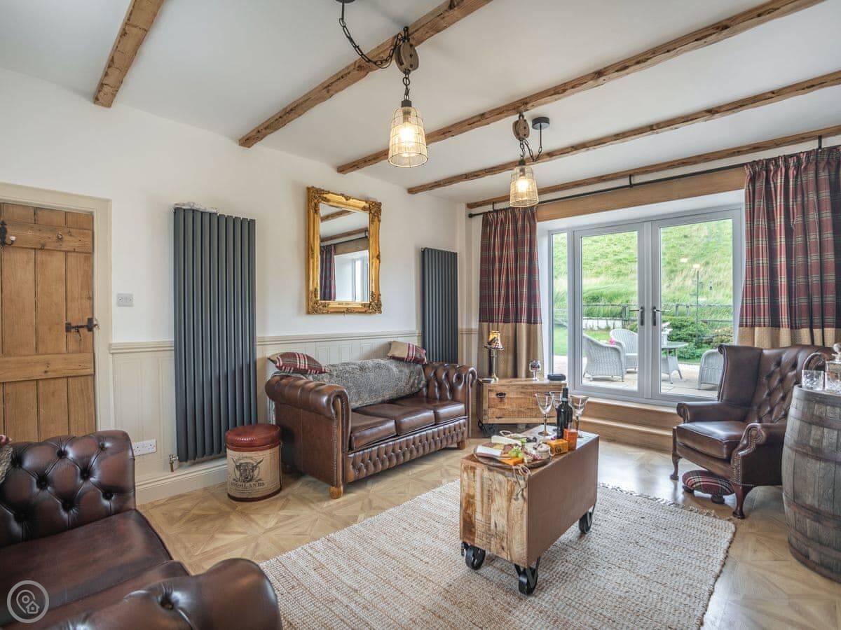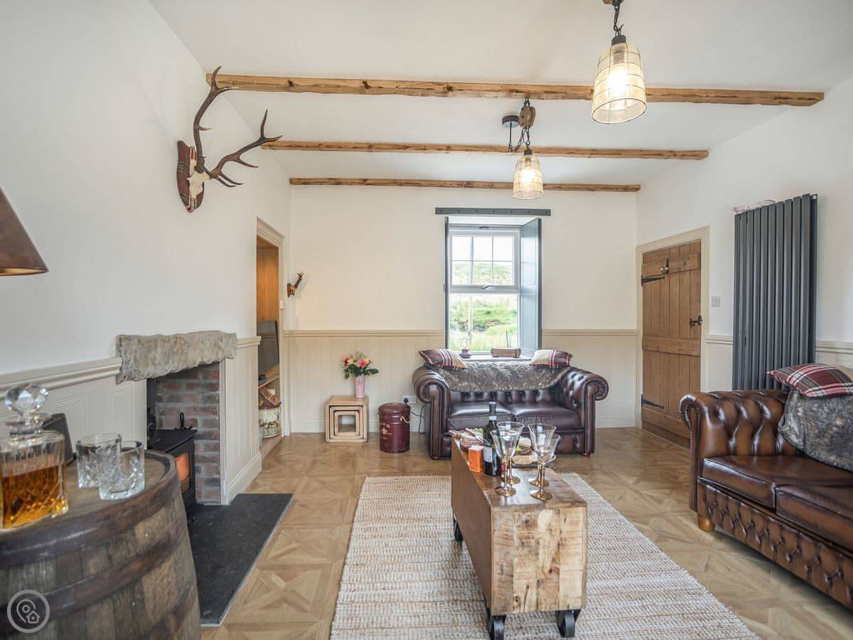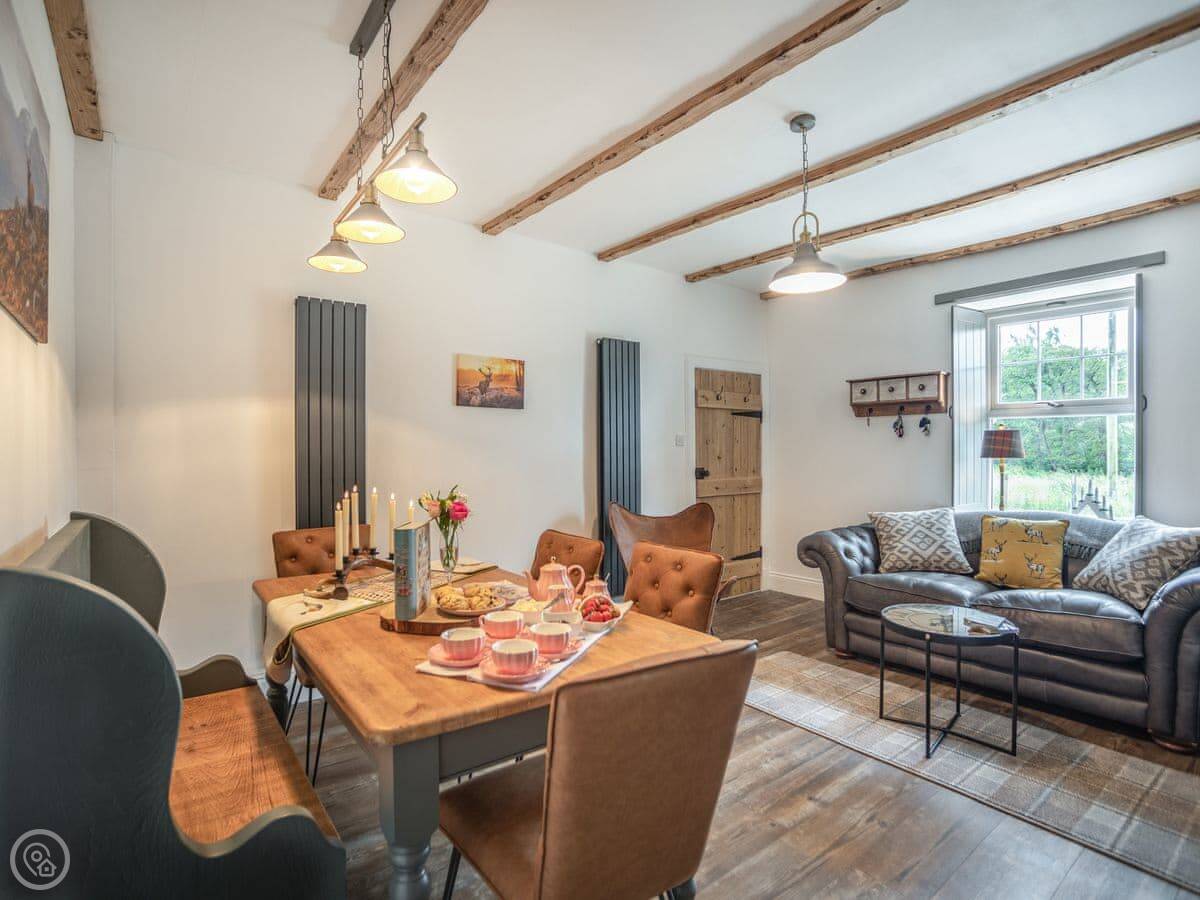 It's a two-bedroom cottage, sleeps four. Five star rated. It feels solid and well looked after. There's a wood burner in the living room and another in the dining room. They're nice to have on in the evening.
