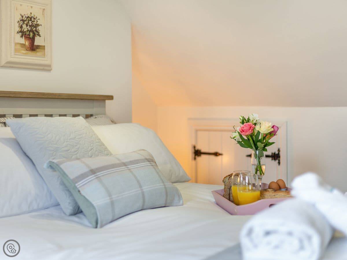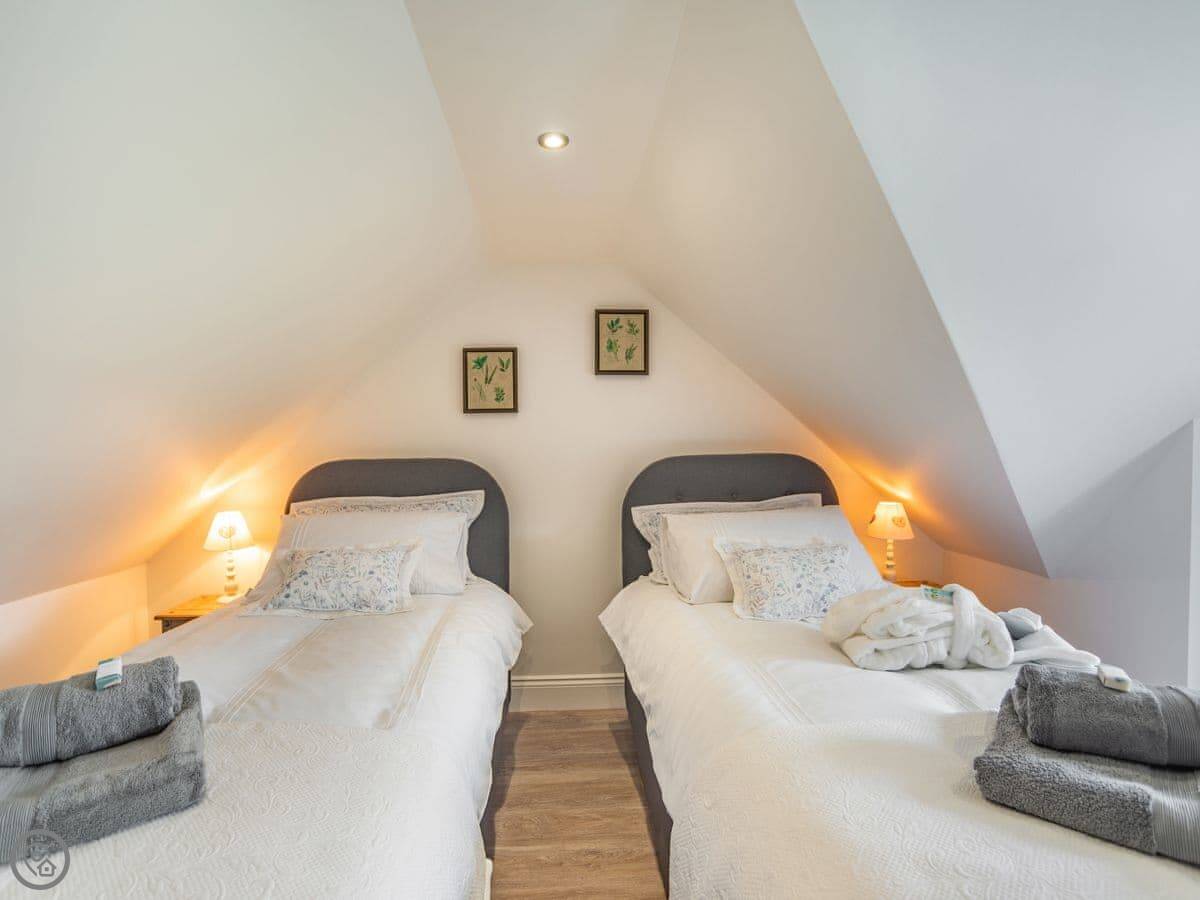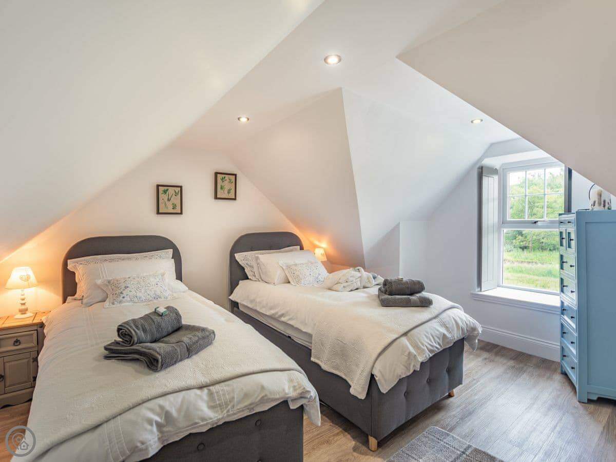 The main bedroom has a kingsize bed with a specific, quite deep mattress. They've left a note about it being a 'Tranquillity' mattress, which some people really like. The twin room has two singles that can be joined. The mattresses there are different from each other, one firmer than the other. There are electric blankets on the beds for the colder months.