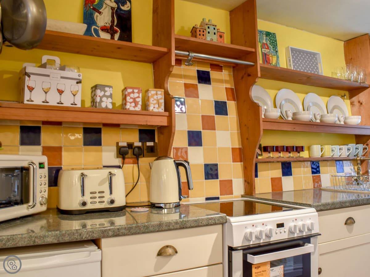 Honestly, it's old. That's the main thing. The walls are exposed slate inside, which looks nice but it's cold to touch. There's a wood burner in the main room and it really does heat the place. The room is open plan, so the kitchen and living area are all together. Good for chatting while someone cooks.