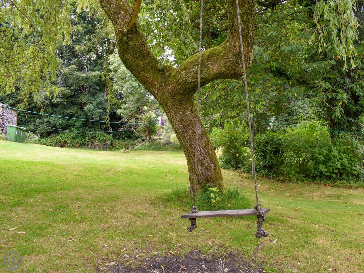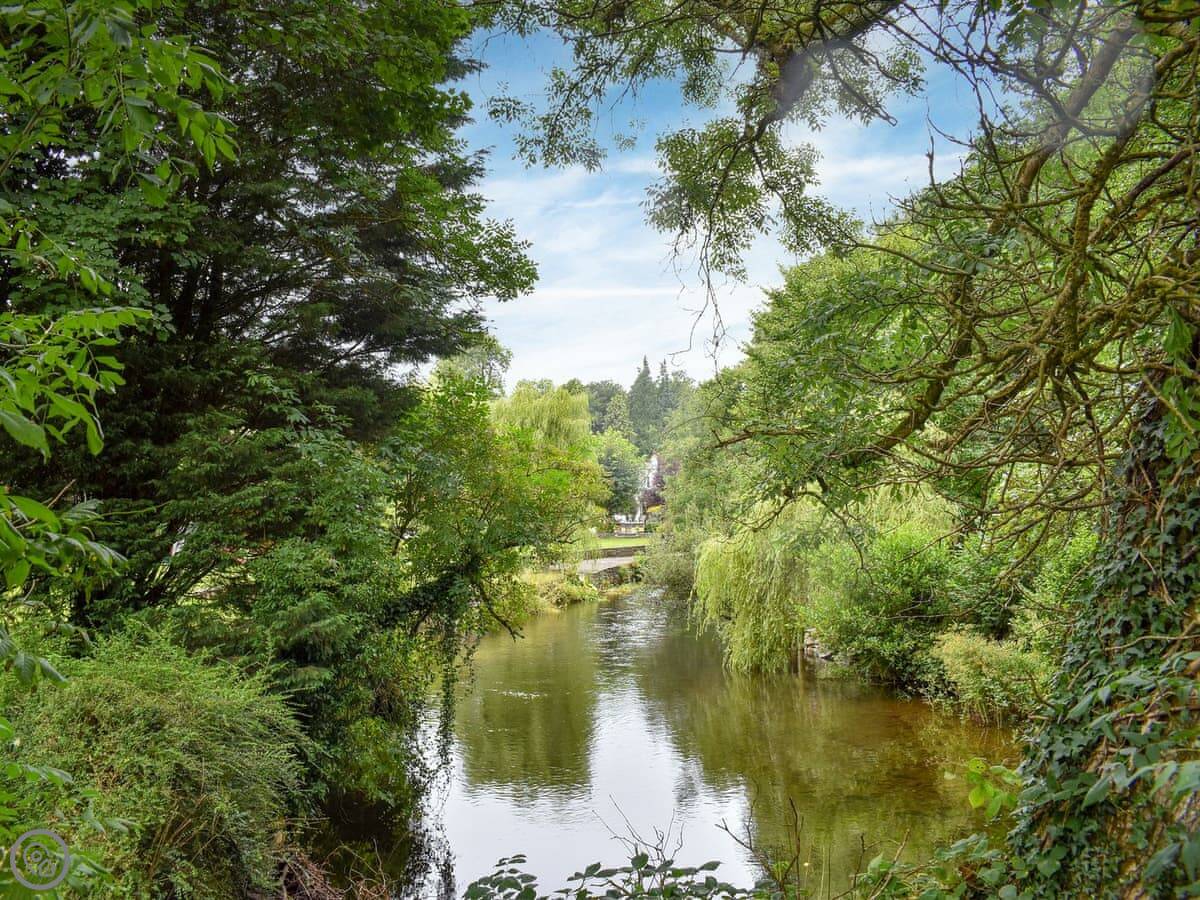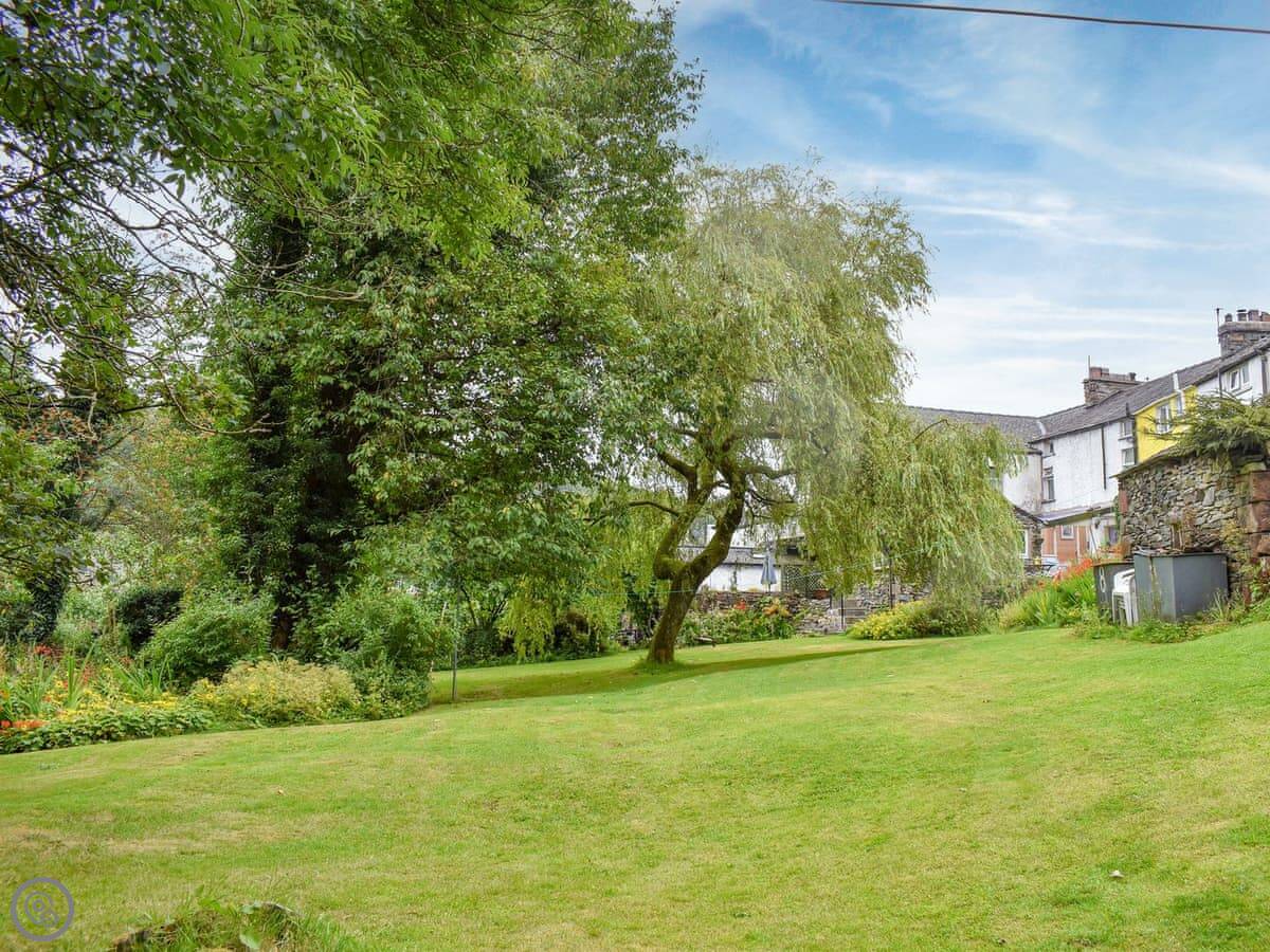 Outside, there's a little private patio. It looks onto a big shared garden. At the bottom of the garden is the River Crake. You can hear it from the house. It's peaceful.